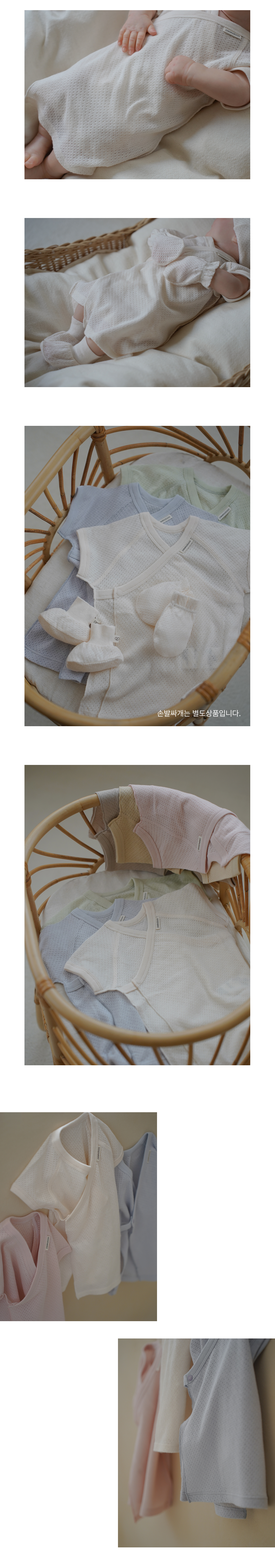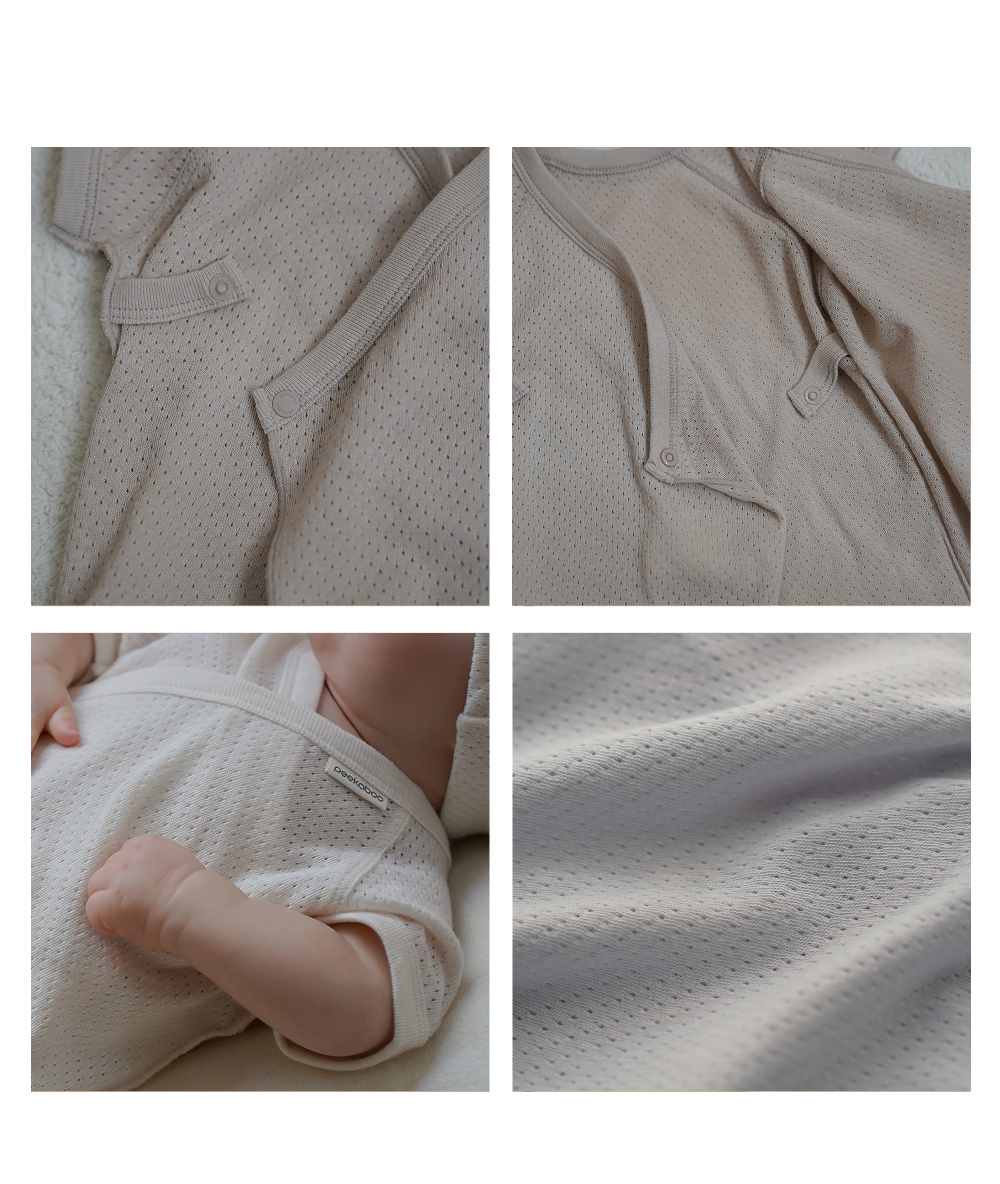 這款新生兒貼身衣採用透氣布料,飾有小巧的圓形透氣孔,領口和袖口的羅紋設計確保穿著穩固舒適