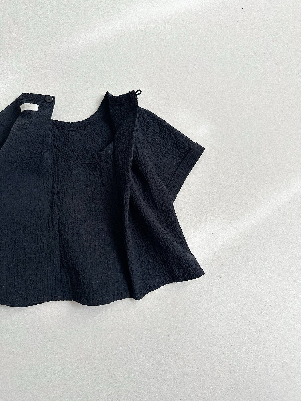 布料輕盈帶有微微挺感與清爽觸感,夏天穿著不悶熱、不貼身,提供舒適自在的穿著體驗