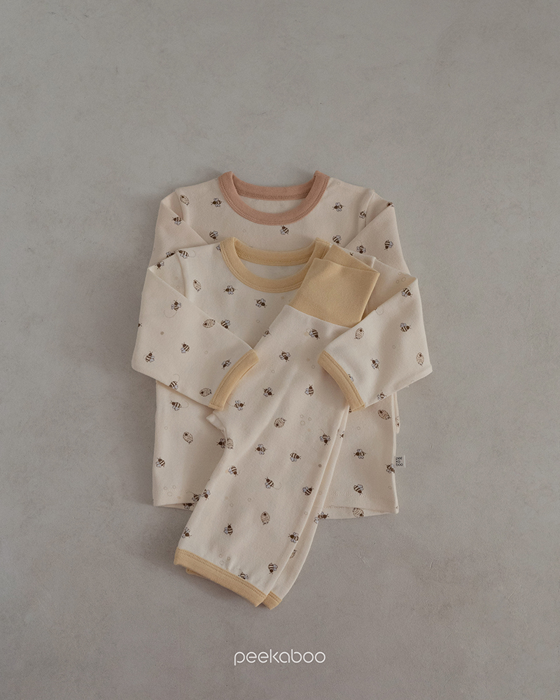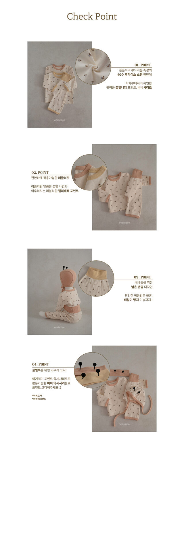 蜜蜂在領口、袖口、褲腳等都有蜜蜂的圖案