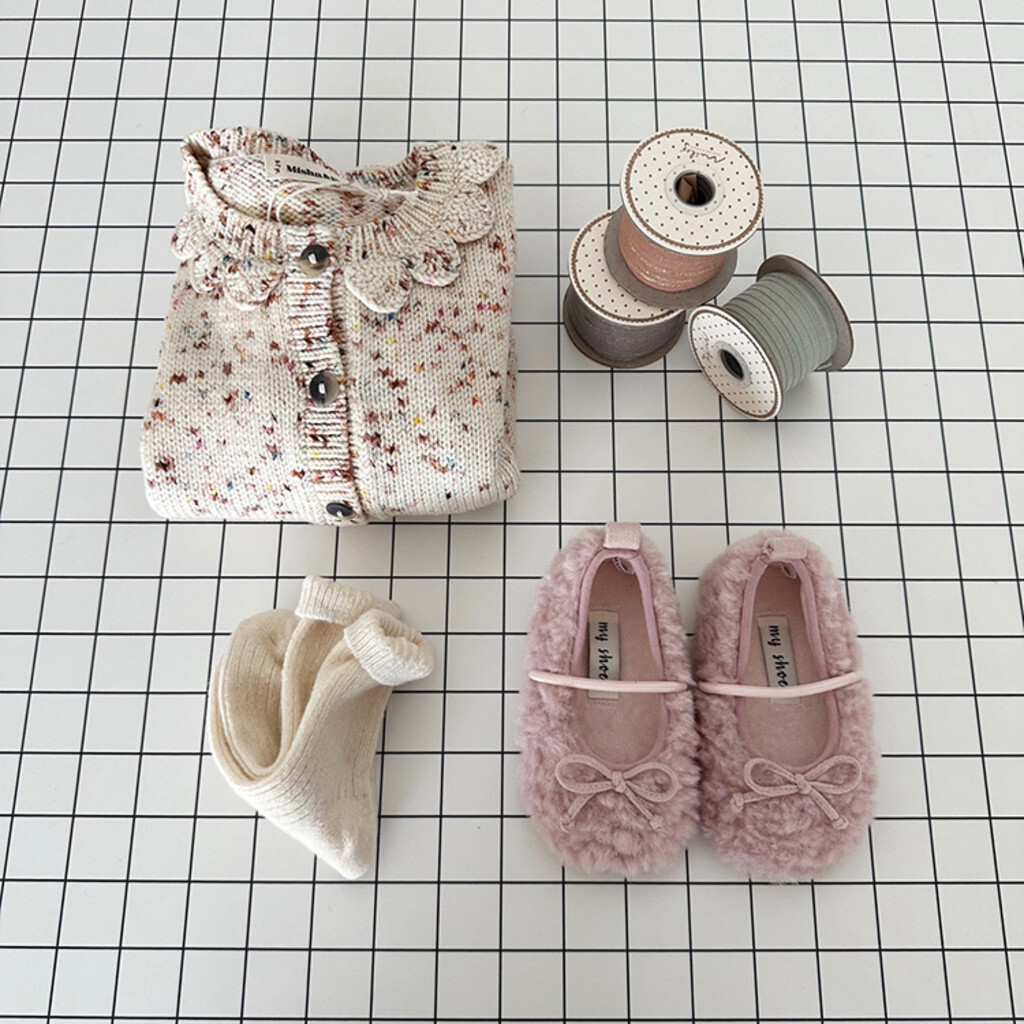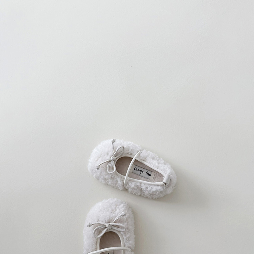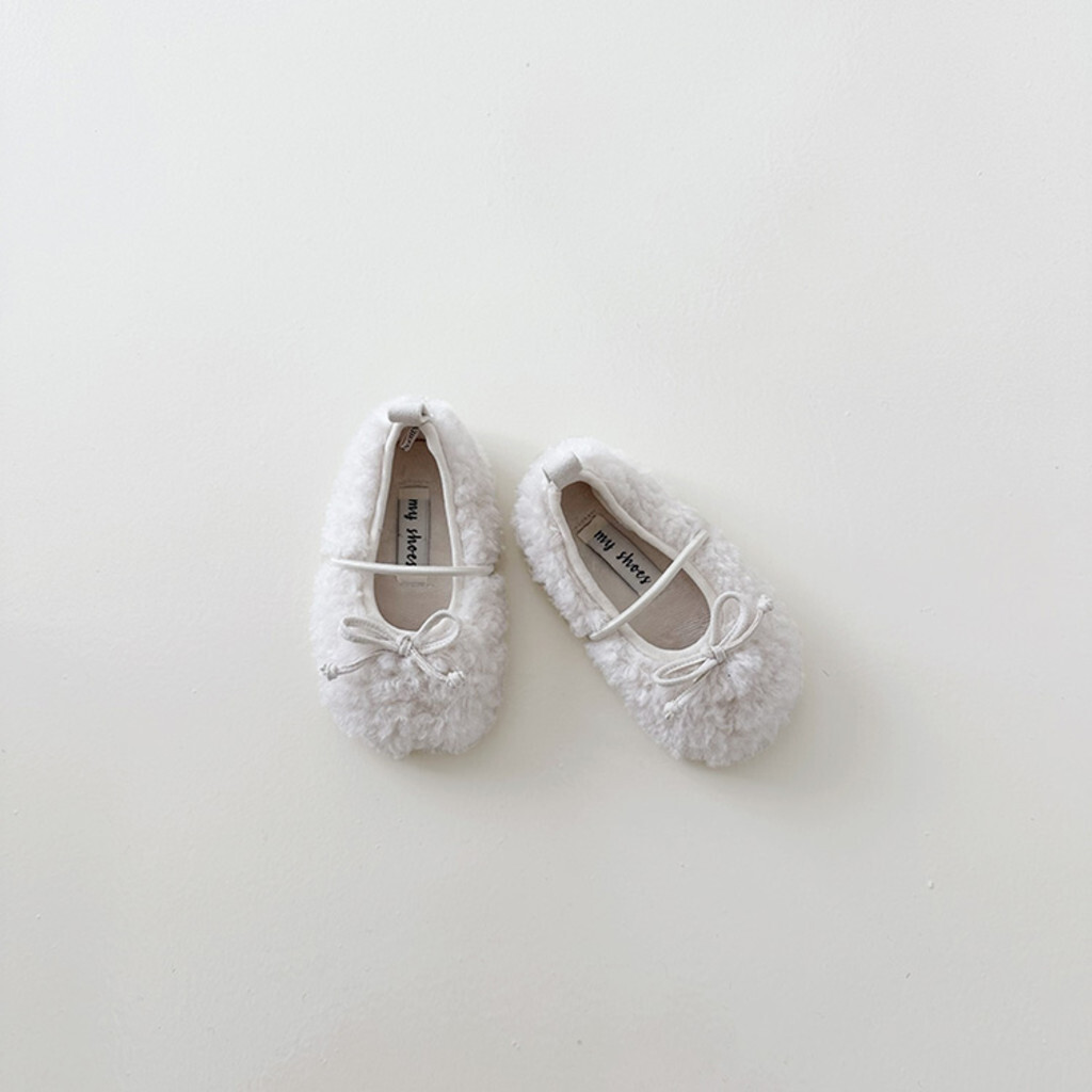這是毛毯鞋,平底鞋,以可愛蓬鬆的圈絨面料為亮點。