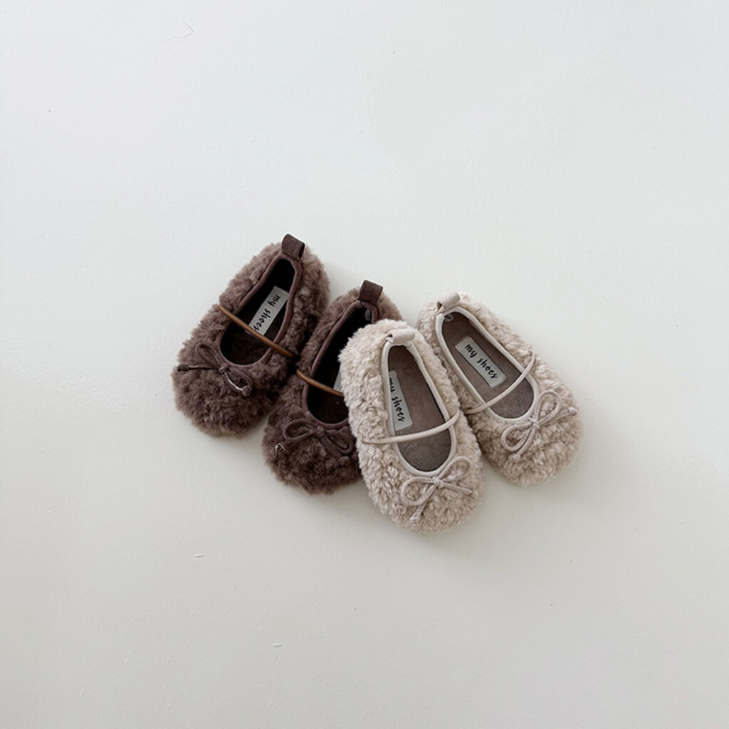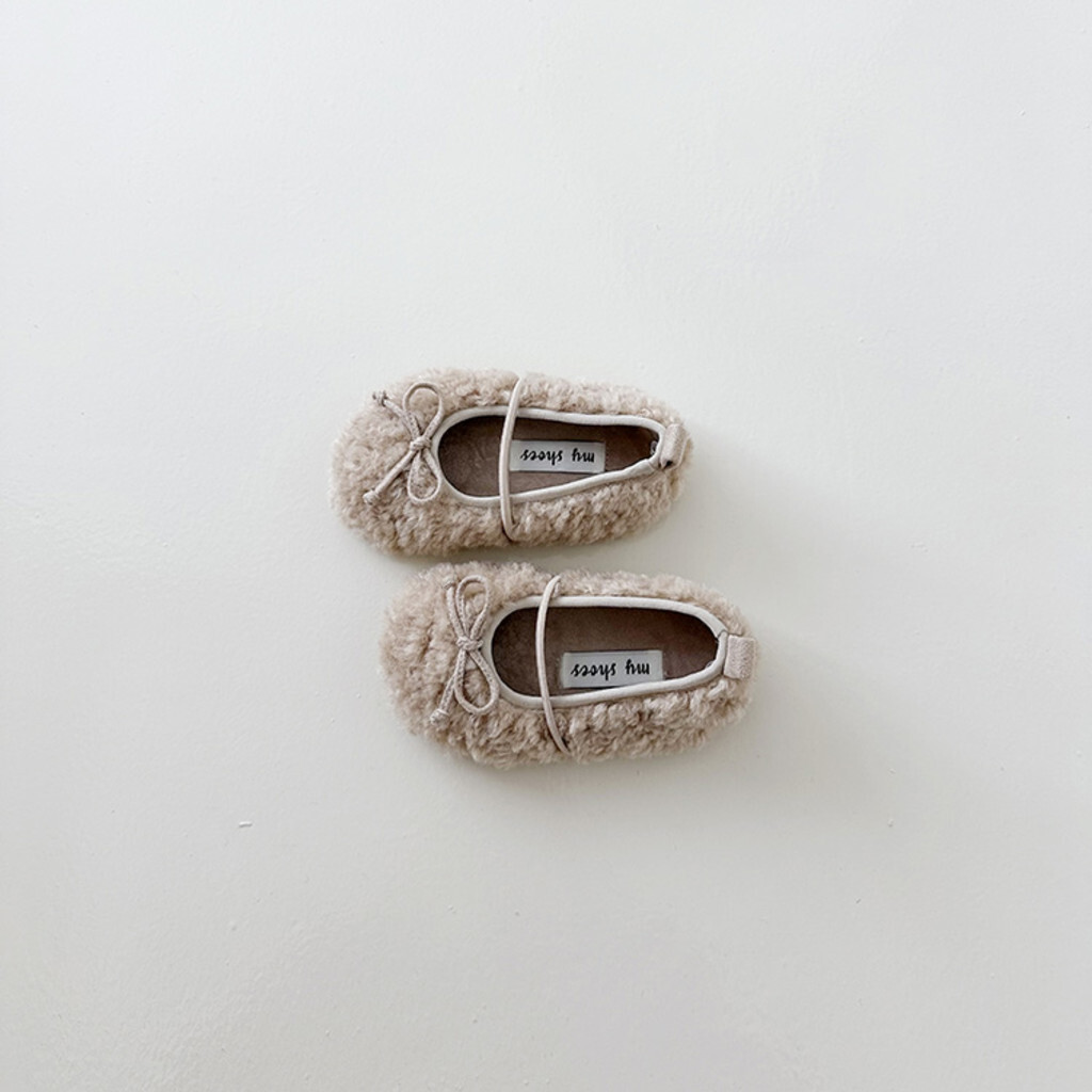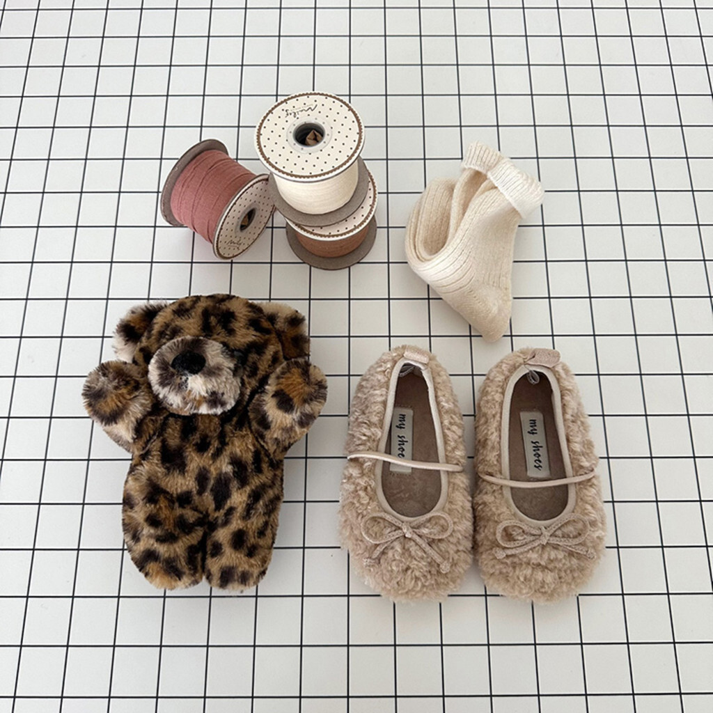 這是毛毯鞋,平底鞋,以可愛蓬鬆的圈絨面料為亮點。