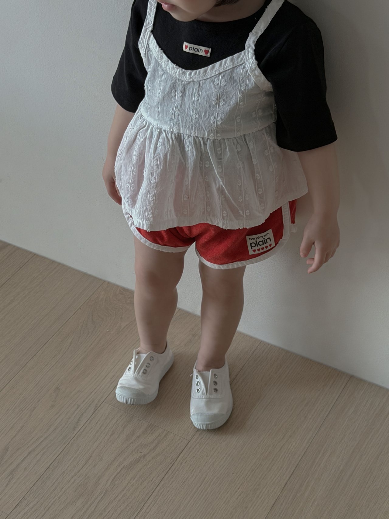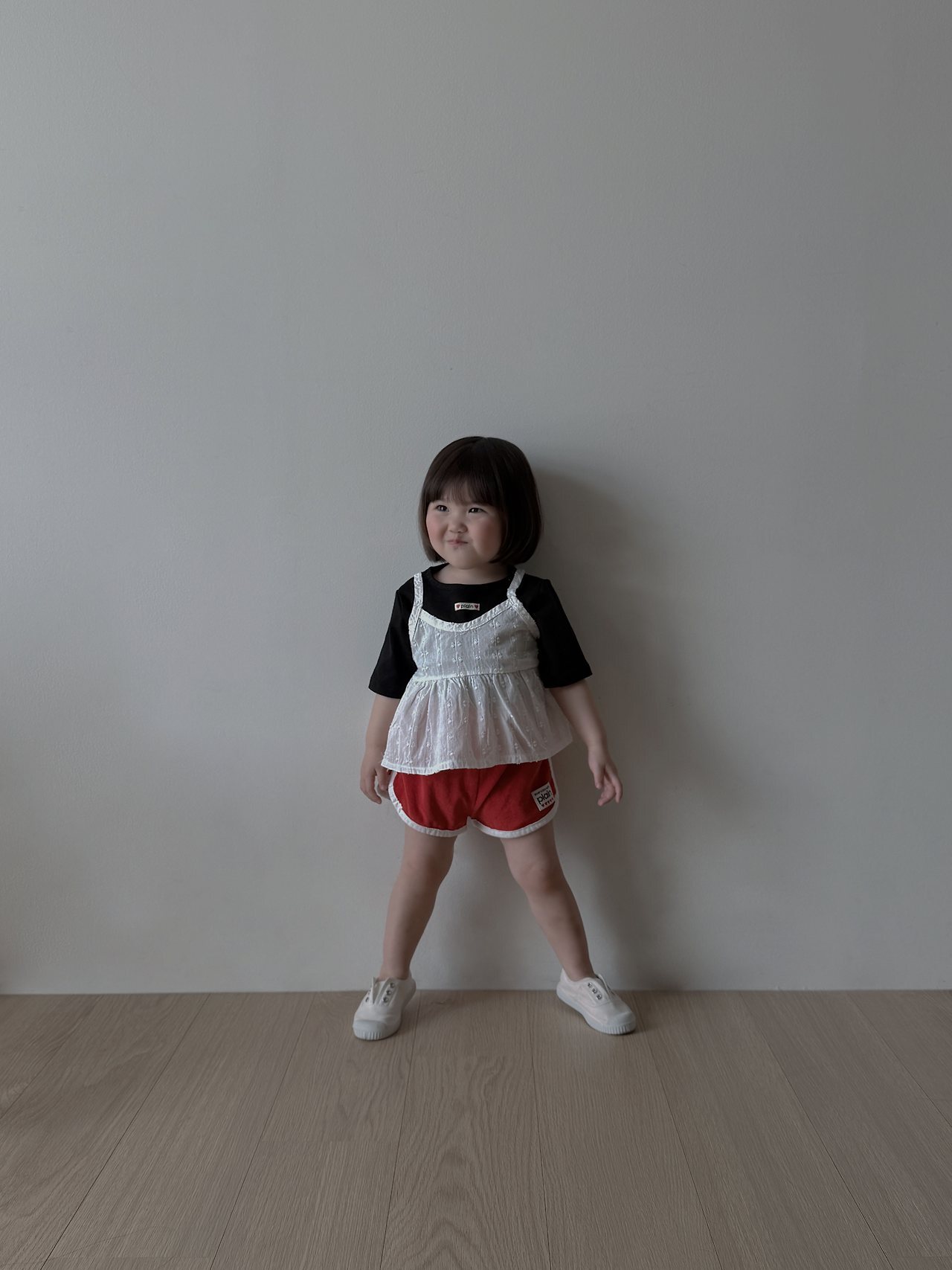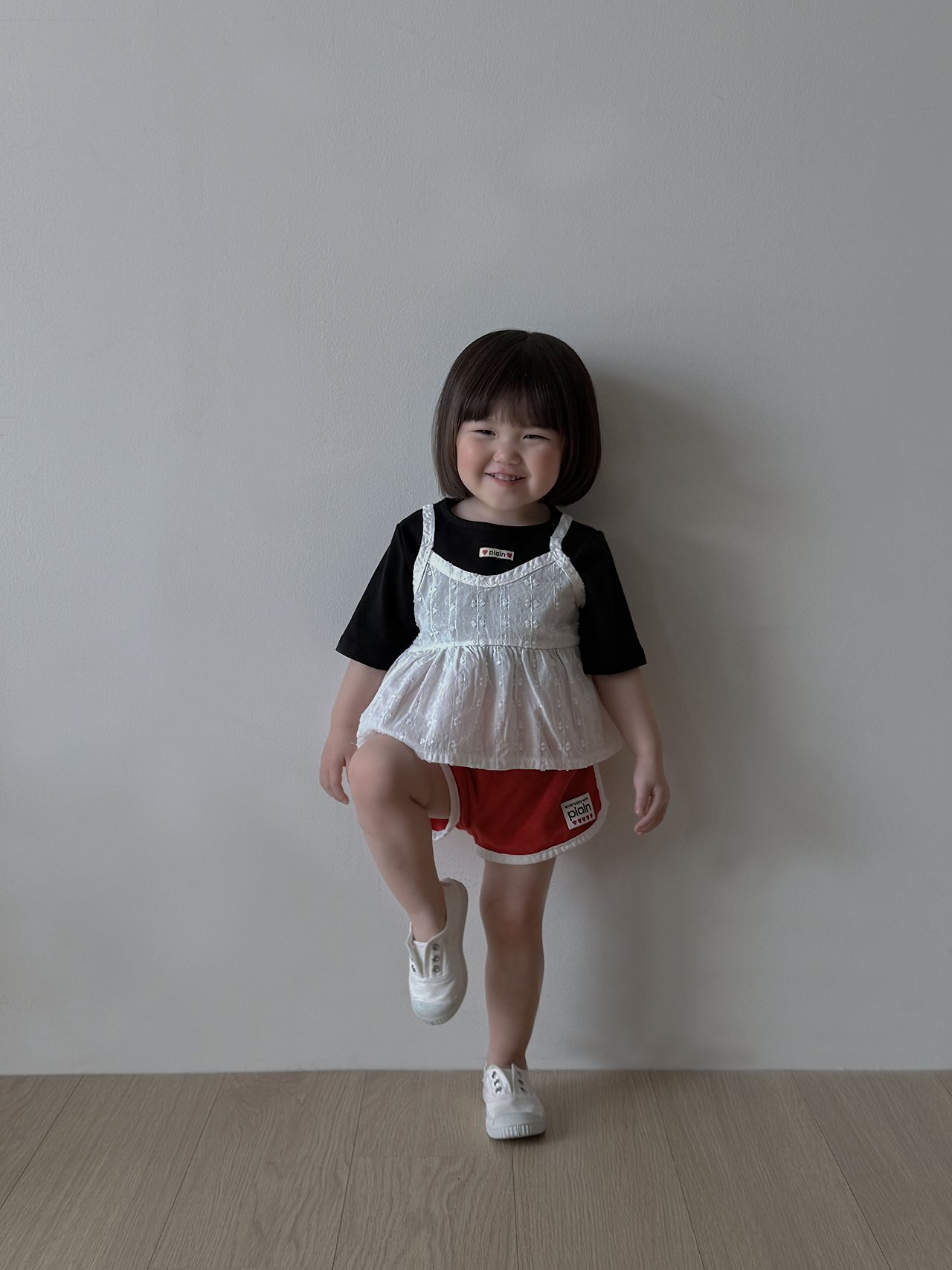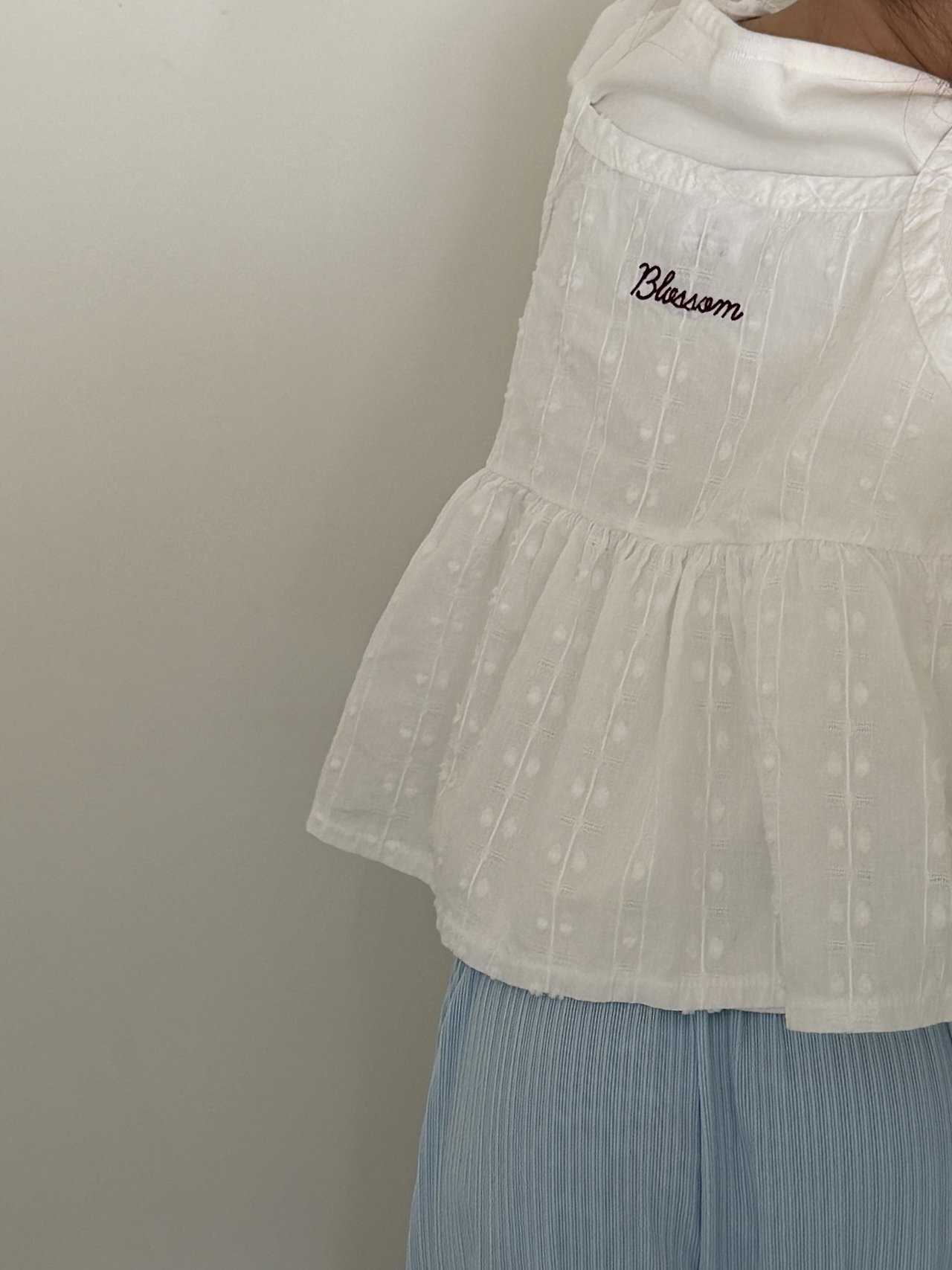 這是一款以可愛織紋布料為亮點,帶有微短版長度設計的洋裝感~