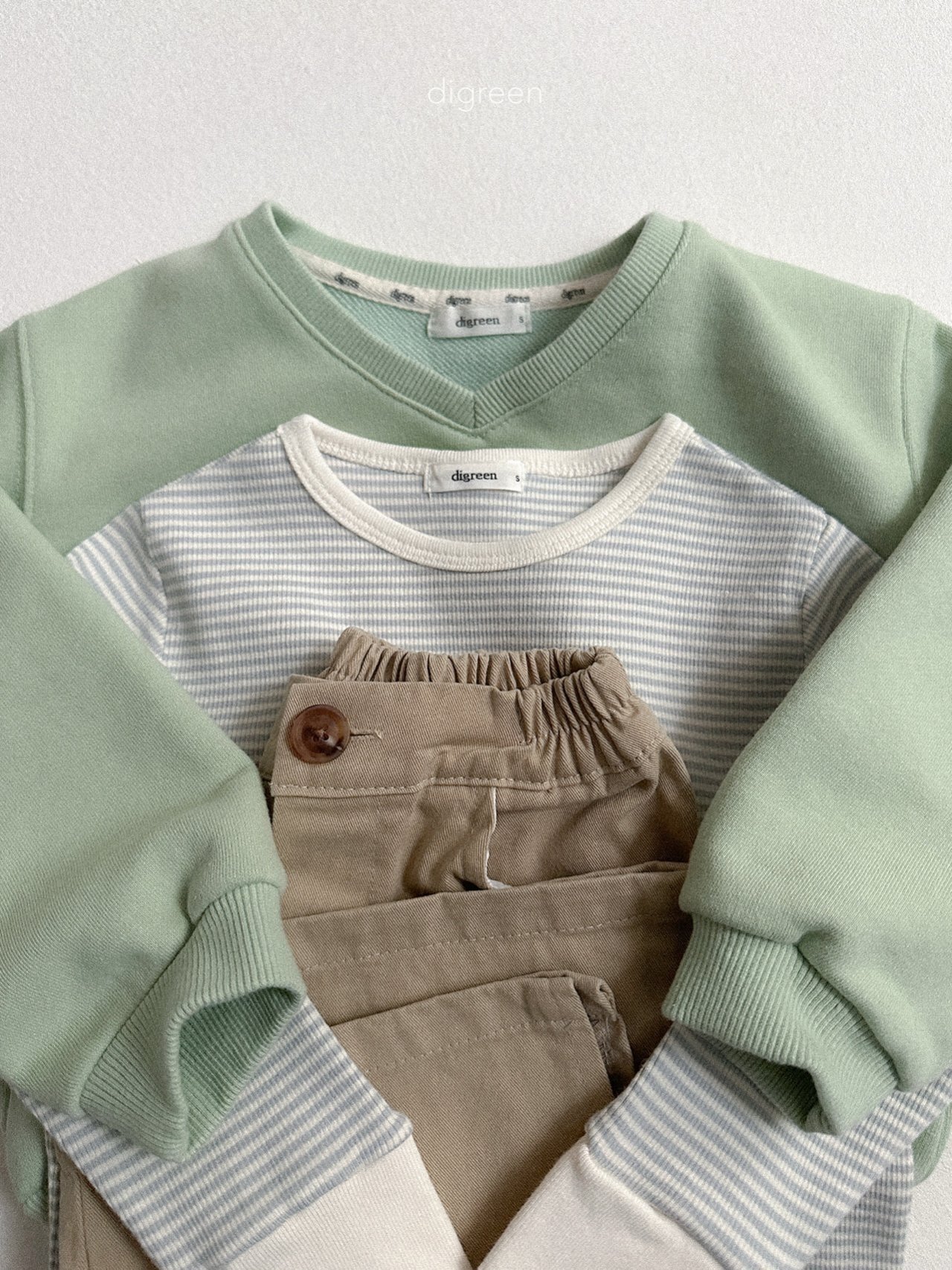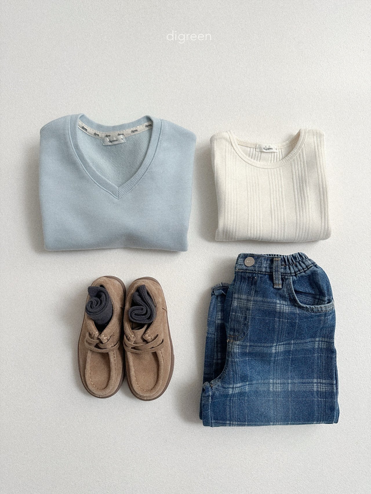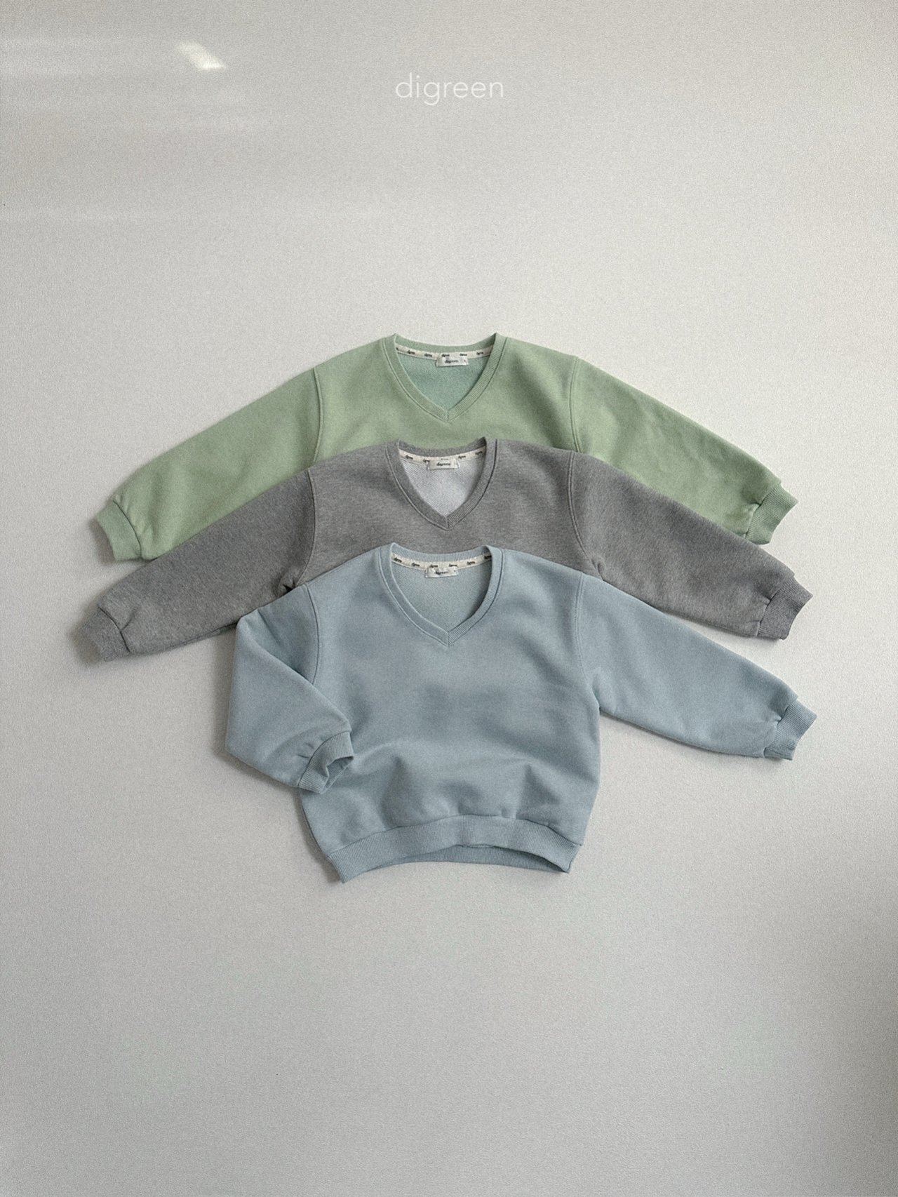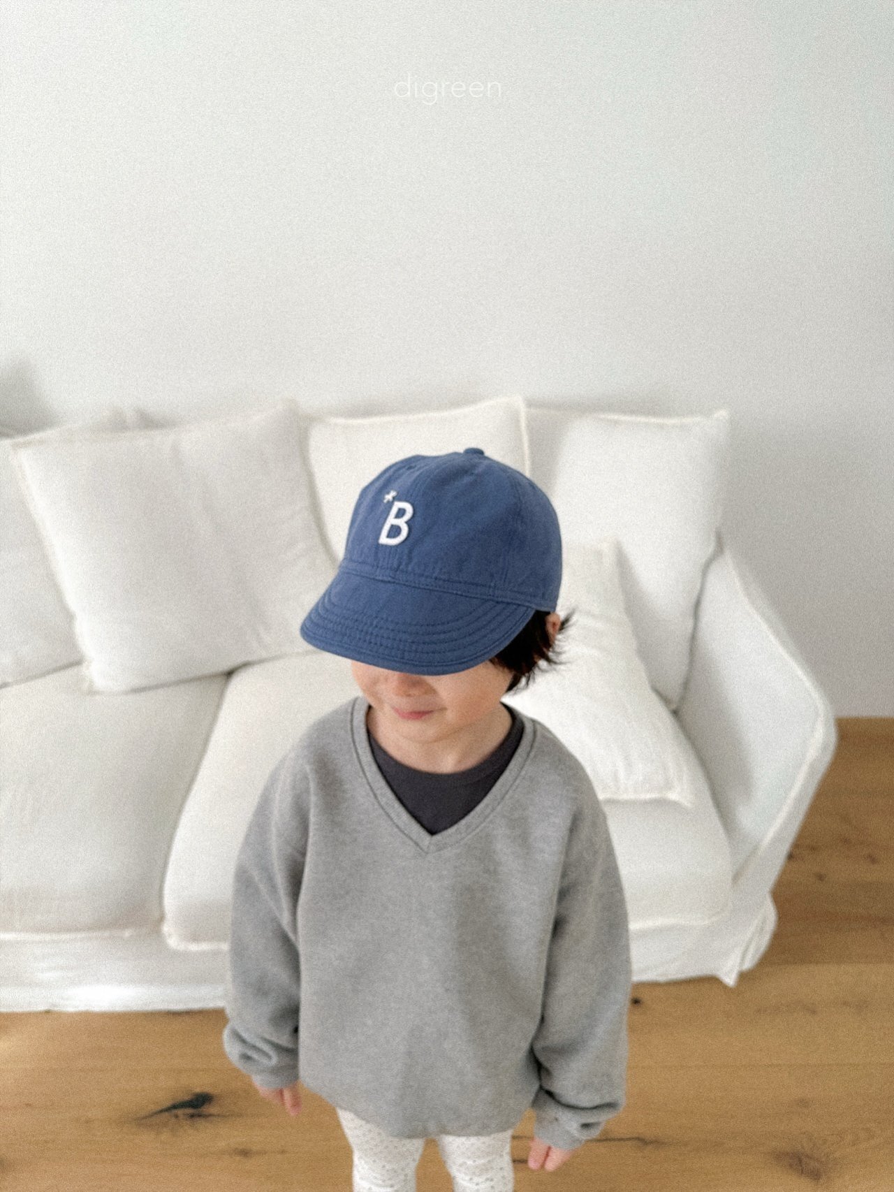微微露出頸部線條的 V 領剪裁,能讓孩子的臉部輪廓看起來更加清晰,