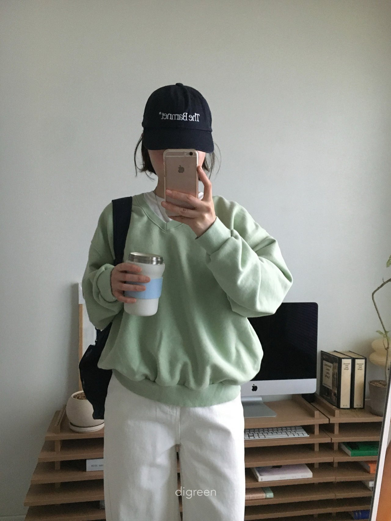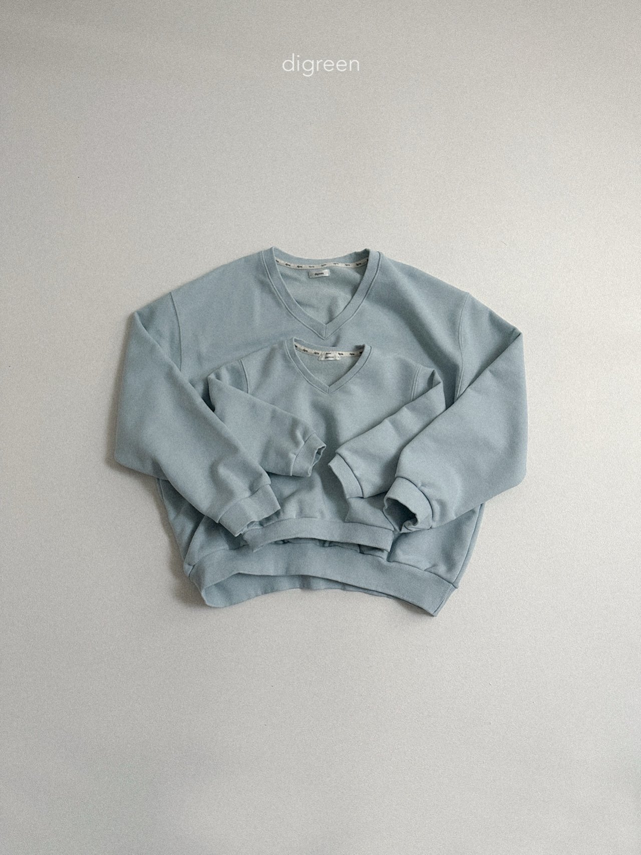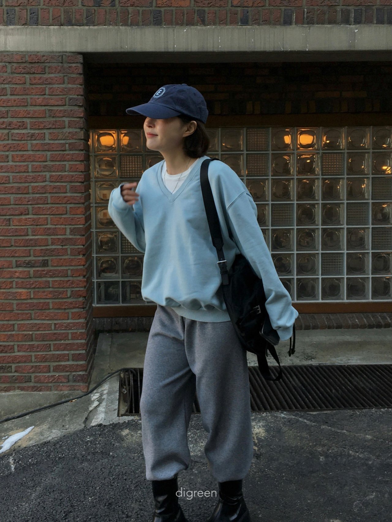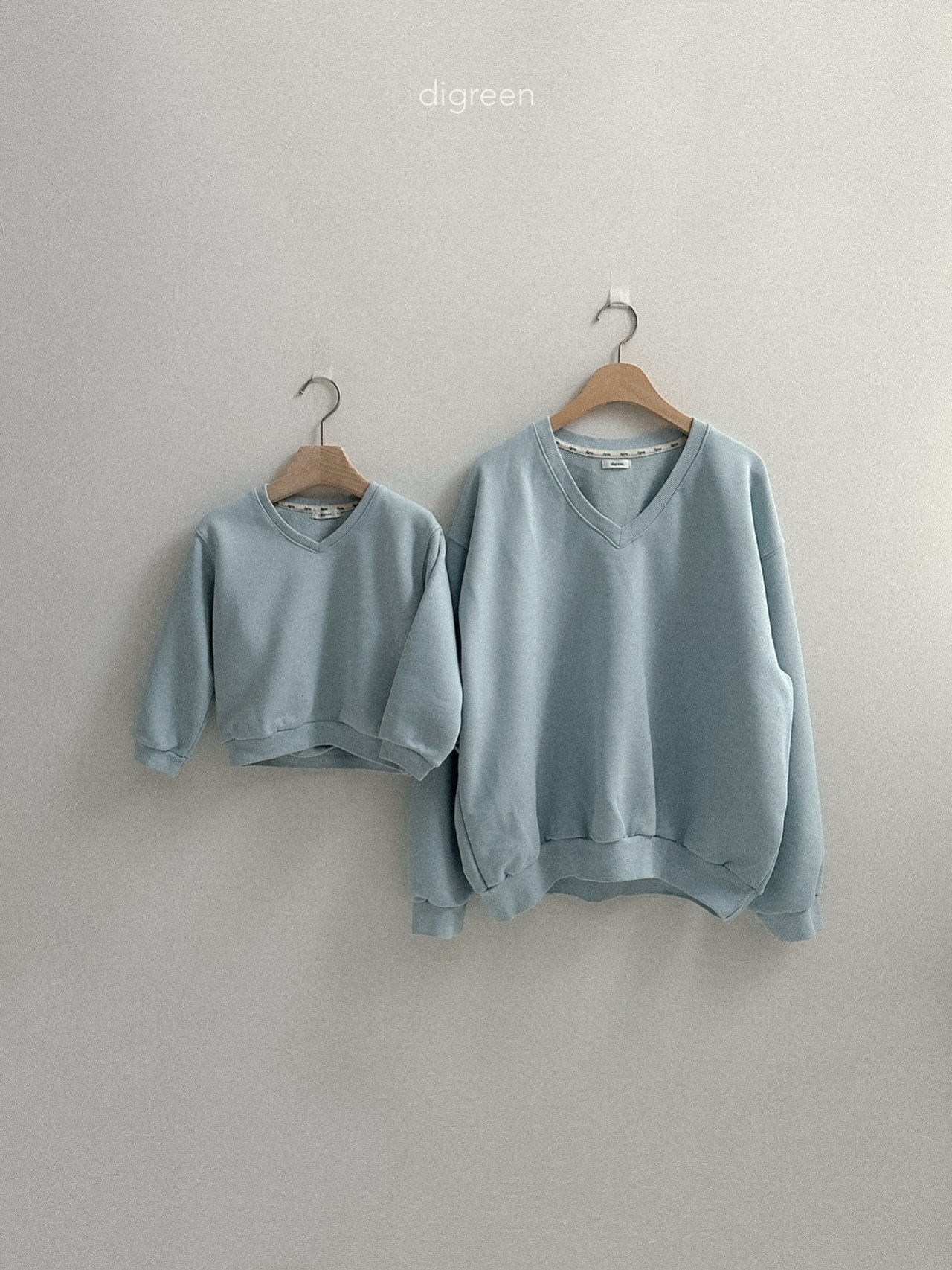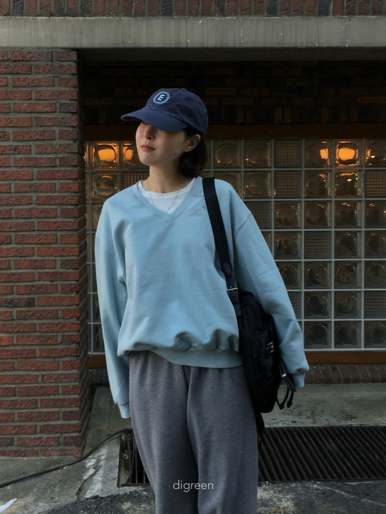 在兒童大學 T 中相當少見的 V 領設計,讓整體看起來不悶、不厚重