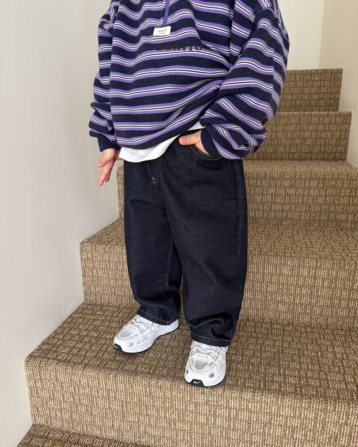 從T恤到大學T都能輕鬆搭配,是一款非常百搭的日常牛仔褲