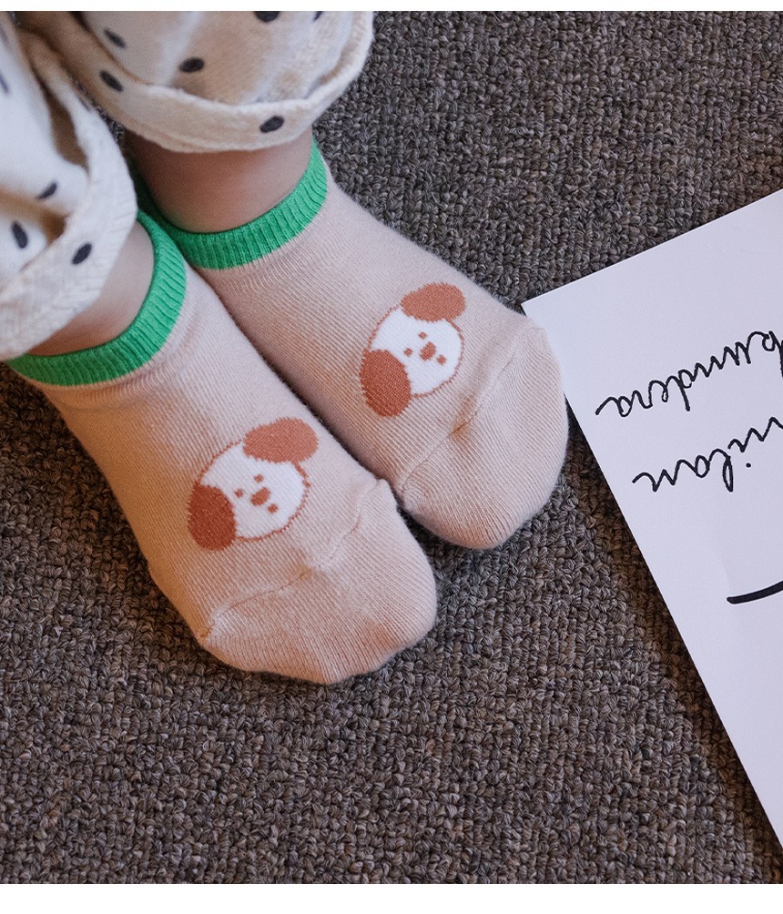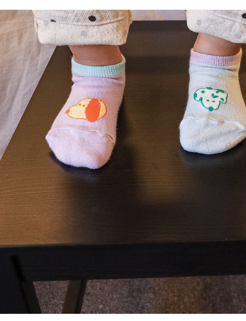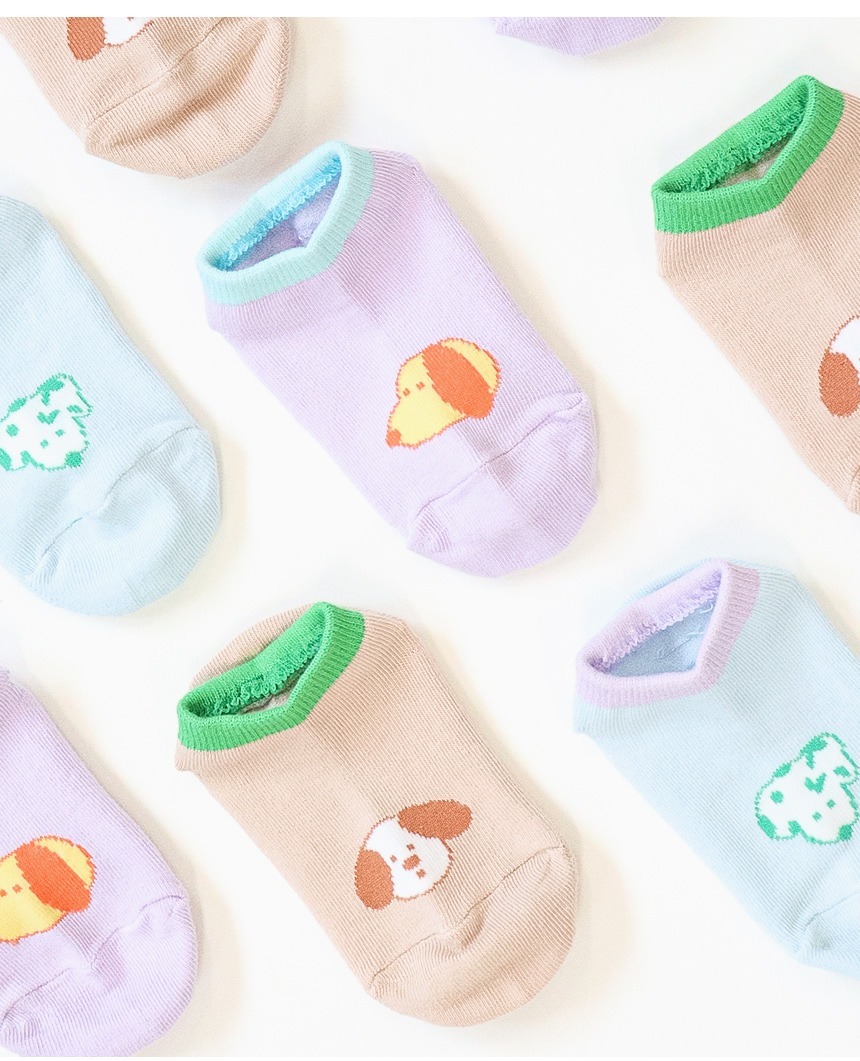 狗狗們的圖案搭配亮色系短襪