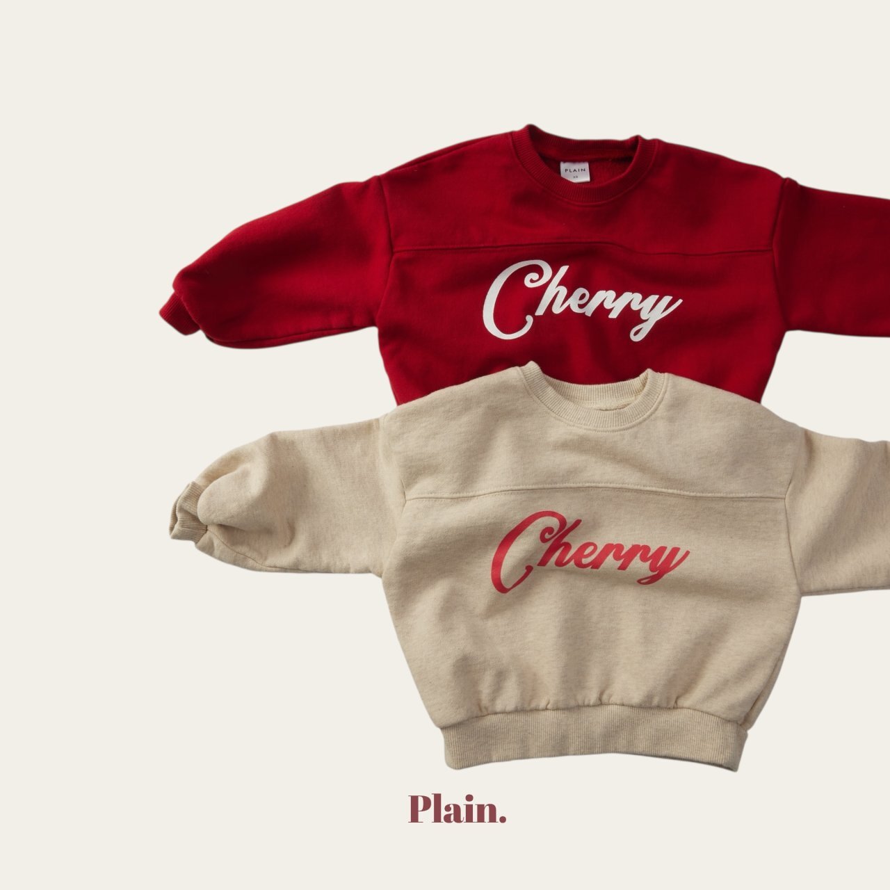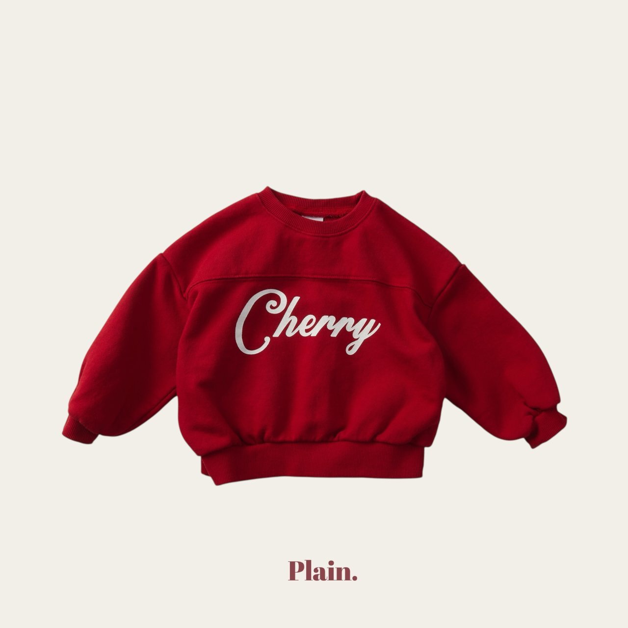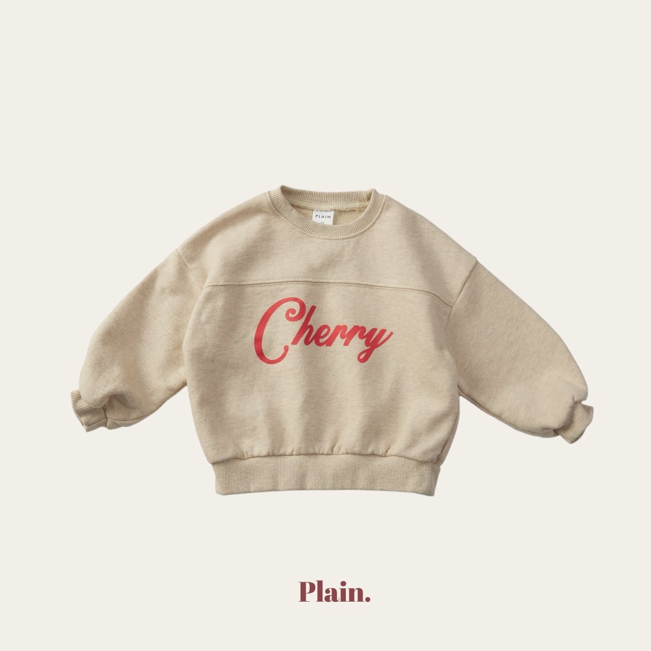 胸前的剪接設計,搭配質感十足的櫻桃字樣印花,讓這款衛衣看起來特別有型、又不失童趣