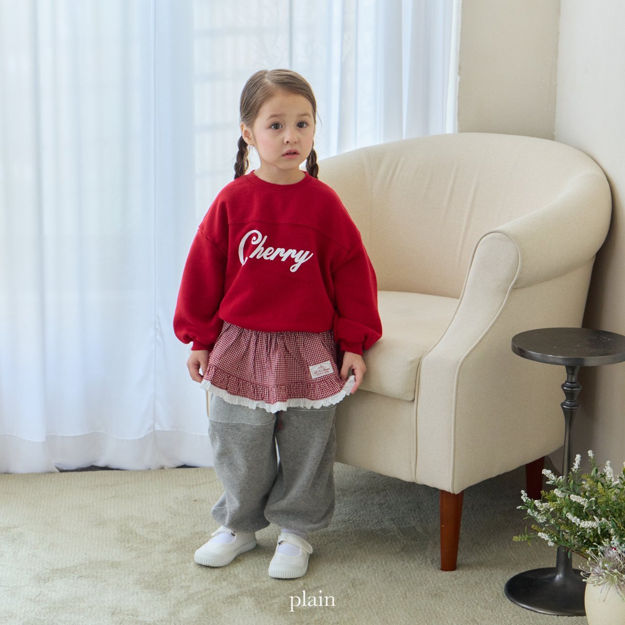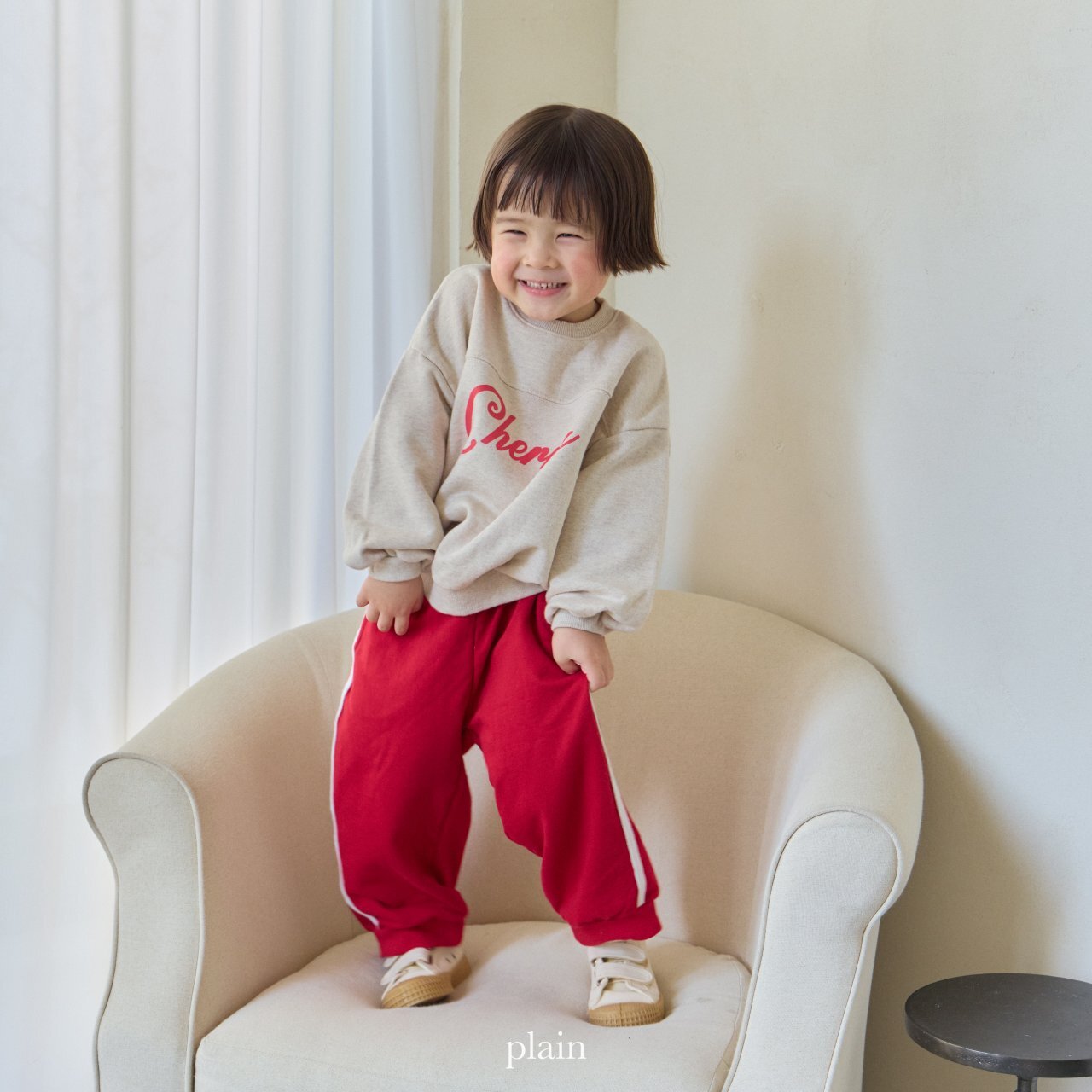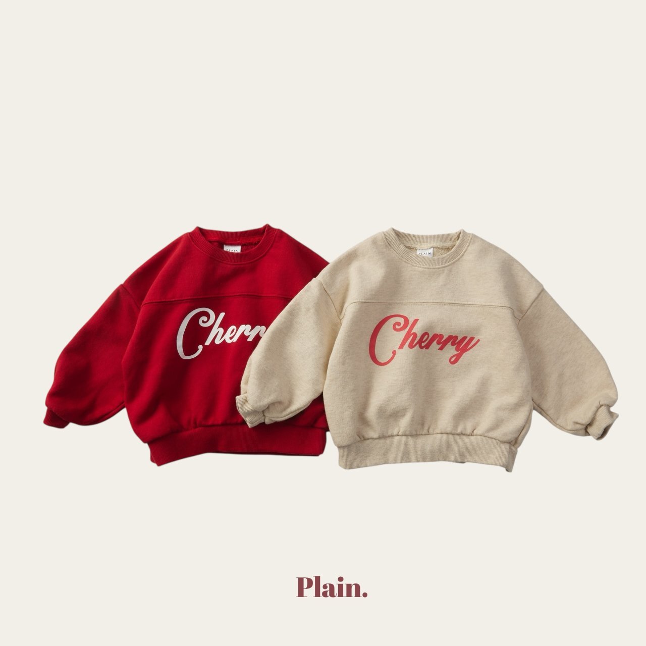 胸前的剪接設計,搭配質感十足的櫻桃字樣印花,讓這款衛衣看起來特別有型、又不失童趣