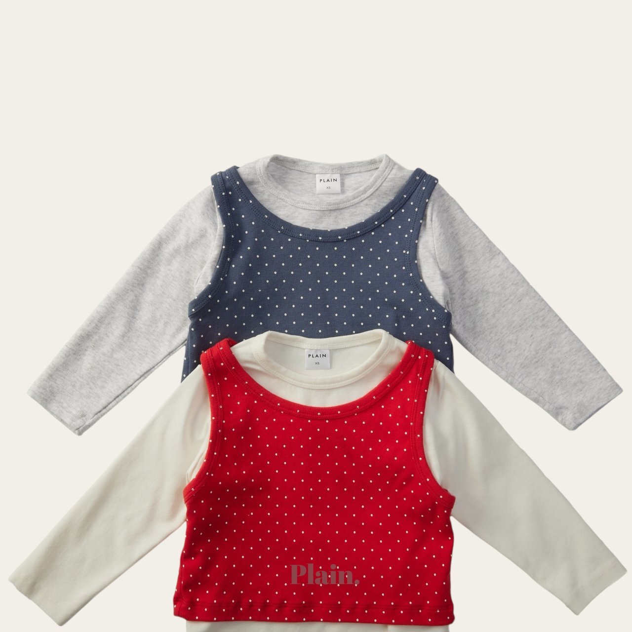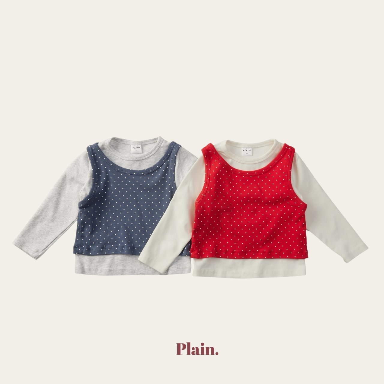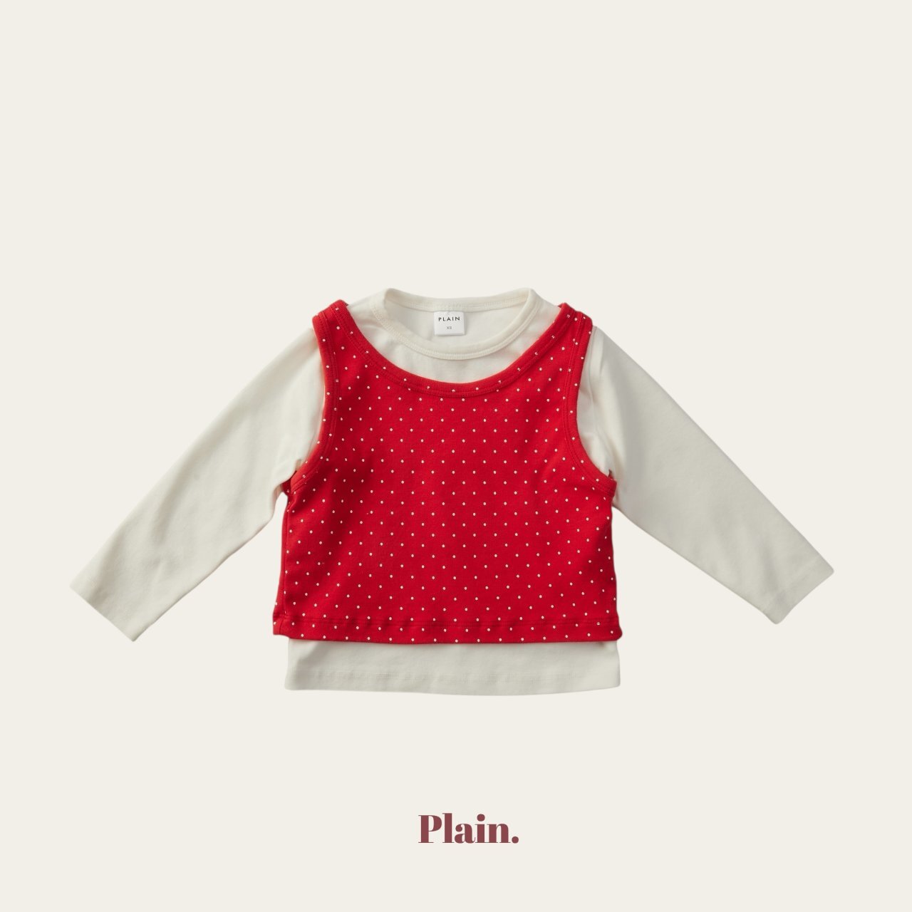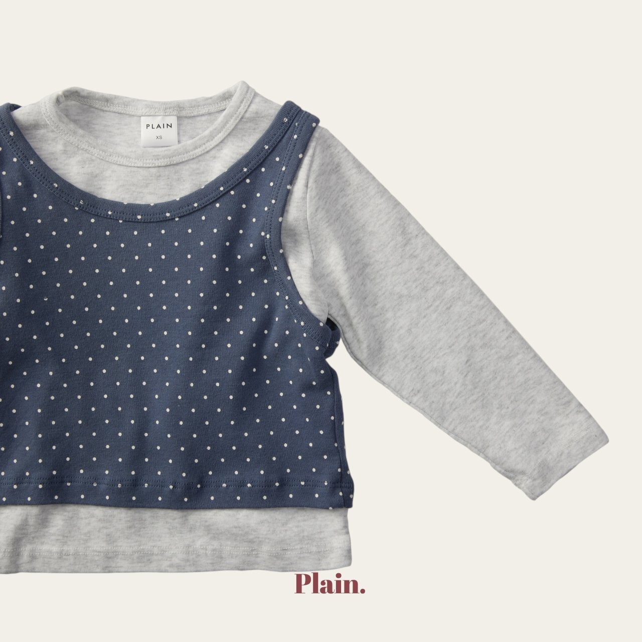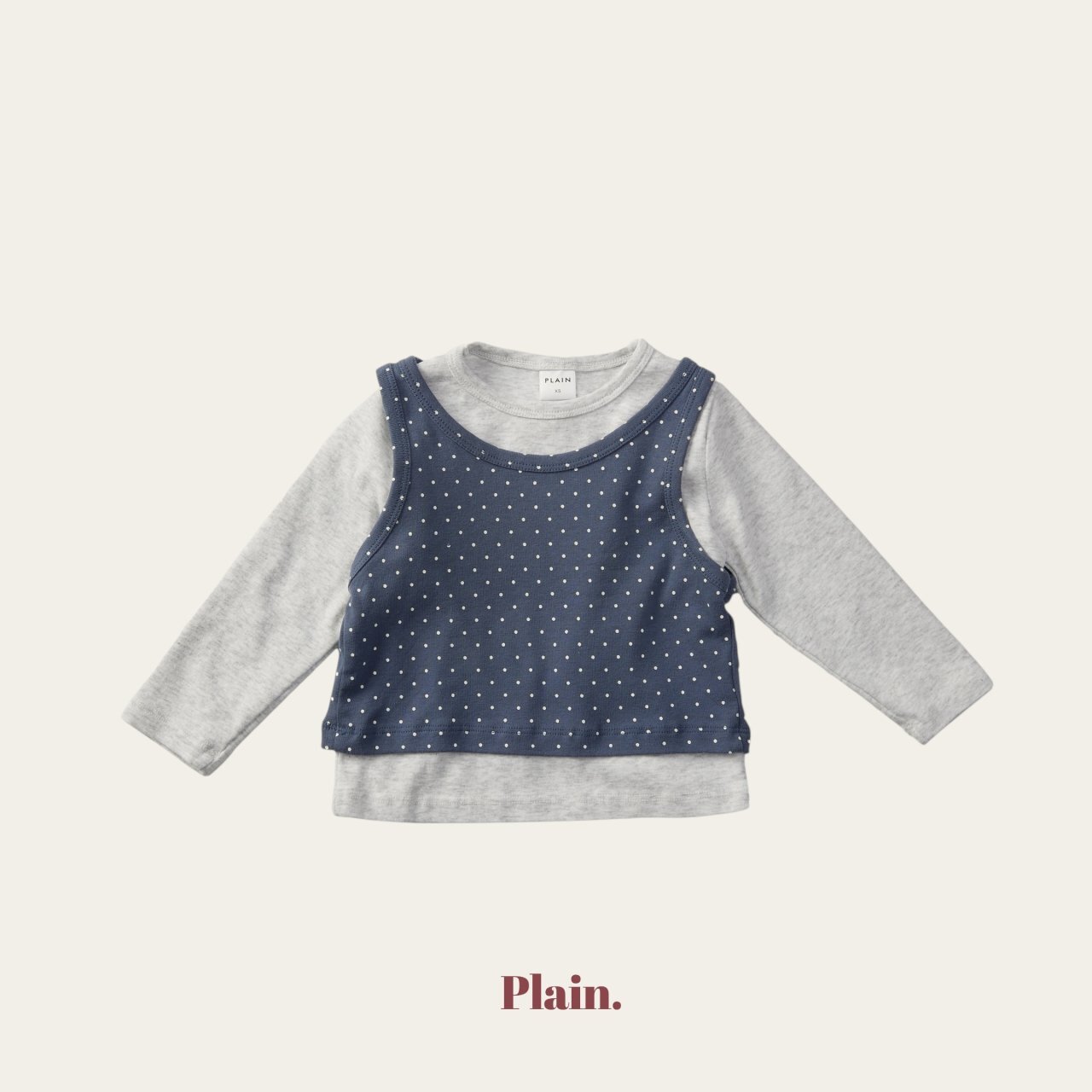 以挺實耐穿的基本T,搭配圓點背心組合而成的層次穿搭上衣