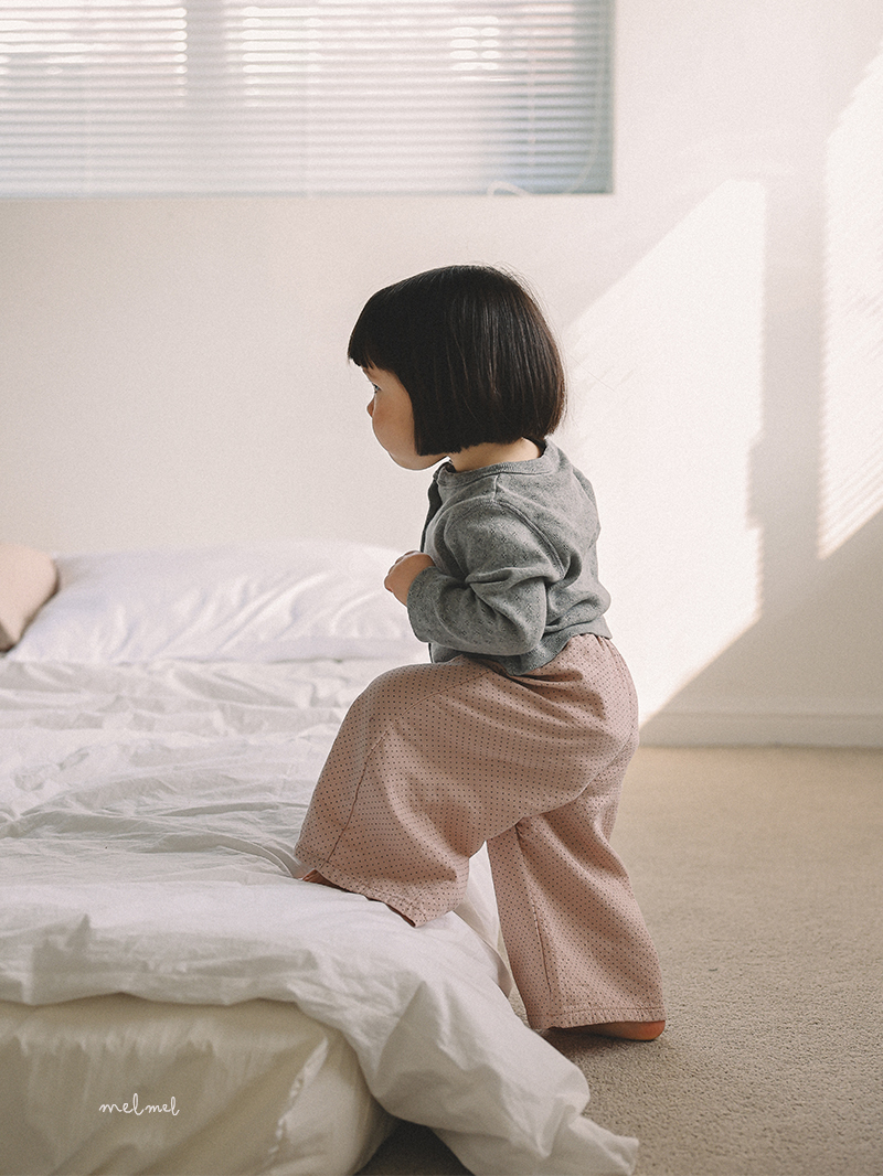 寬鬆自然的 wide fit,輕柔包覆孩子的每個動作,走動時褲擺微微擺動,