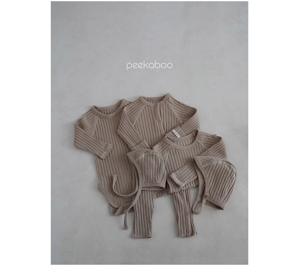 這是一款採用20支羅紋氨綸面料製成的嬰兒套裝