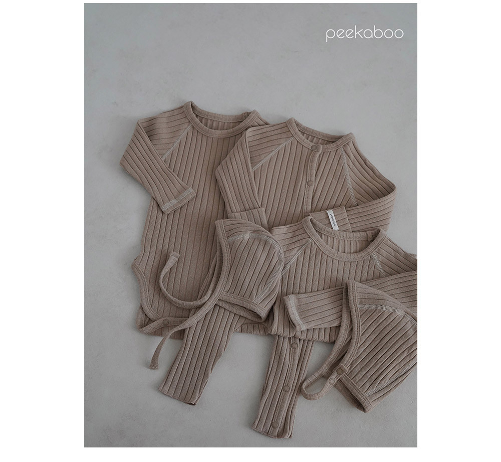 這是一款採用20支羅紋氨綸面料製成的嬰兒套裝