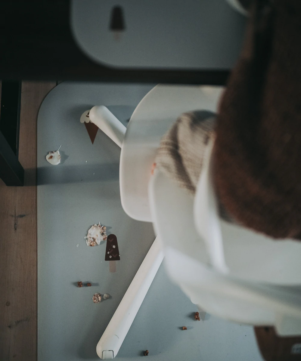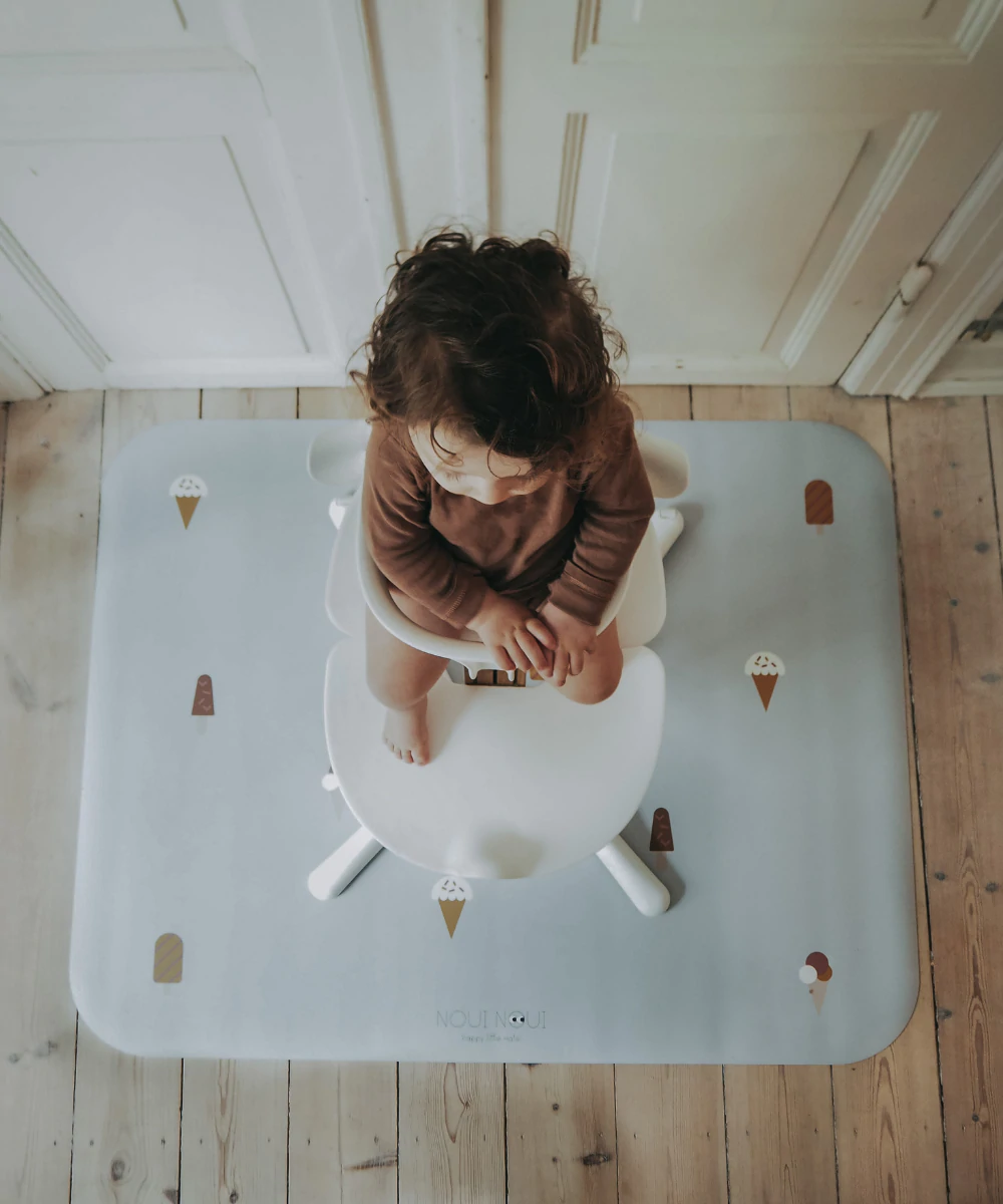 在高腳椅下,它可以完美地保護地板免受食物和液體的侵害