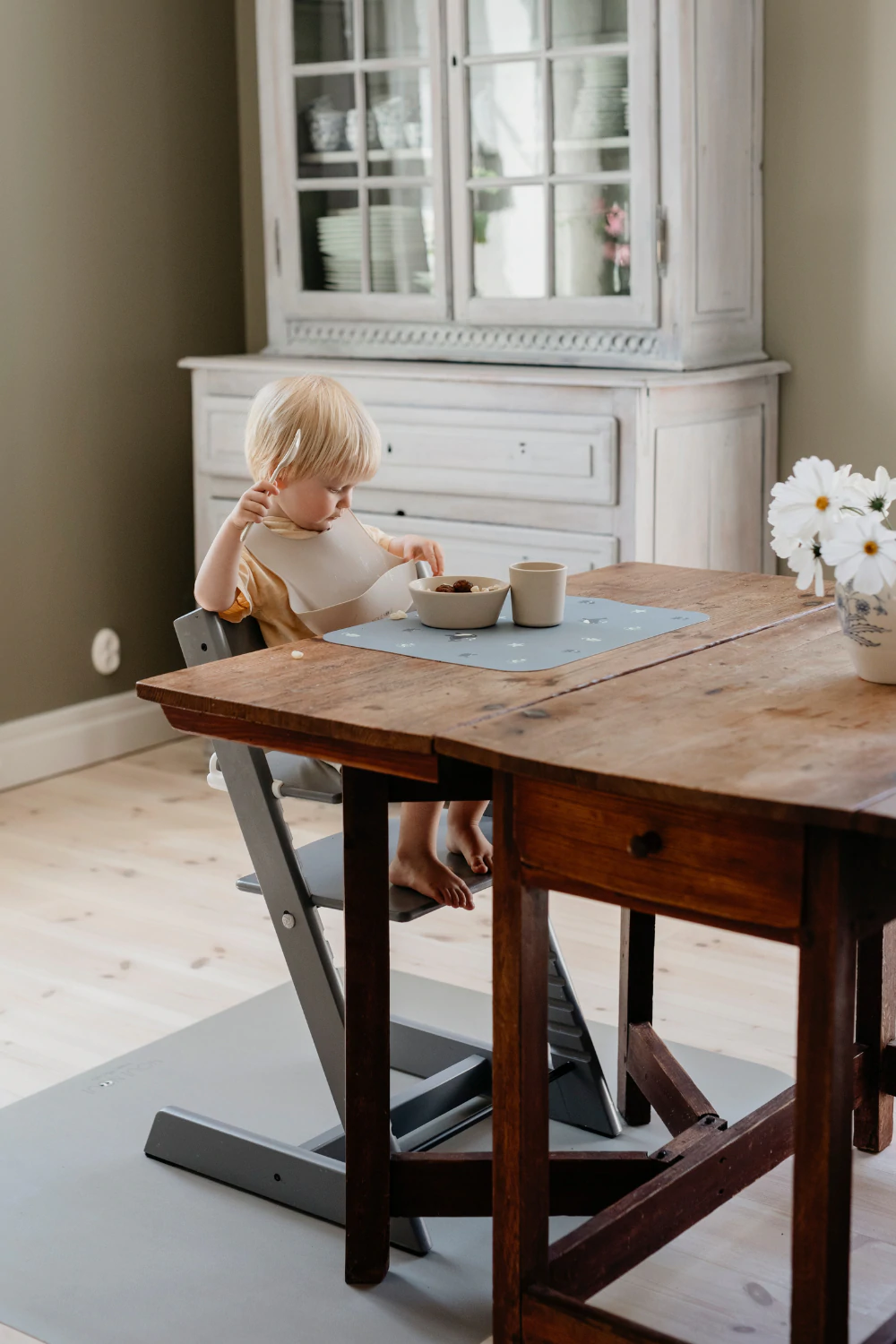 在高腳椅下,它可以完美地保護地板免受食物和液體的侵害
