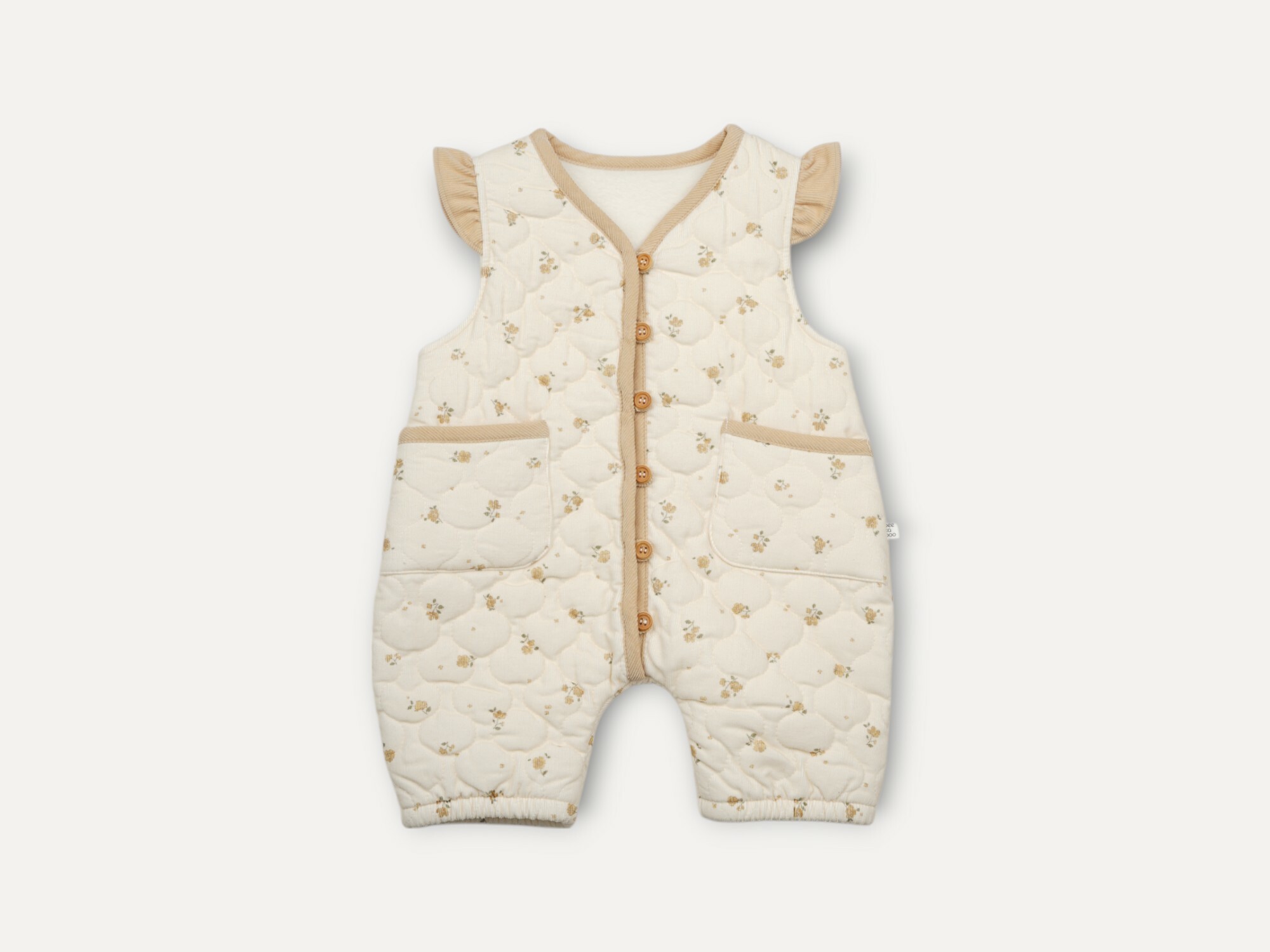 以可愛的摺邊以及木鈕扣大大增添自然魅力
