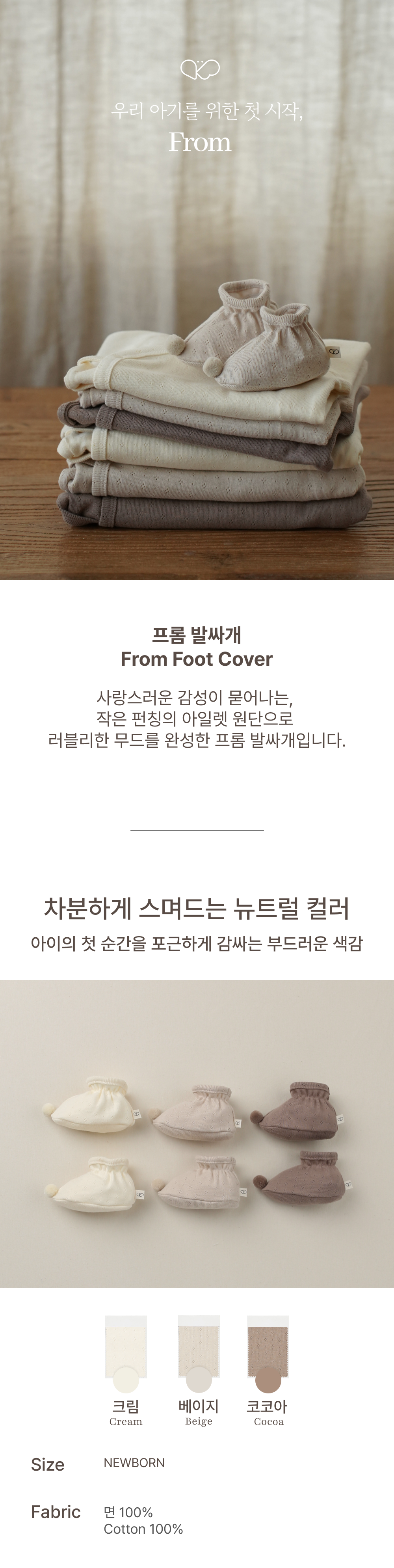 100%純棉材質,觸感輕柔,呵護新生兒嬌嫩的肌膚,柔和溫馨的配色更添一份甜美可愛