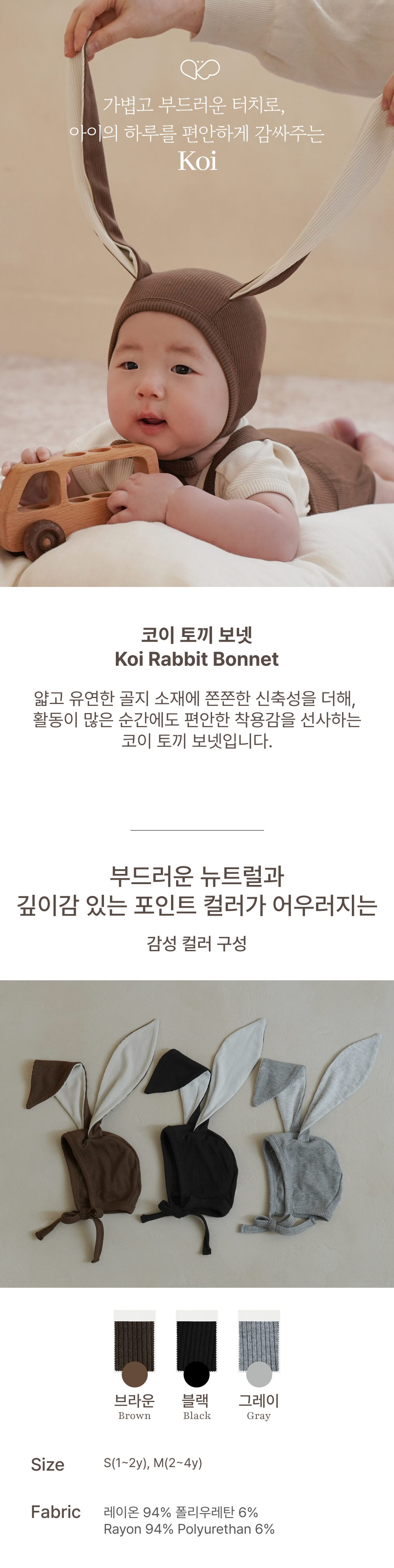 這款兔子造型的帽子採用輕盈柔軟的羅紋人造絲氨綸混紡面料製成,透氣性極佳,適合春夏穿著