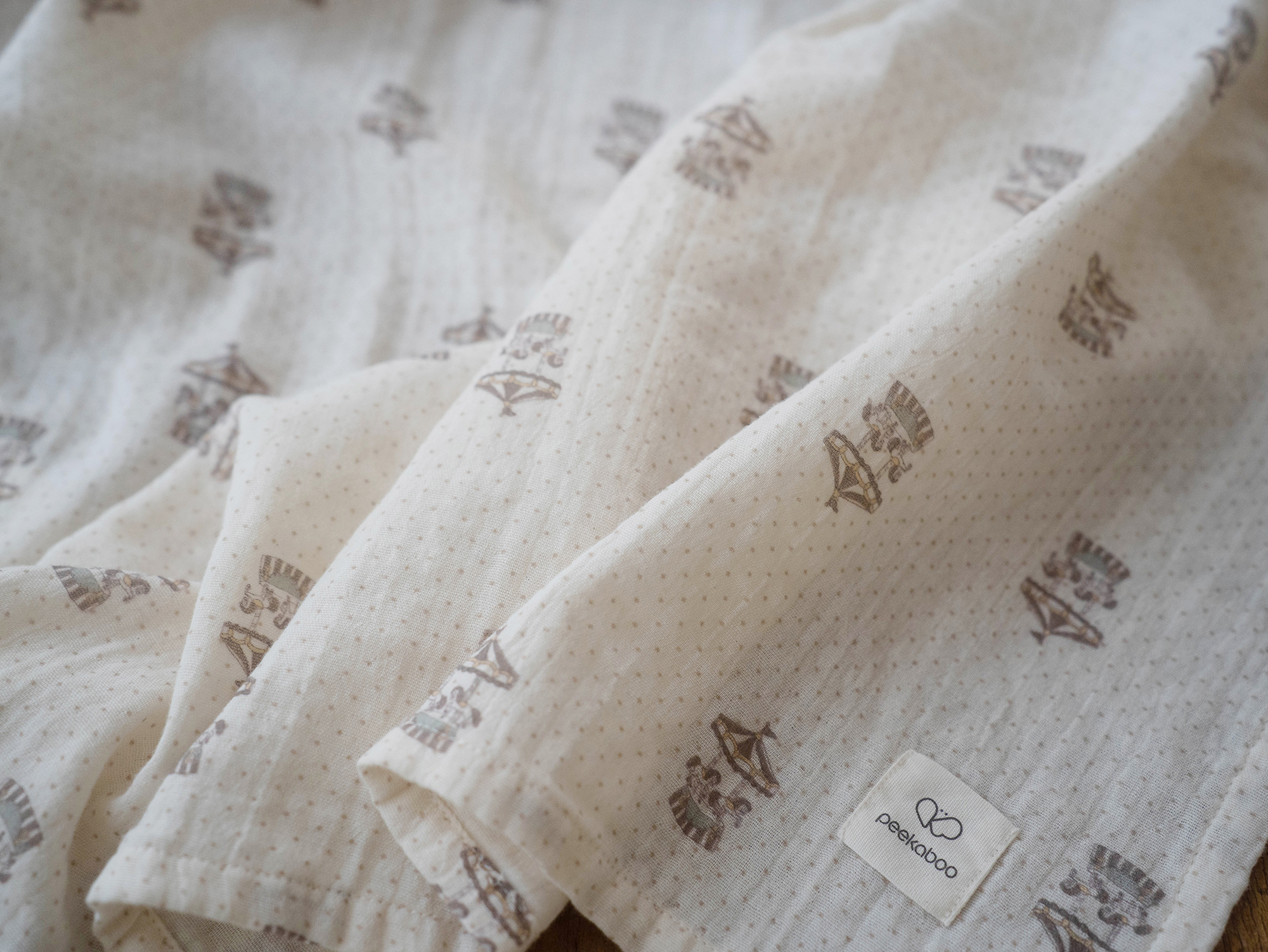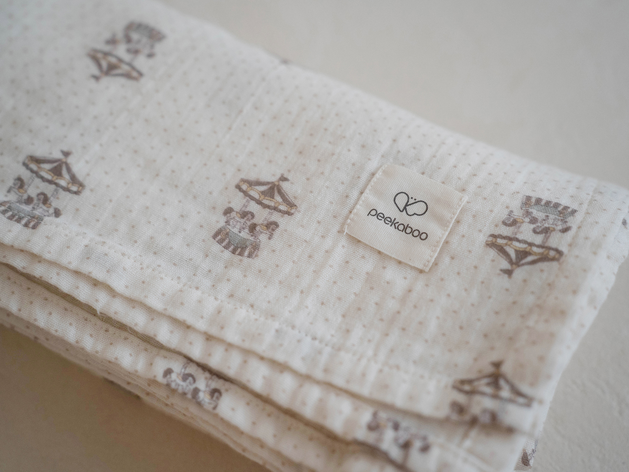 最大的尺寸可以用作包巾或嬰兒車內遮陽等各種用途,100%棉編織雙層布料製成