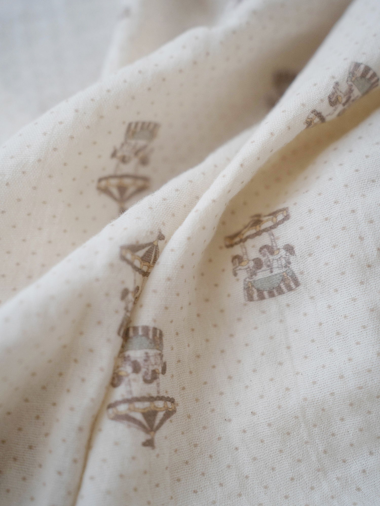 結合了沉穩的圓點圖和旋轉木馬音樂盒的印花