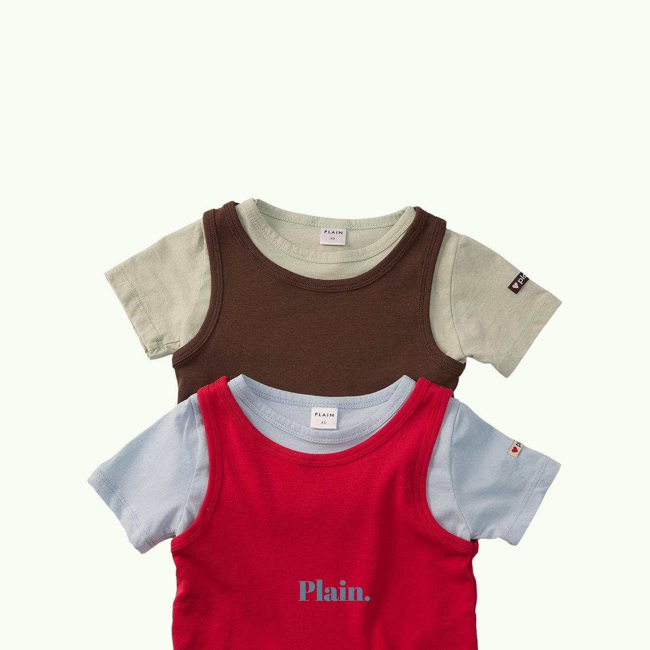 這是一款以清新撞色為亮點的 PLAIN 層次穿搭組