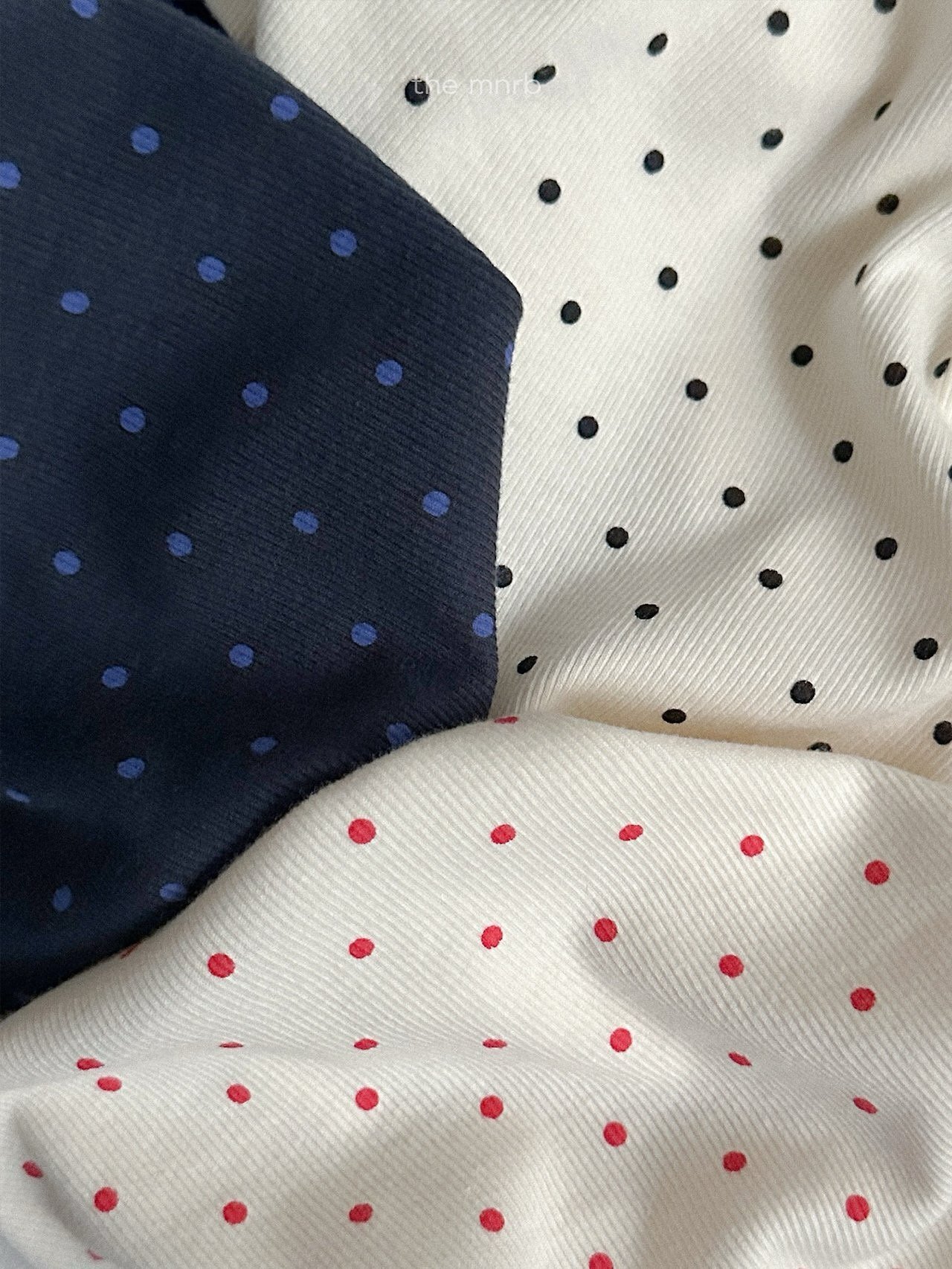 細緻的羅紋布料結合點點圖案,即使簡單穿上也不單調,自然成為整體造型的亮點,呈現出滿滿的可愛感