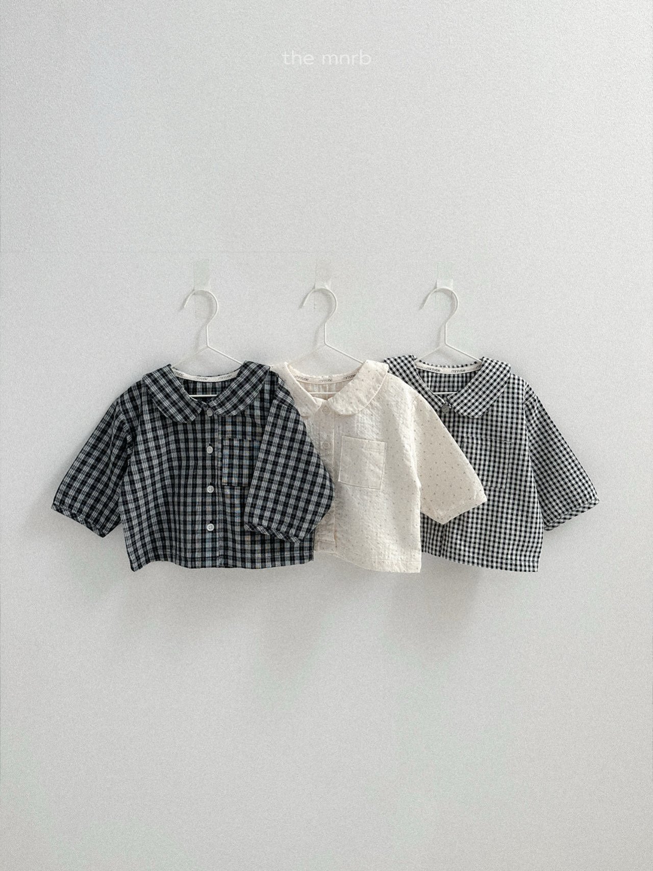 如照片所示,以圓弧領口為亮點的襯衫 ,圓潤的領型讓臉部看起來更加可愛
