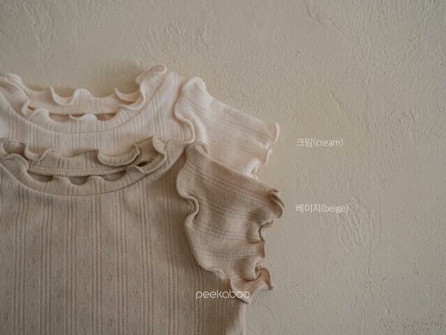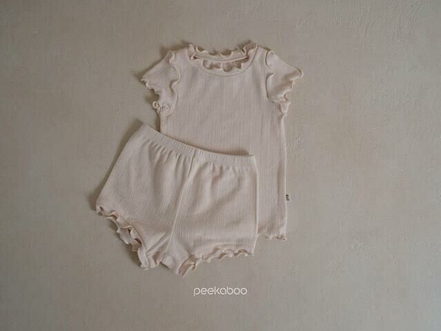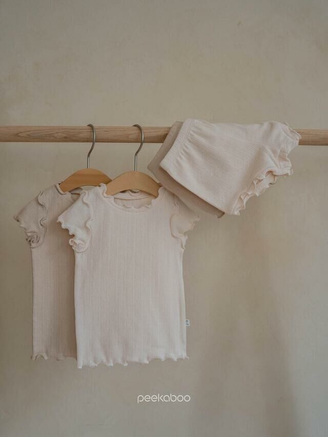 褲子的領口、袖子、下擺處有波浪的細節給人一種俏皮可愛的感覺