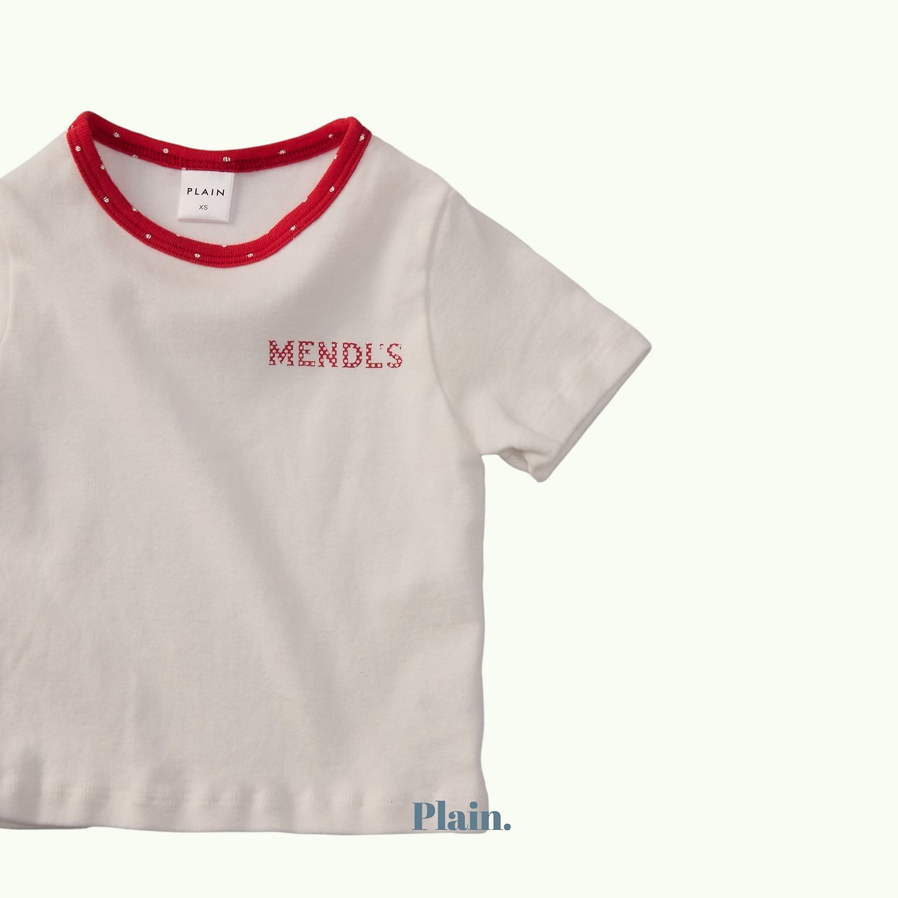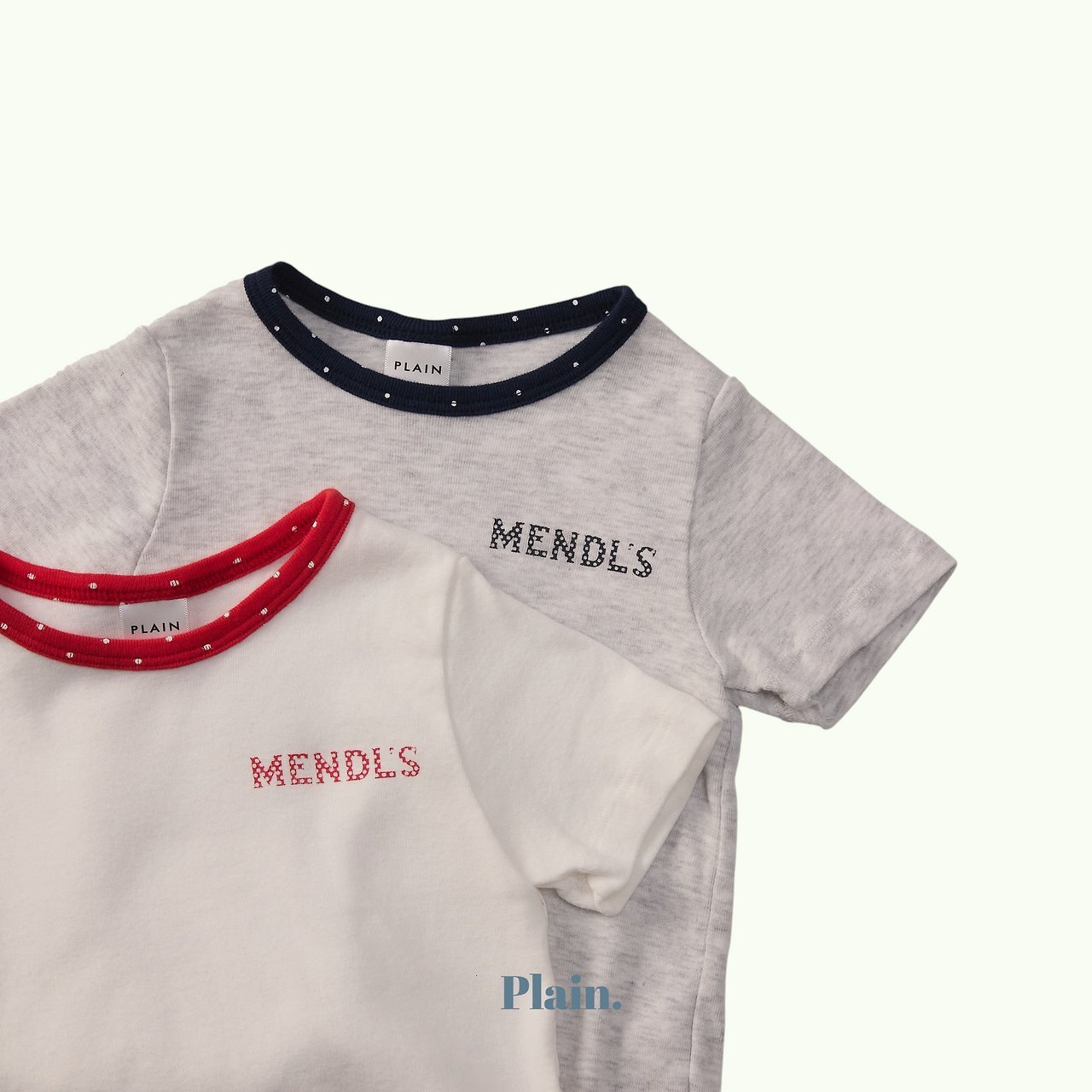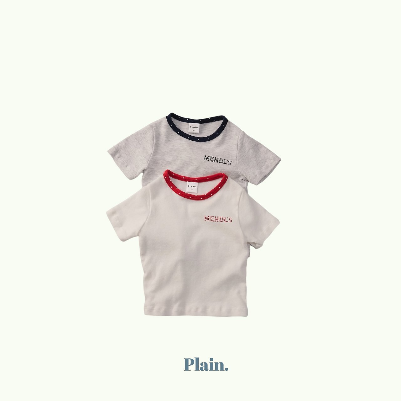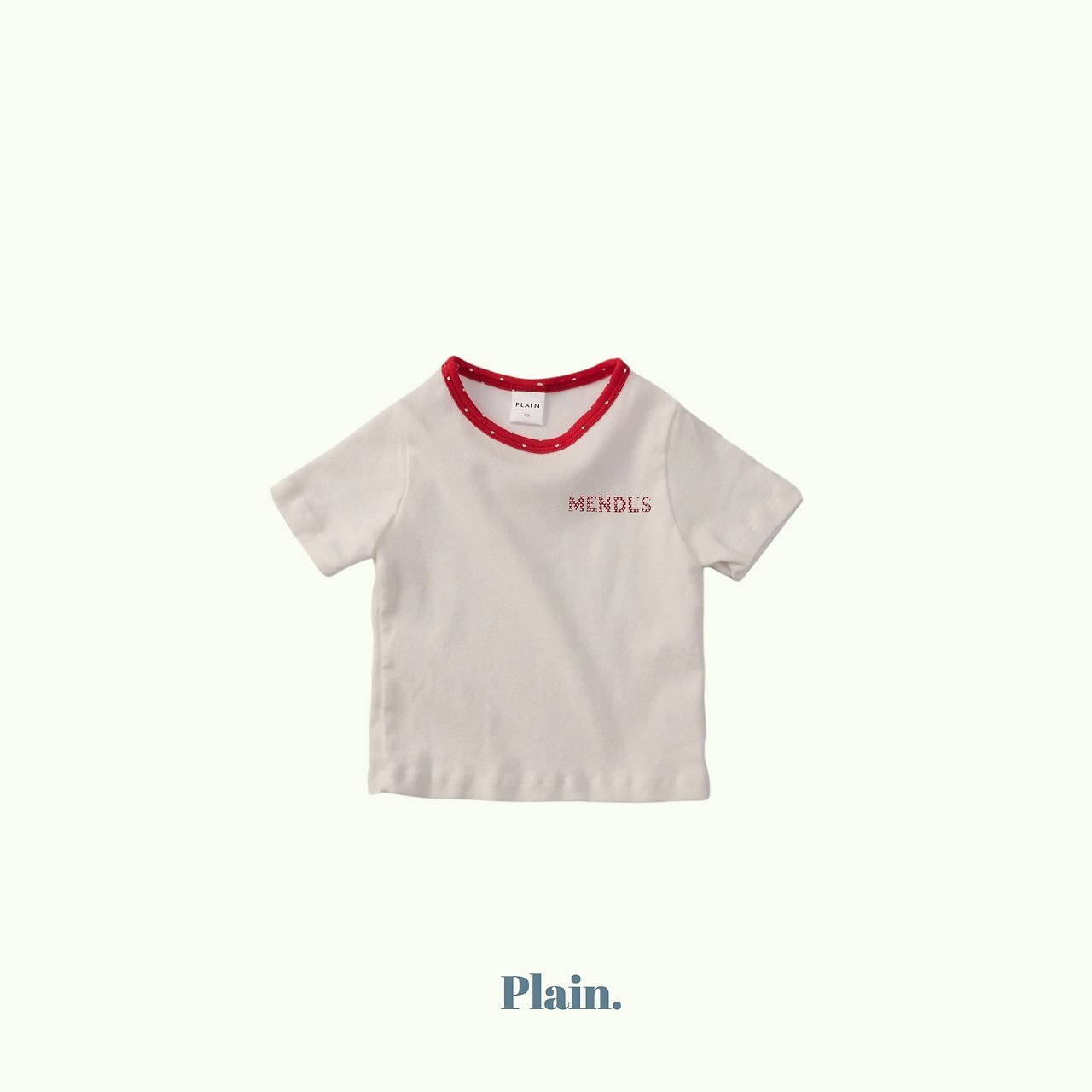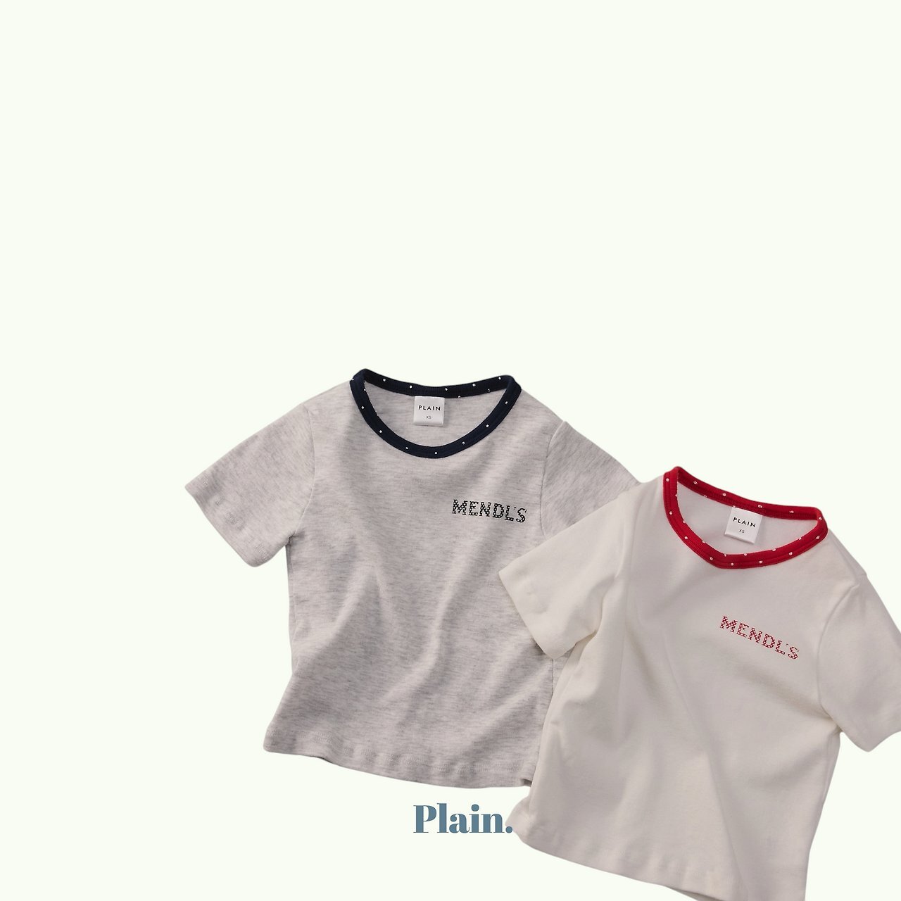 這是一款以領口撞色圓點設計為亮點的修身Mendls 短袖T