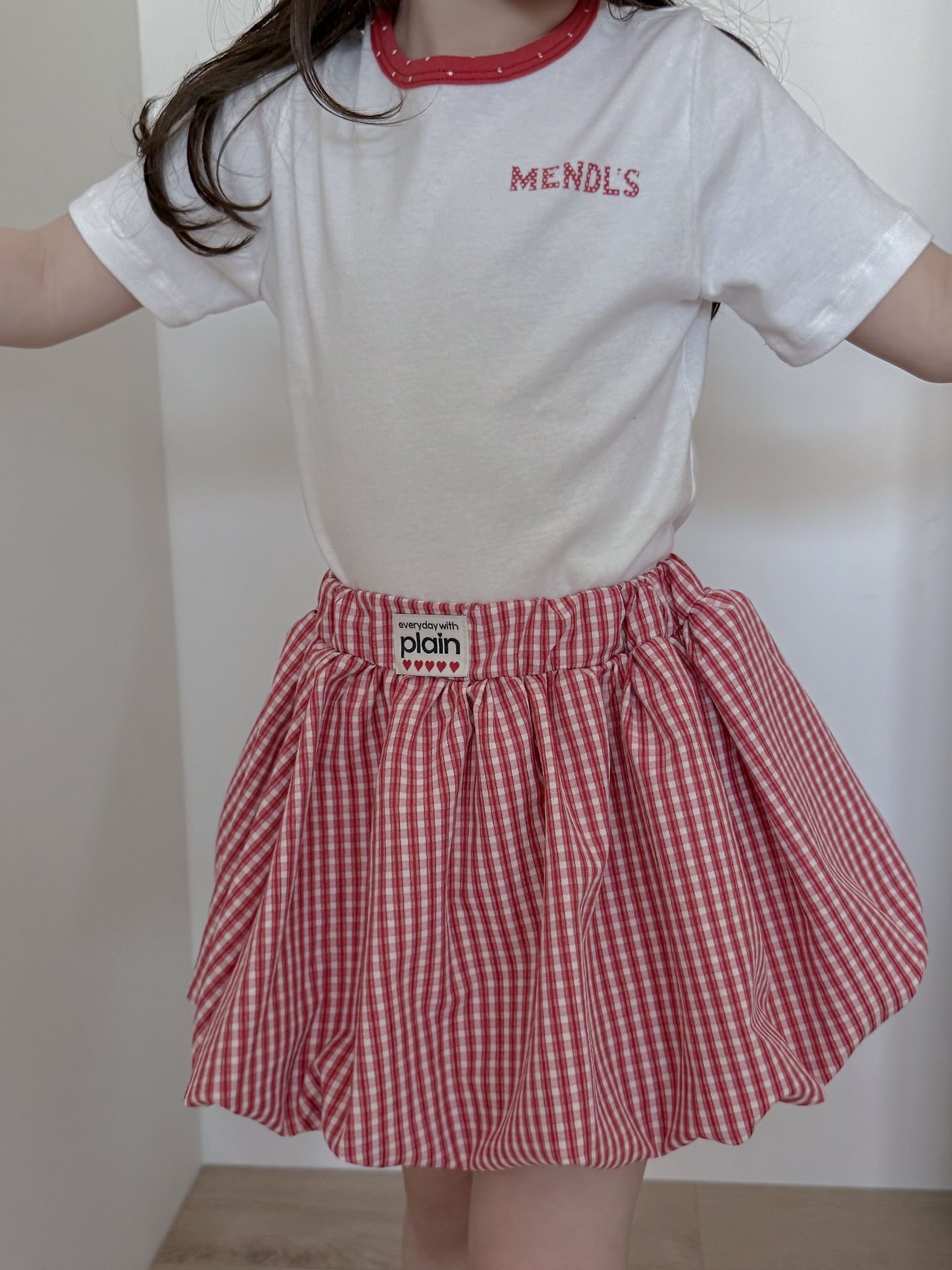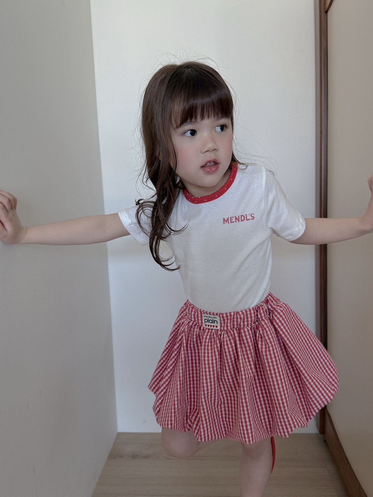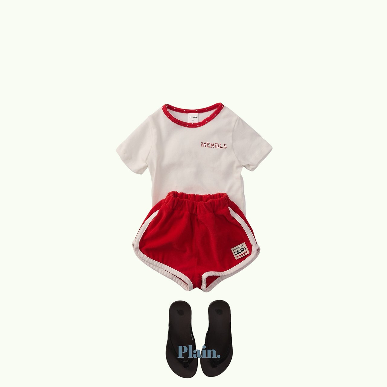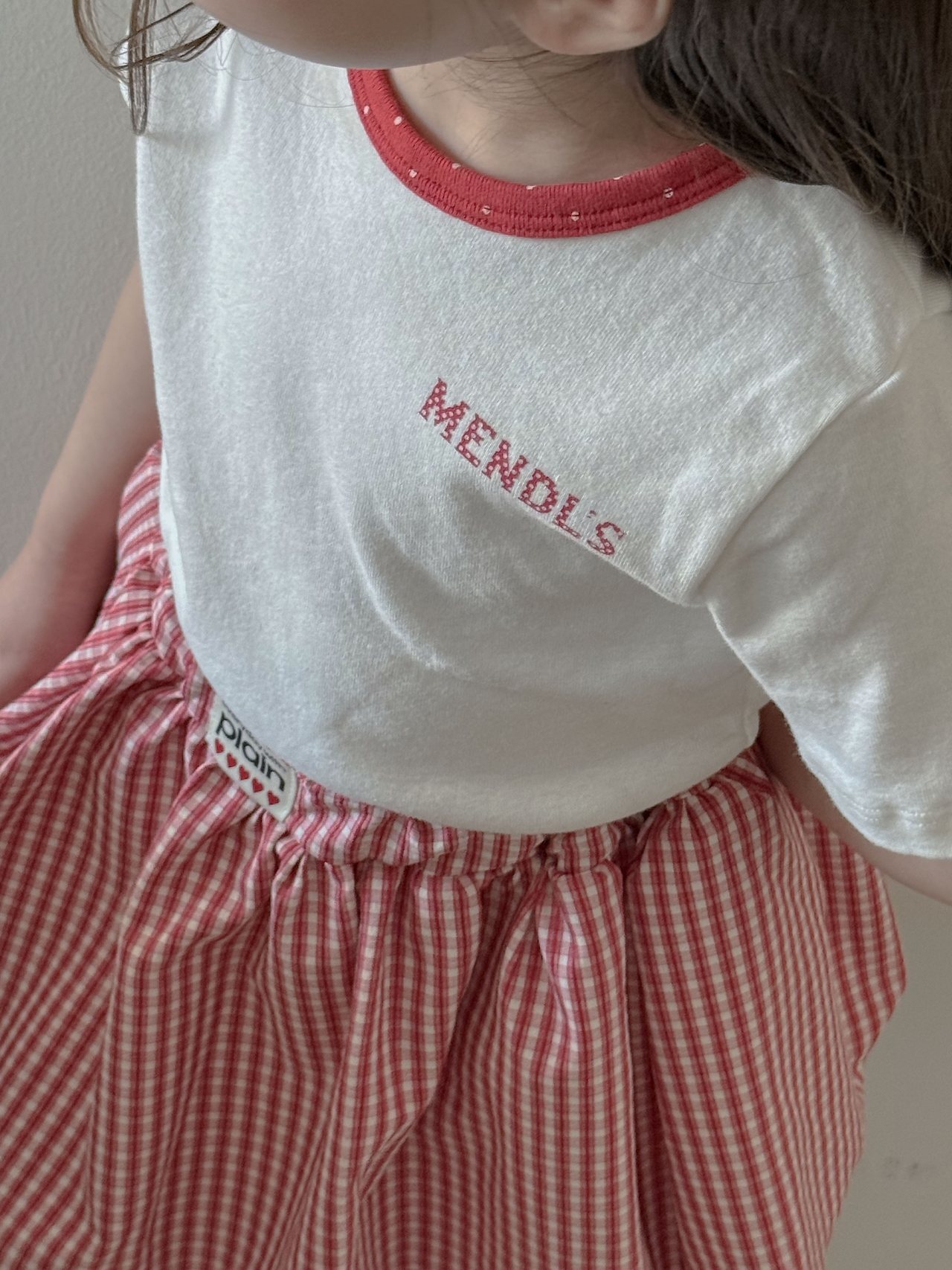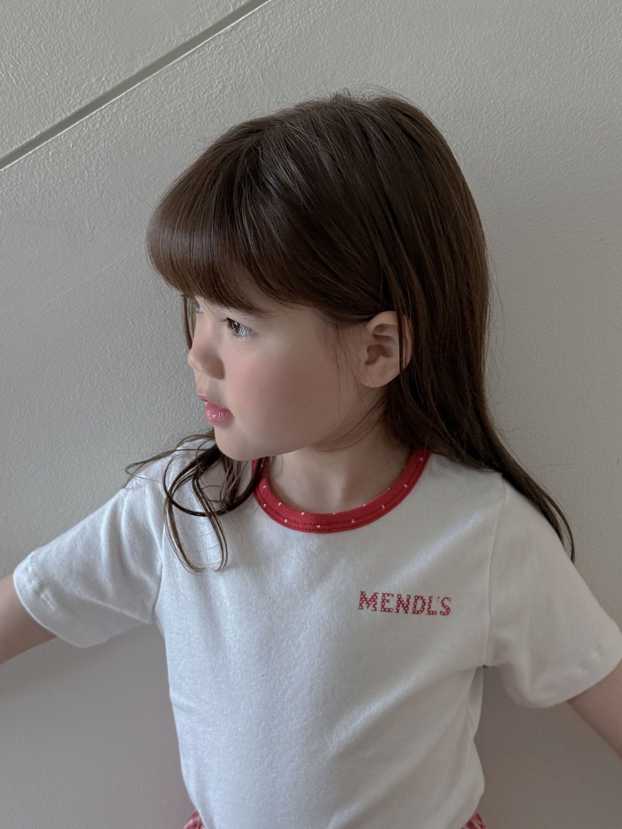 這是一款以領口撞色圓點設計為亮點的修身Mendls 短袖T