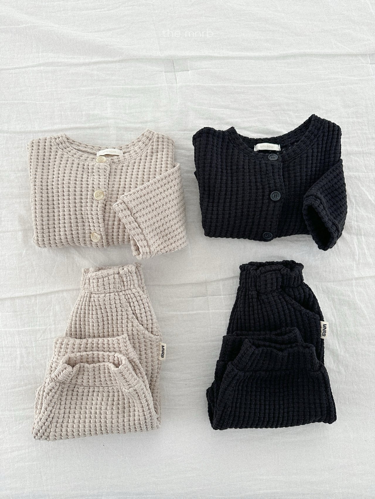 與 Mone 針織外套使用相同的大華夫格布料,成套搭配時能呈現更自然、完整的造型感