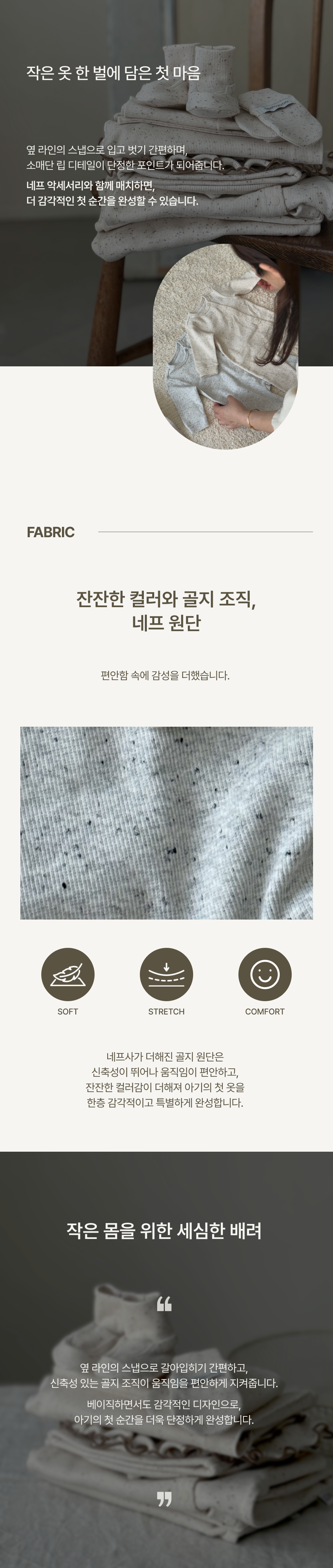 彈性羅紋布料讓寶寶穿著舒適