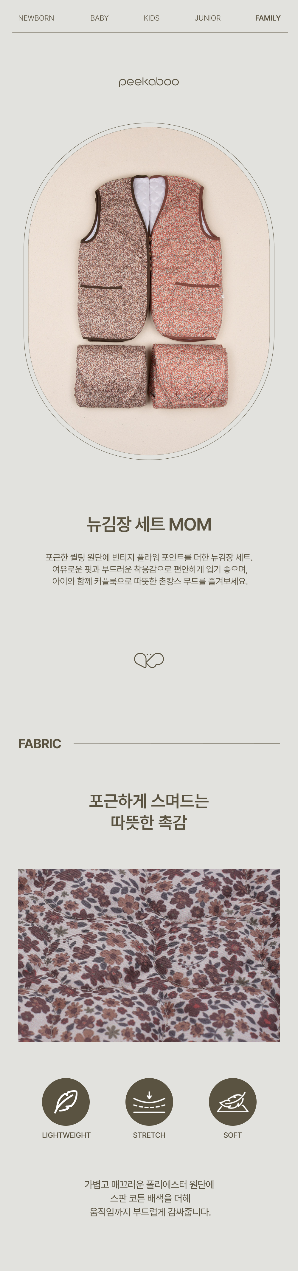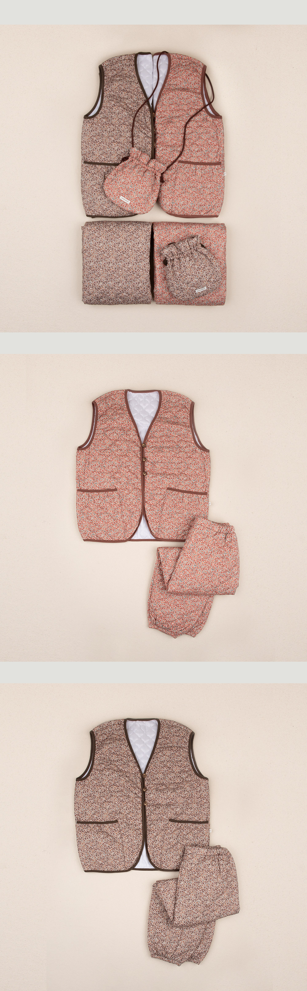 厚實的絎縫布料保暖舒適,復古花卉印花更添幾分雅緻
