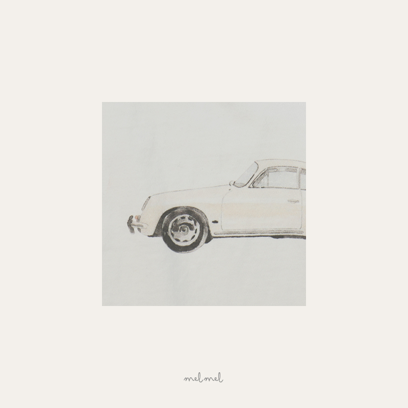 在柔軟且紮實的純棉面料上,透過數位印刷技術細緻呈現老車圖案,