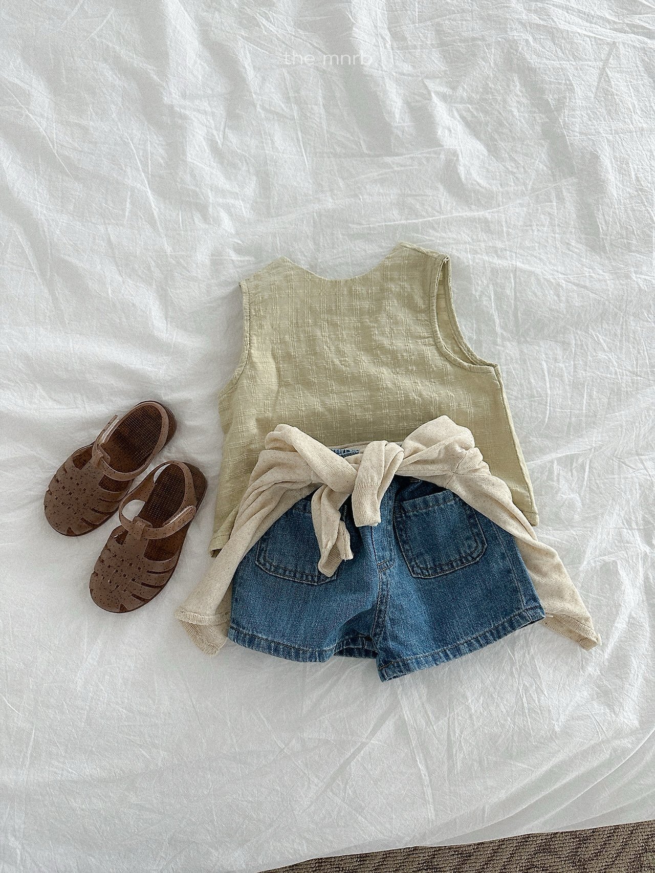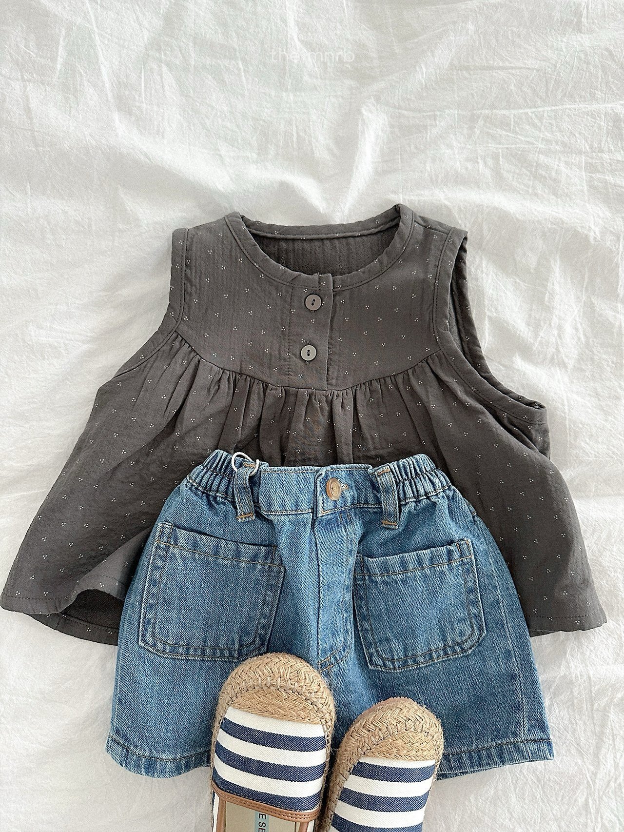 一款以可愛細節為亮點的牛仔短褲