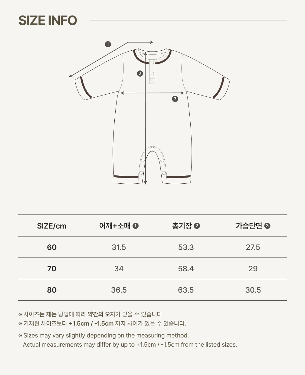 領口設計增添了俏皮感,下擺的按扣方便更換尿布