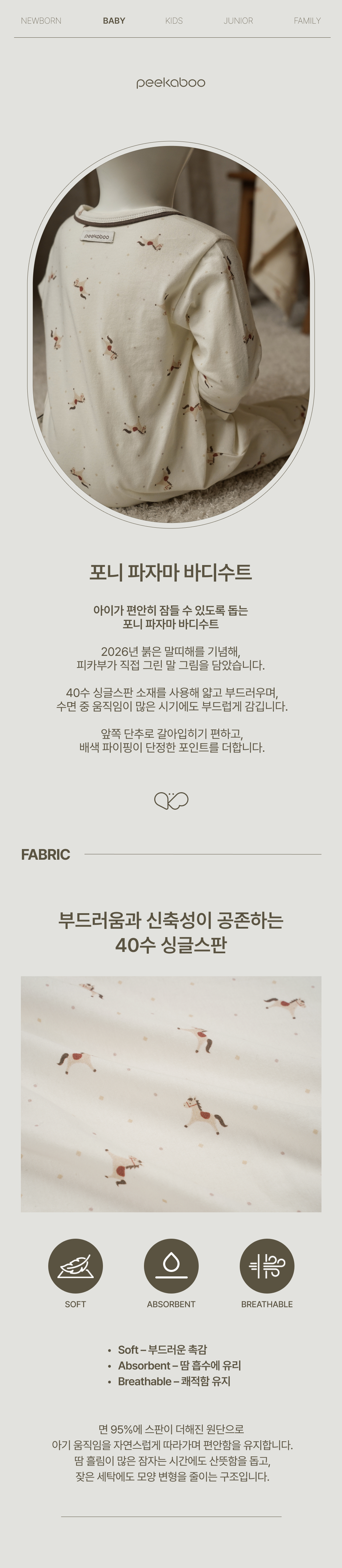這款小馬連身衣採用可愛的馬匹圖案,由輕薄柔軟的棉氨綸面料製成,穿著舒適,適合全天穿著