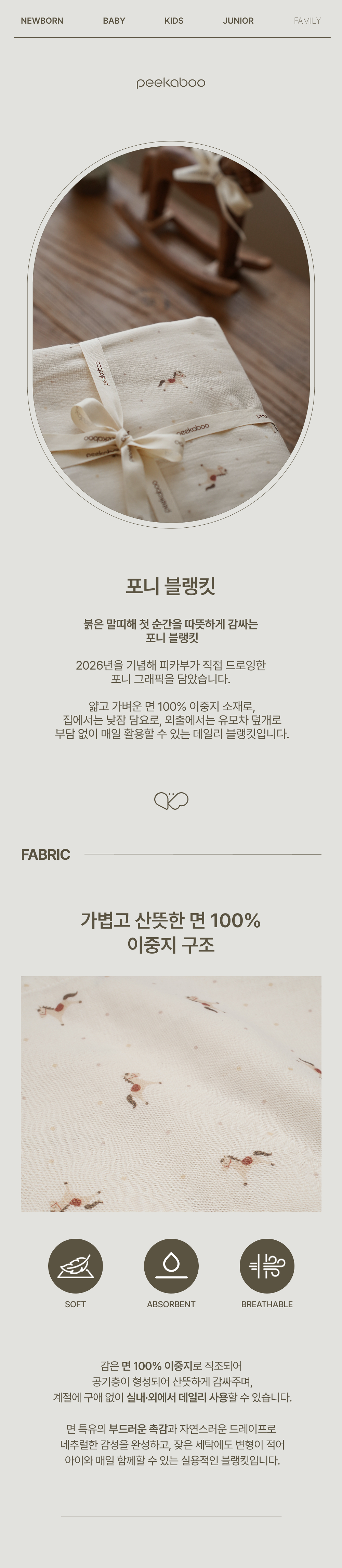 這款印有小馬圖案的毯子採用輕盈的純棉布料,觸感柔軟親膚,呵護寶寶嬌嫩的肌膚