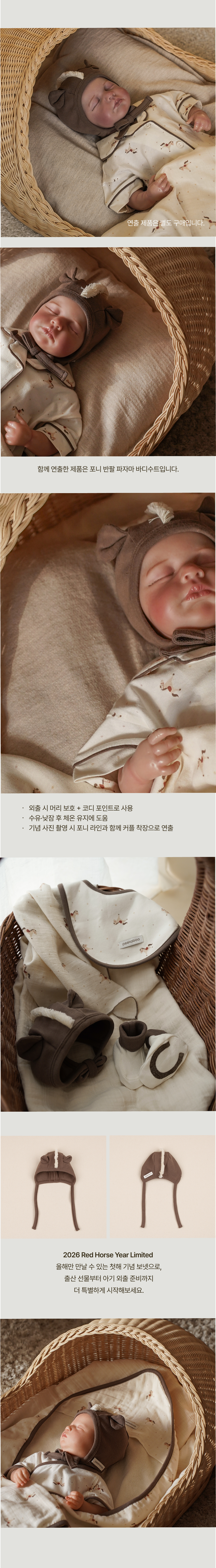 這款小馬造型的嬰兒帽溫柔地包裹著寶寶的臉龐