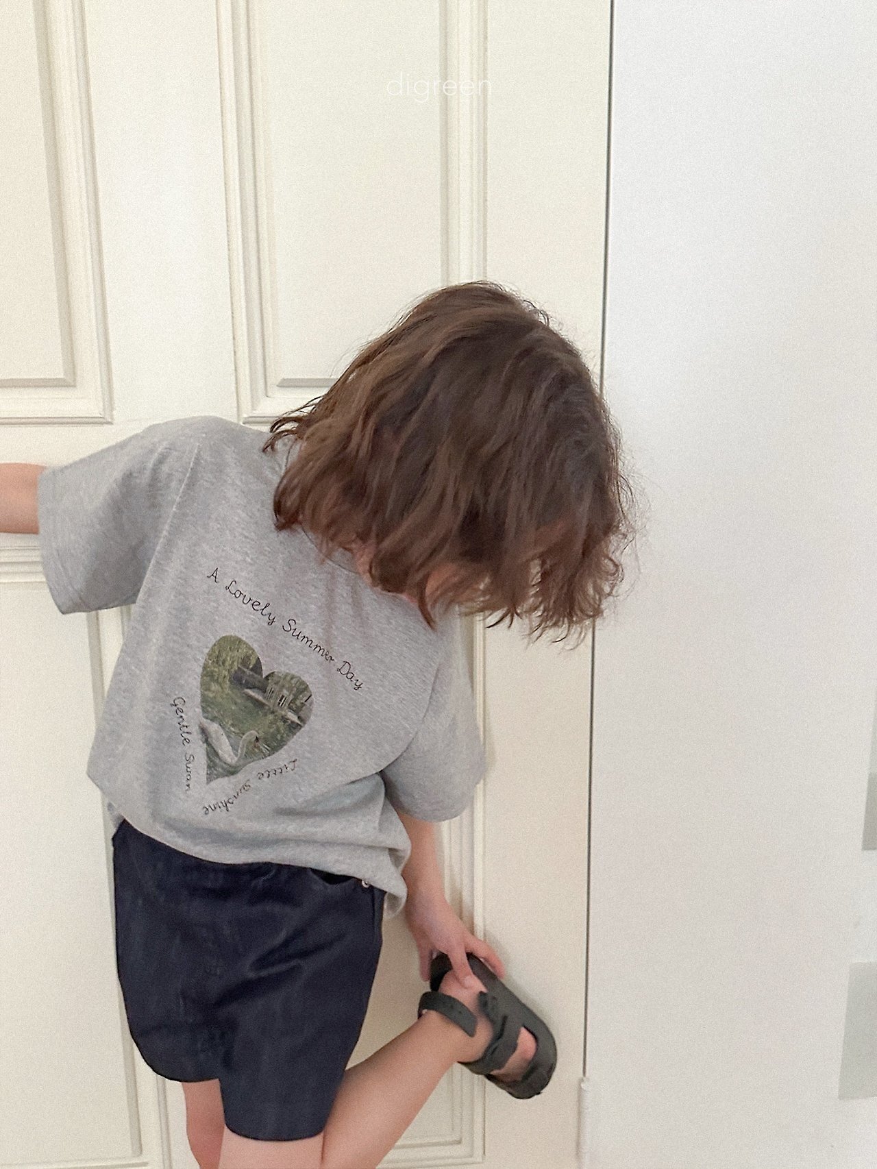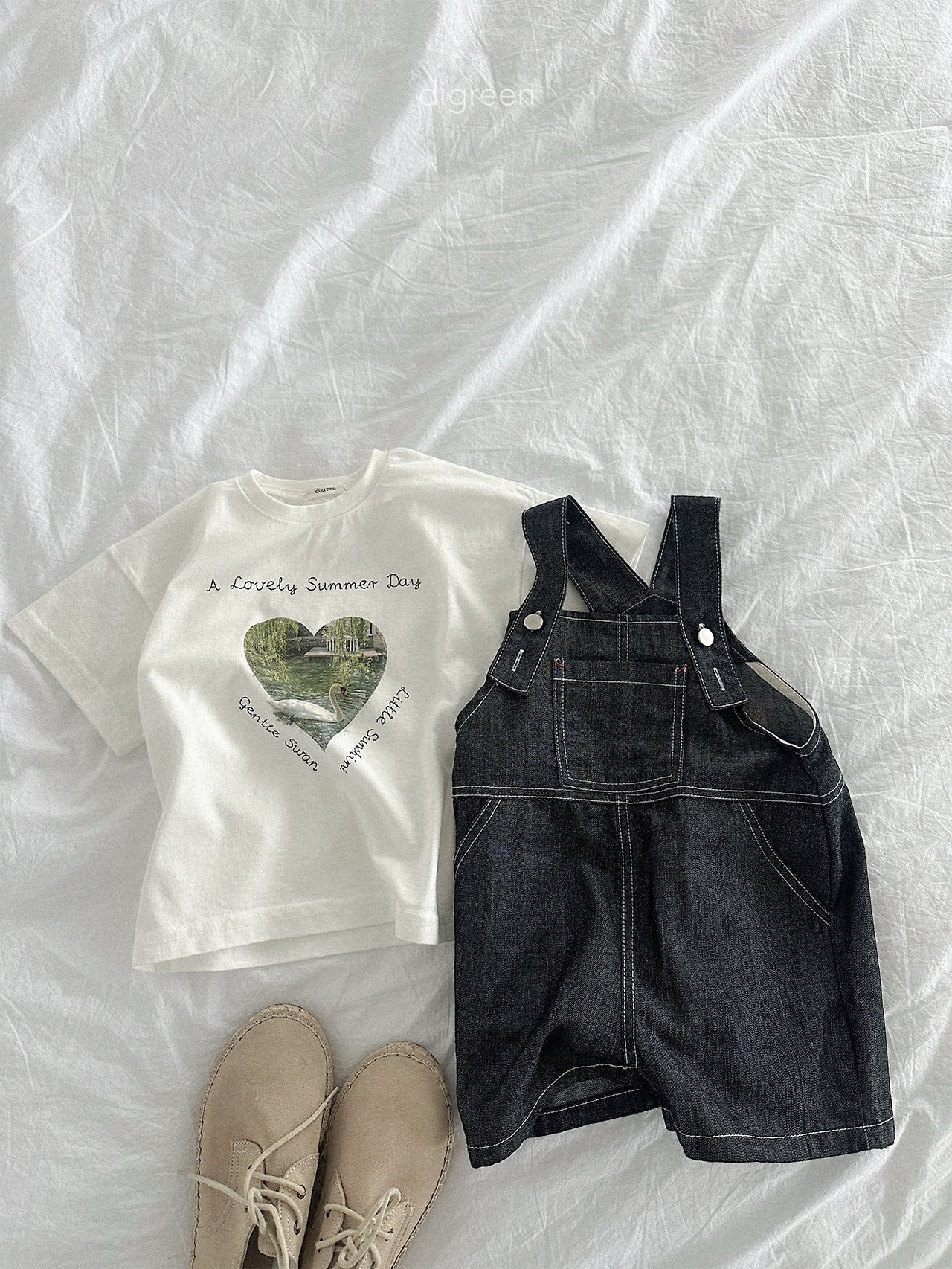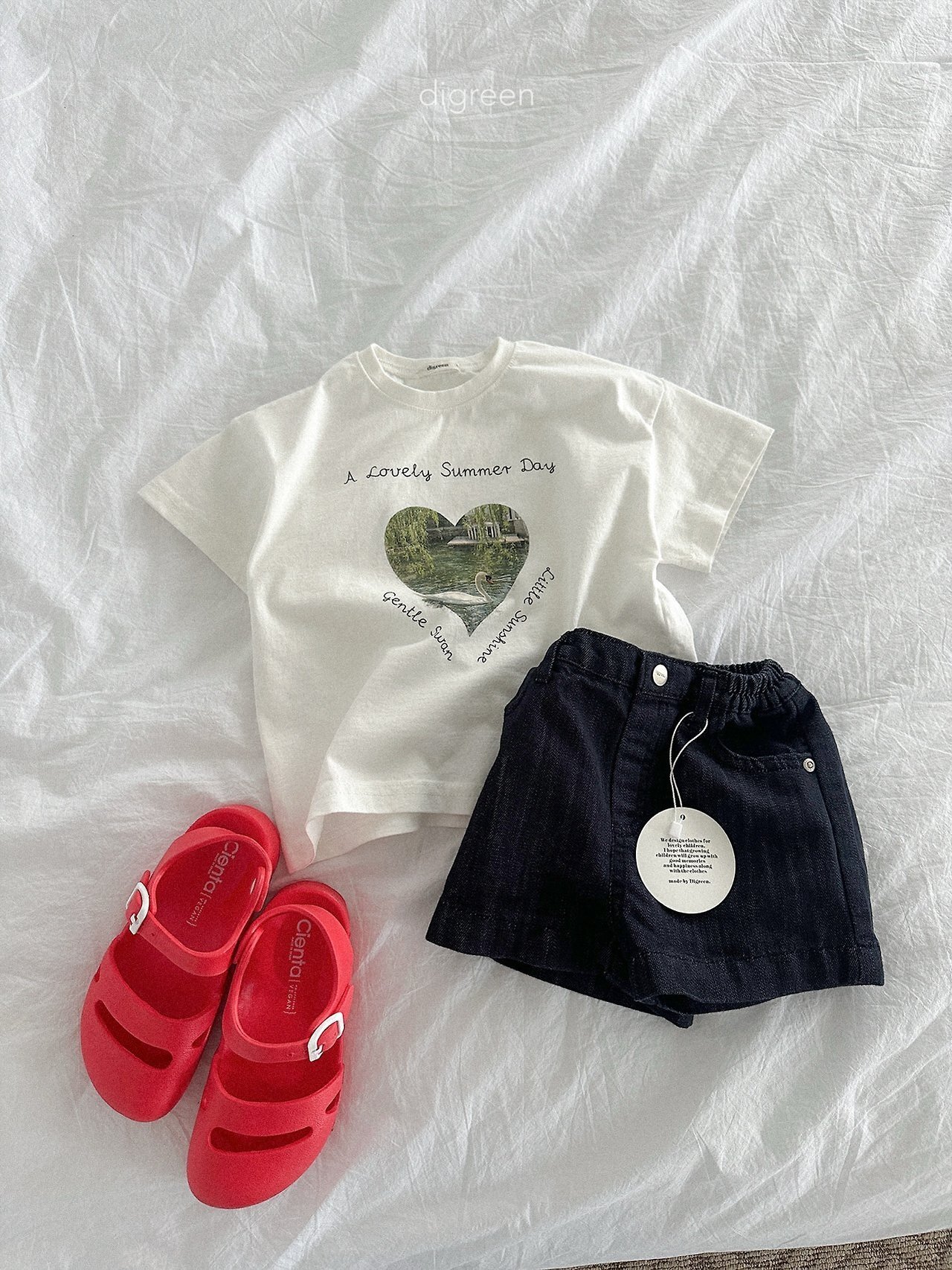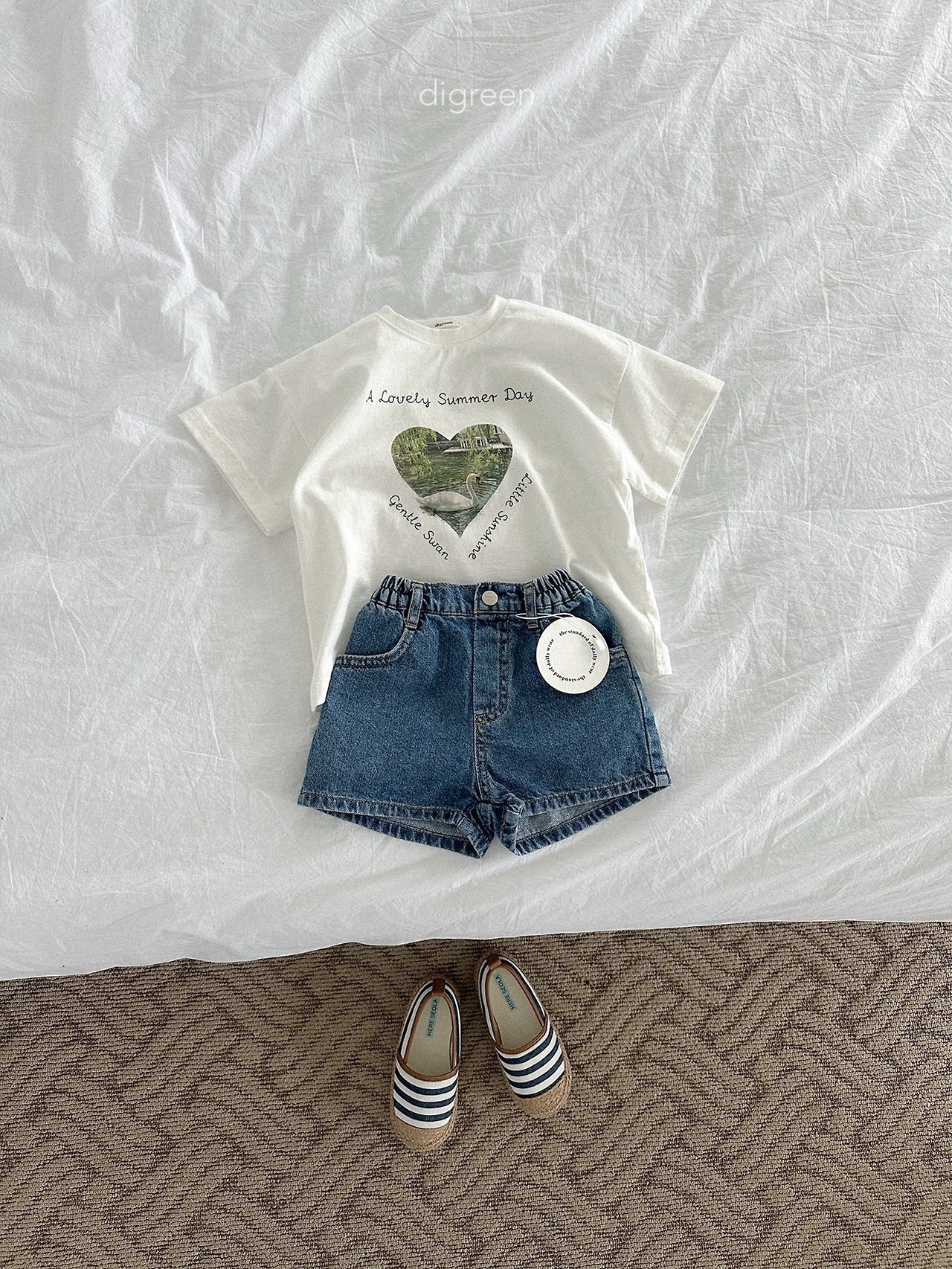 在細緻混色的白色布料上,搭配精緻呈現的天鵝圖案,讓這件T恤不只是基本款,而是多了一份氛圍感的單品