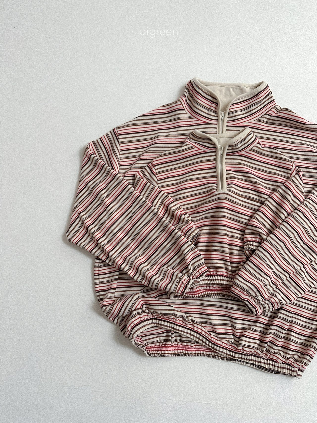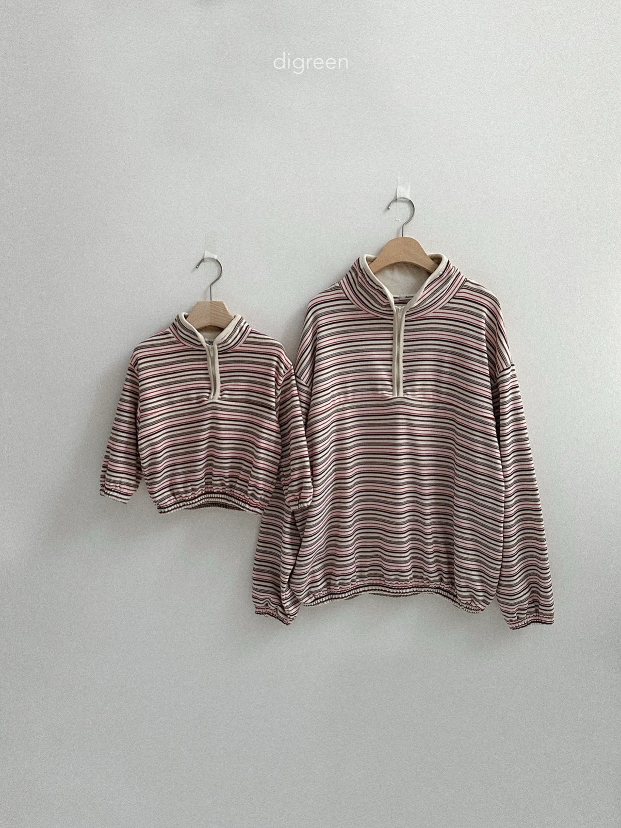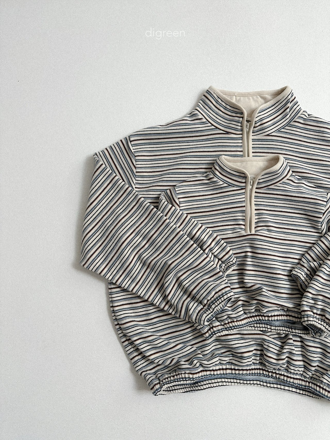 細緻的多色條紋圖案,配色對比不過於強烈,即使是童裝設計,也營造出如同成人服裝般沉穩內斂的氛圍