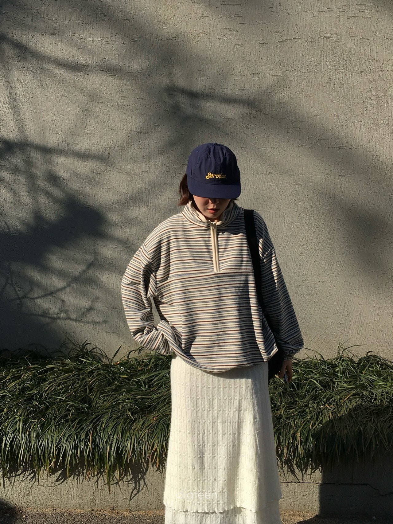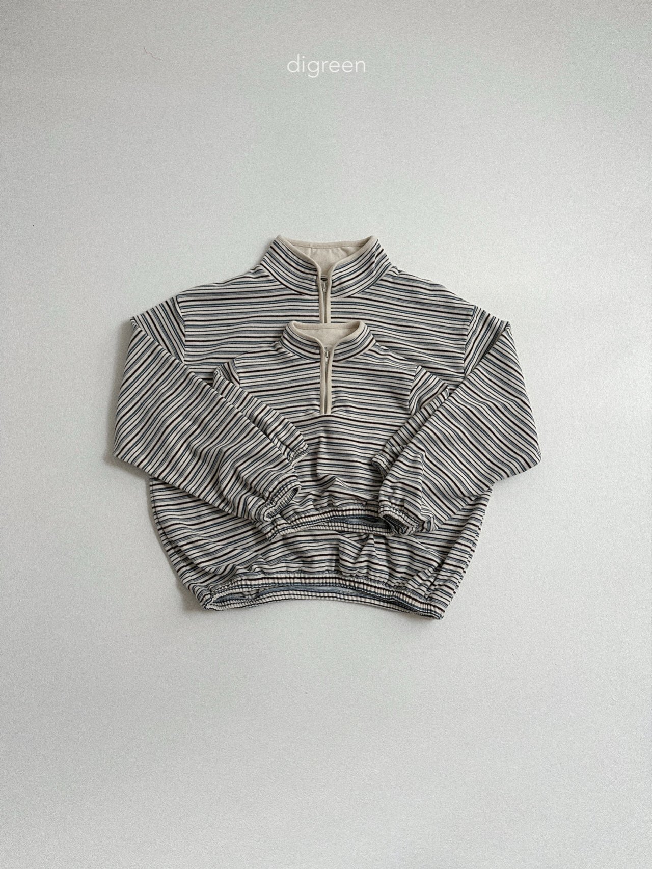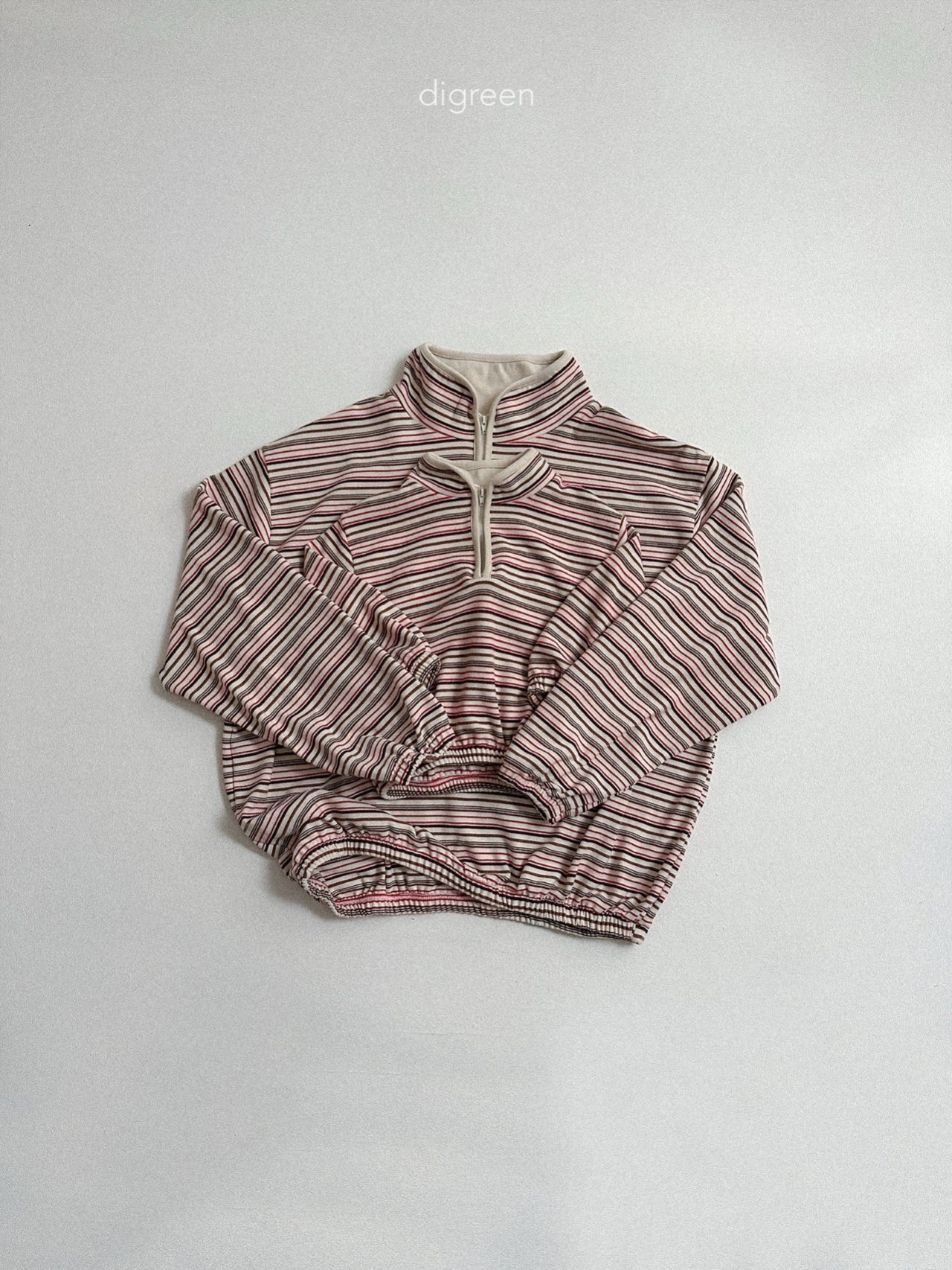 細緻的多色條紋圖案,配色對比不過於強烈,即使是童裝設計,也營造出如同成人服裝般沉穩內斂的氛圍