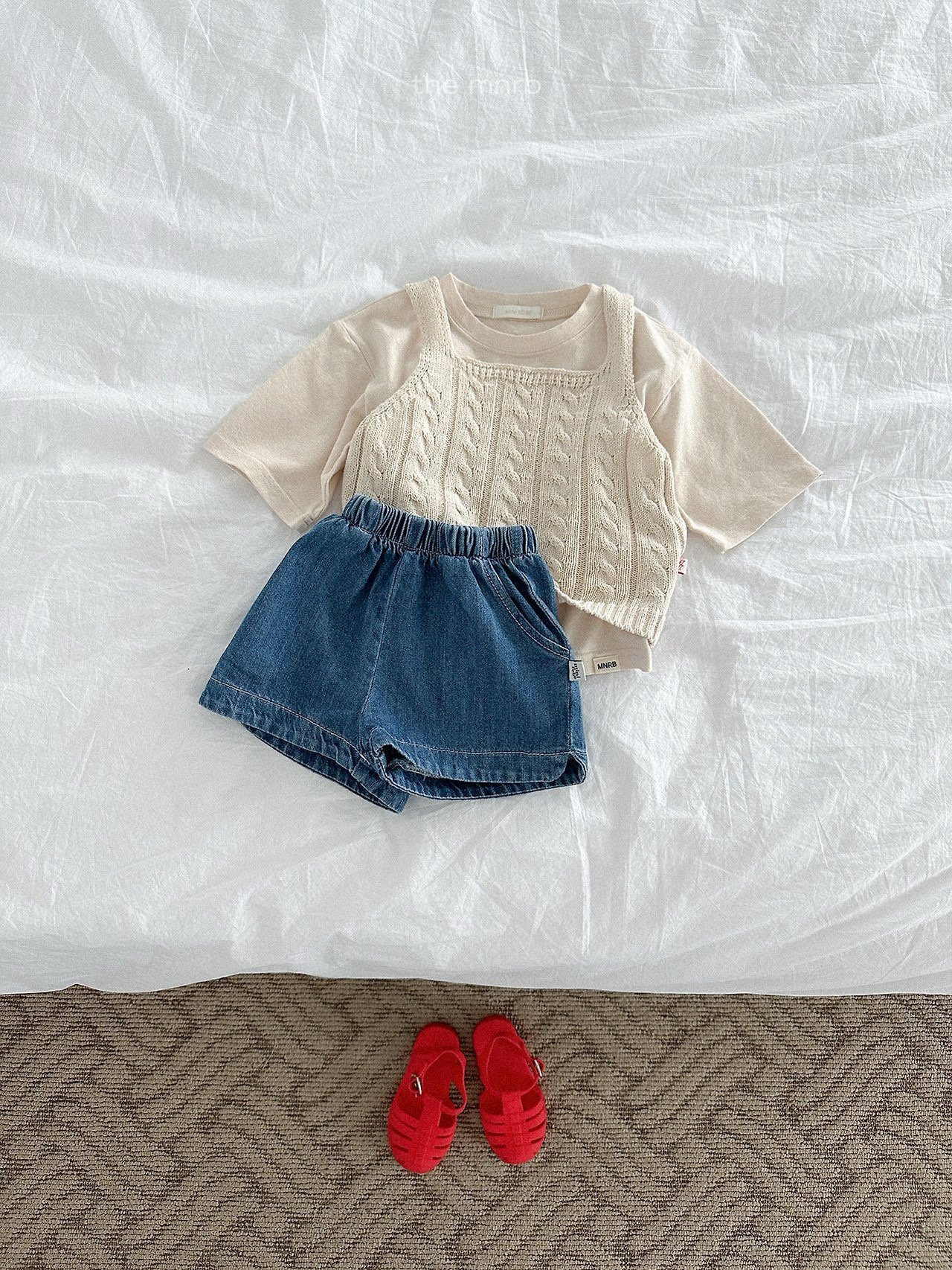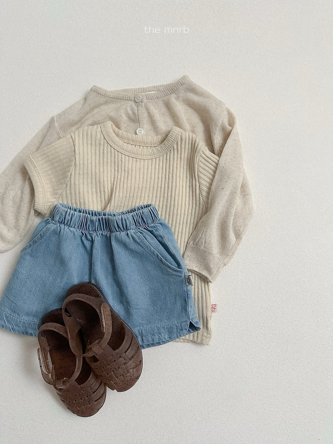 一款以圓潤輪廓為亮點的圓弧邊牛仔短褲