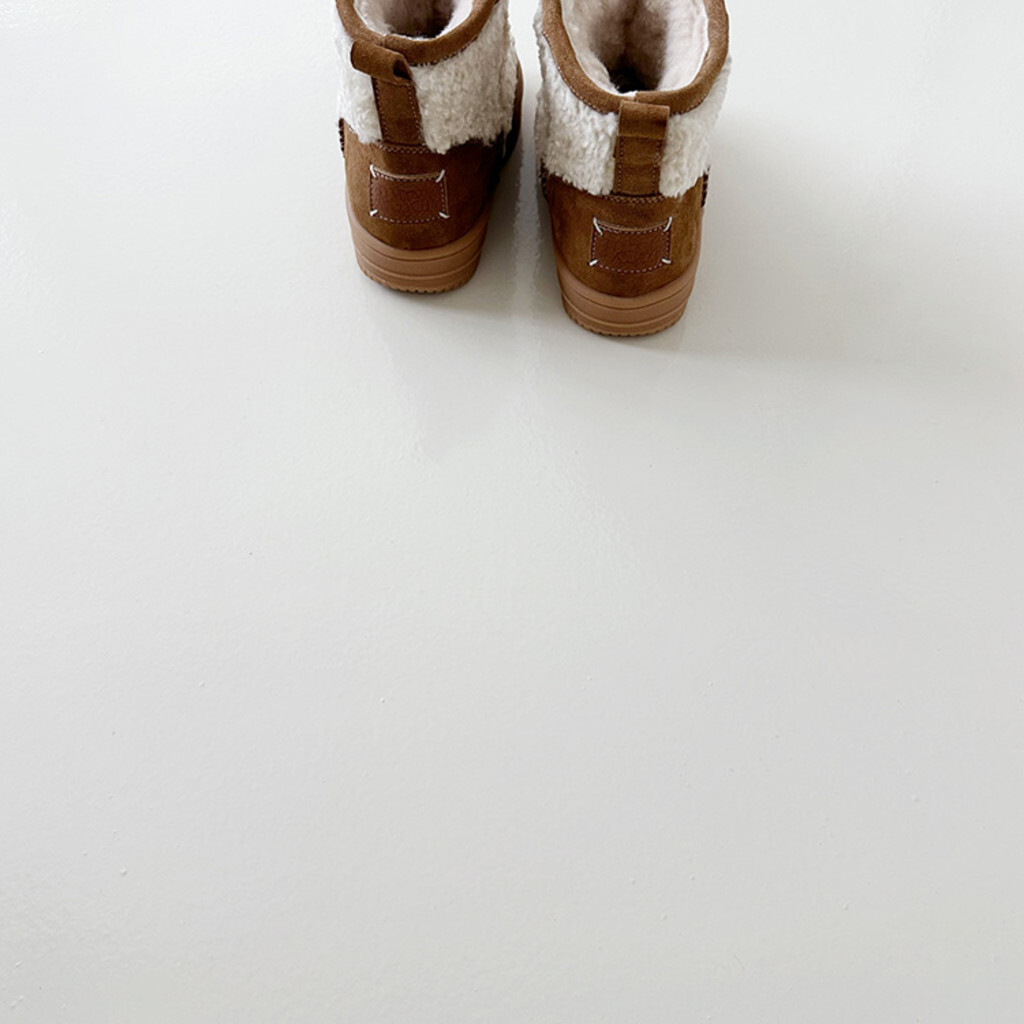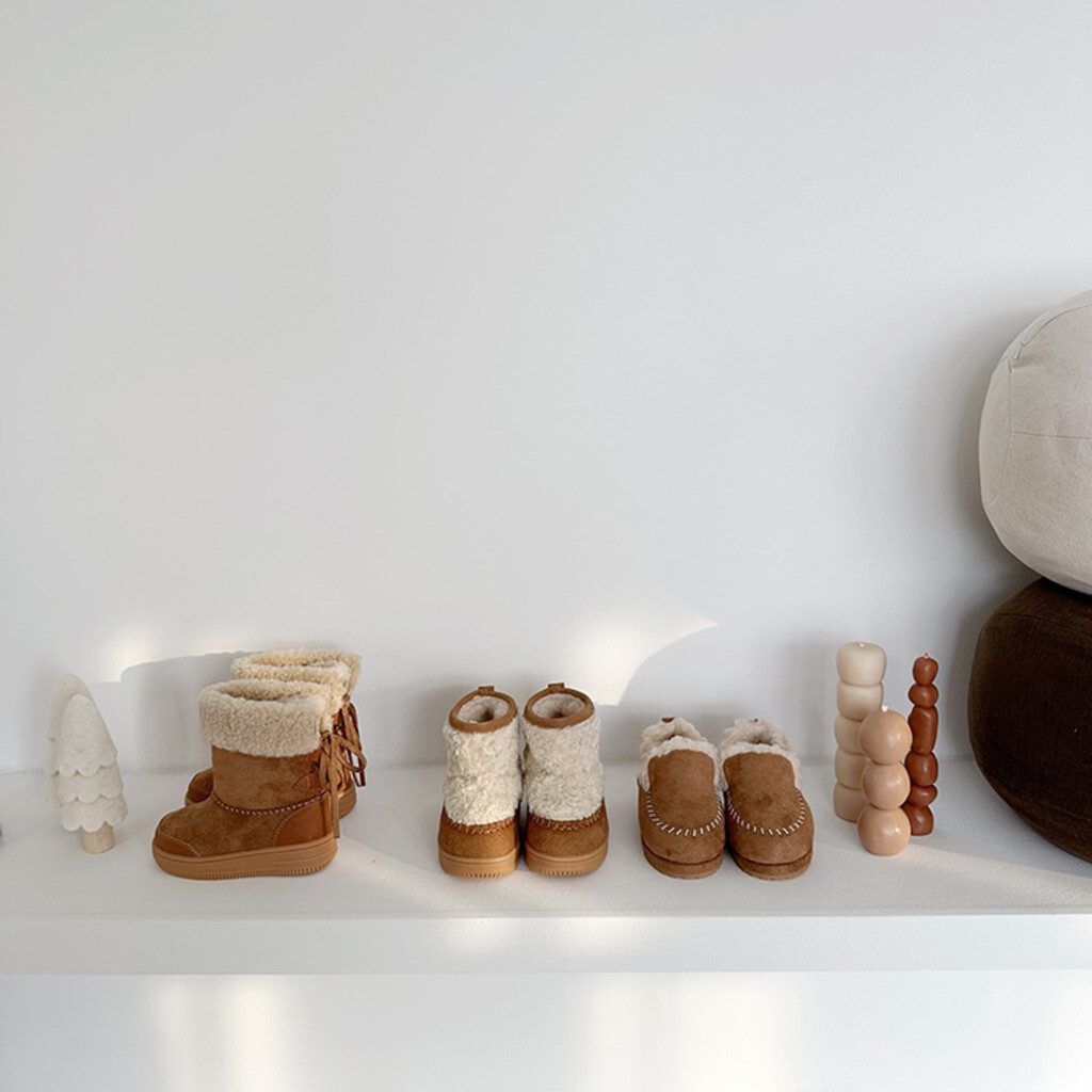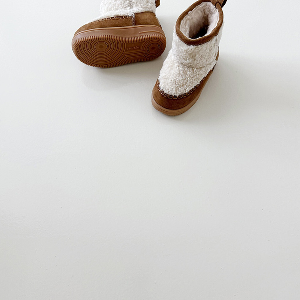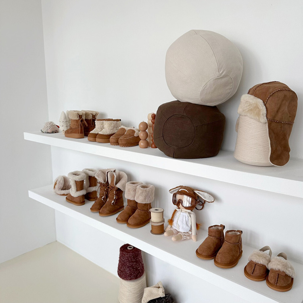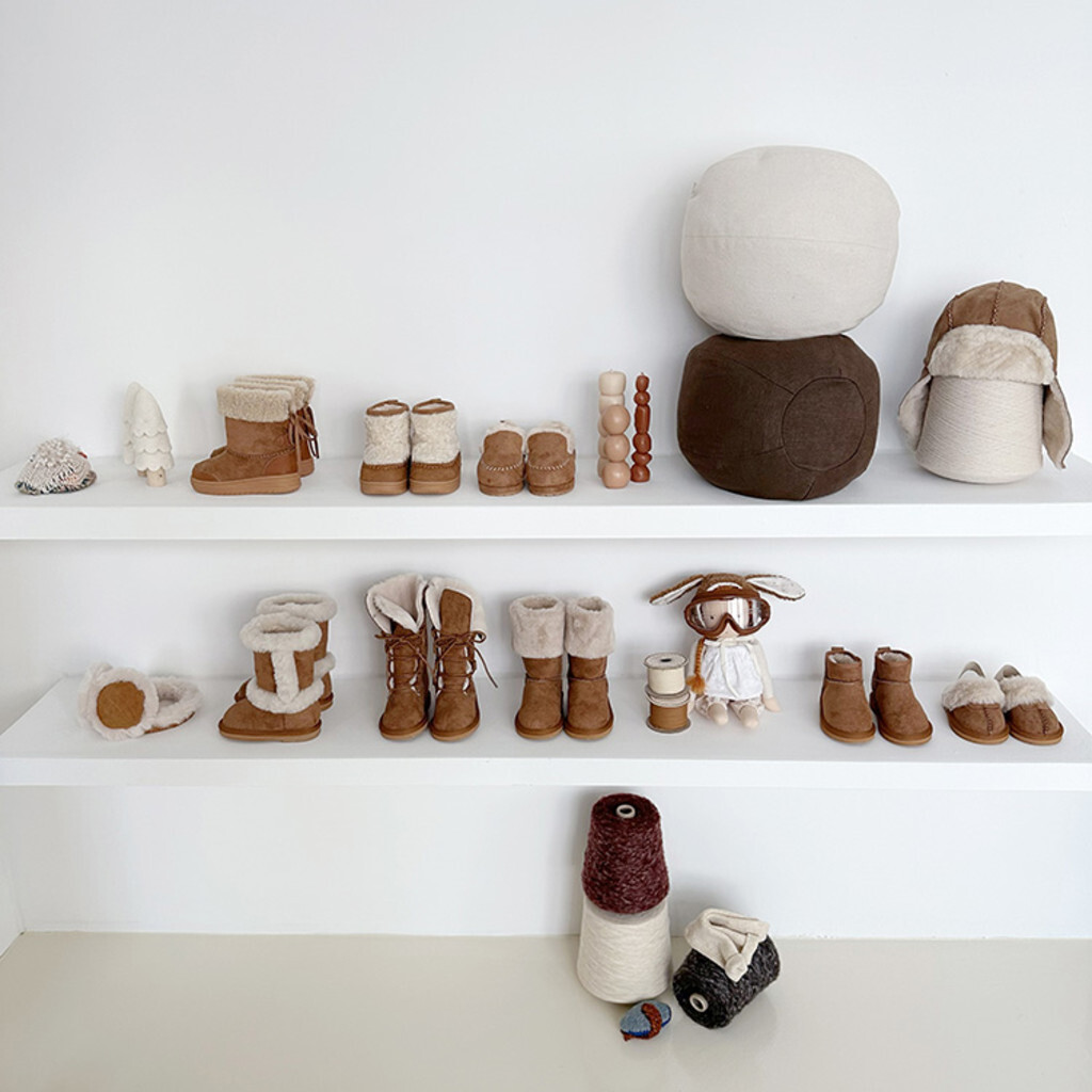 這款靴子以富有韻律感的設計、蓬鬆可愛的羊毛材質和精緻的縫線細節為亮點