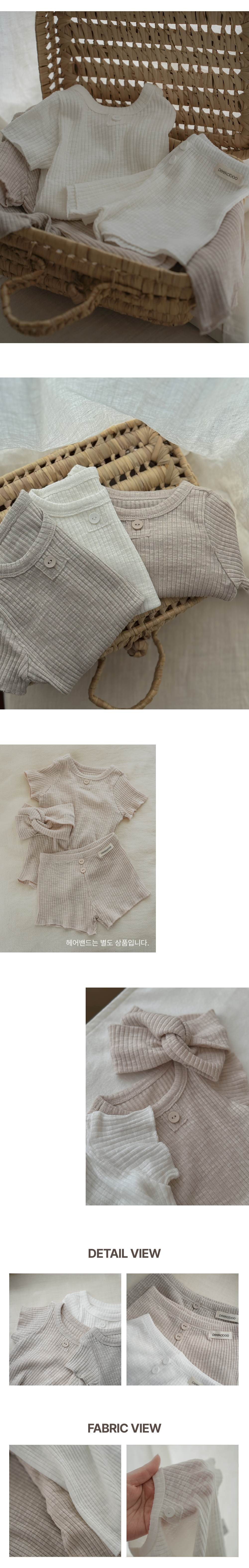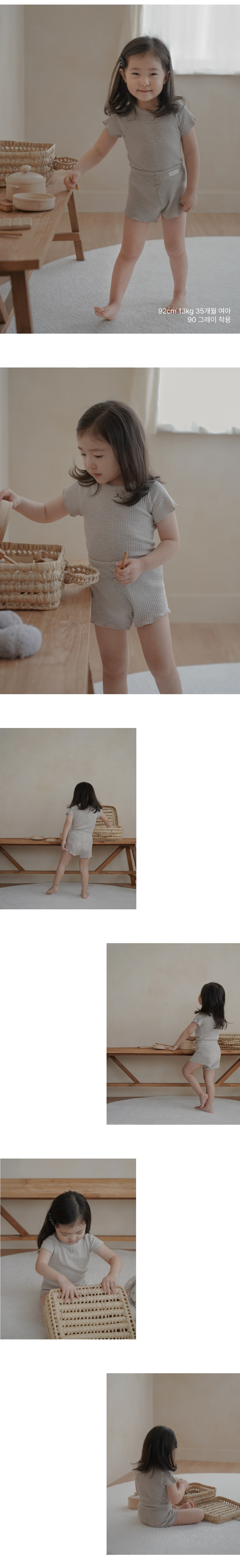 這款夏季套裝採用羅紋棉、莫代爾和氨綸混紡面料,並巧妙地加入粗紡紋理,打造出迷人的自然質感