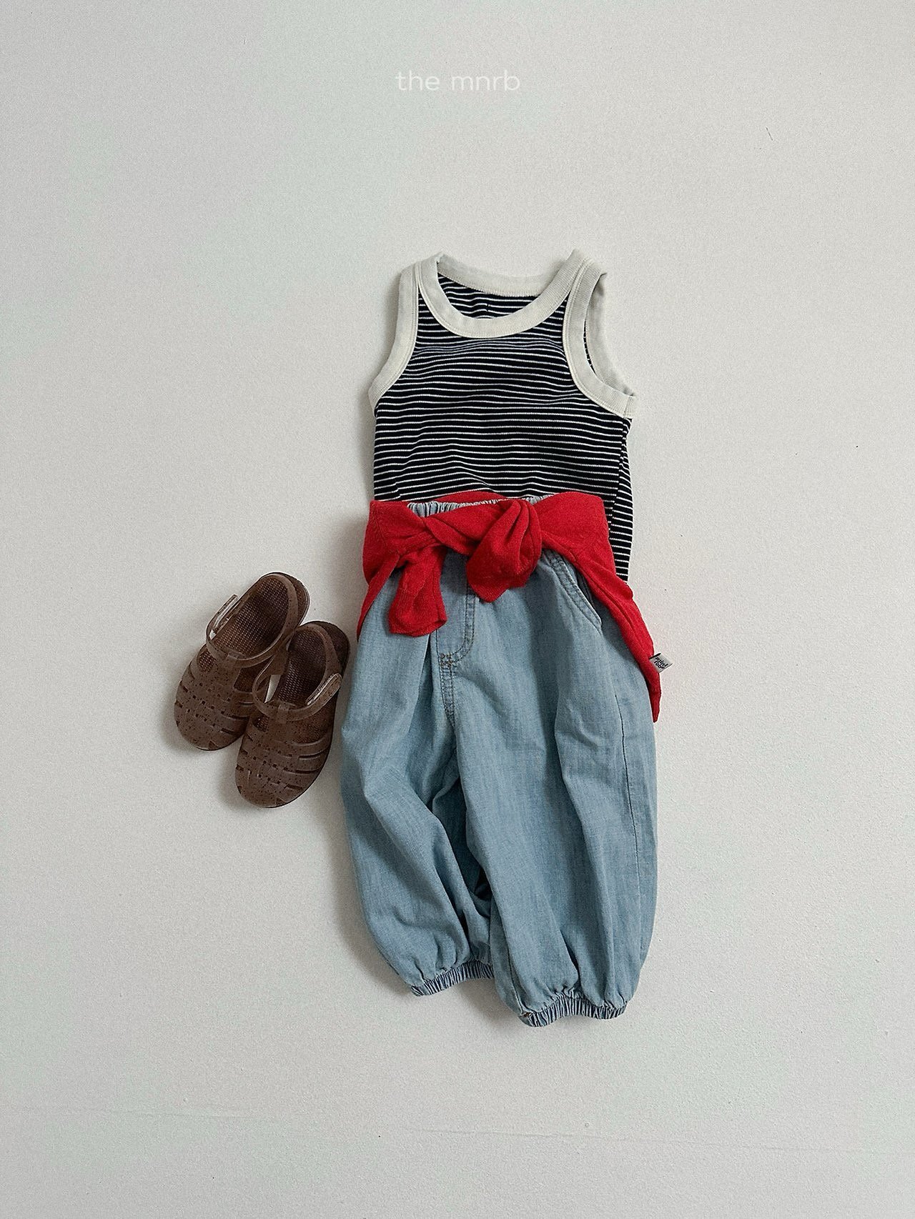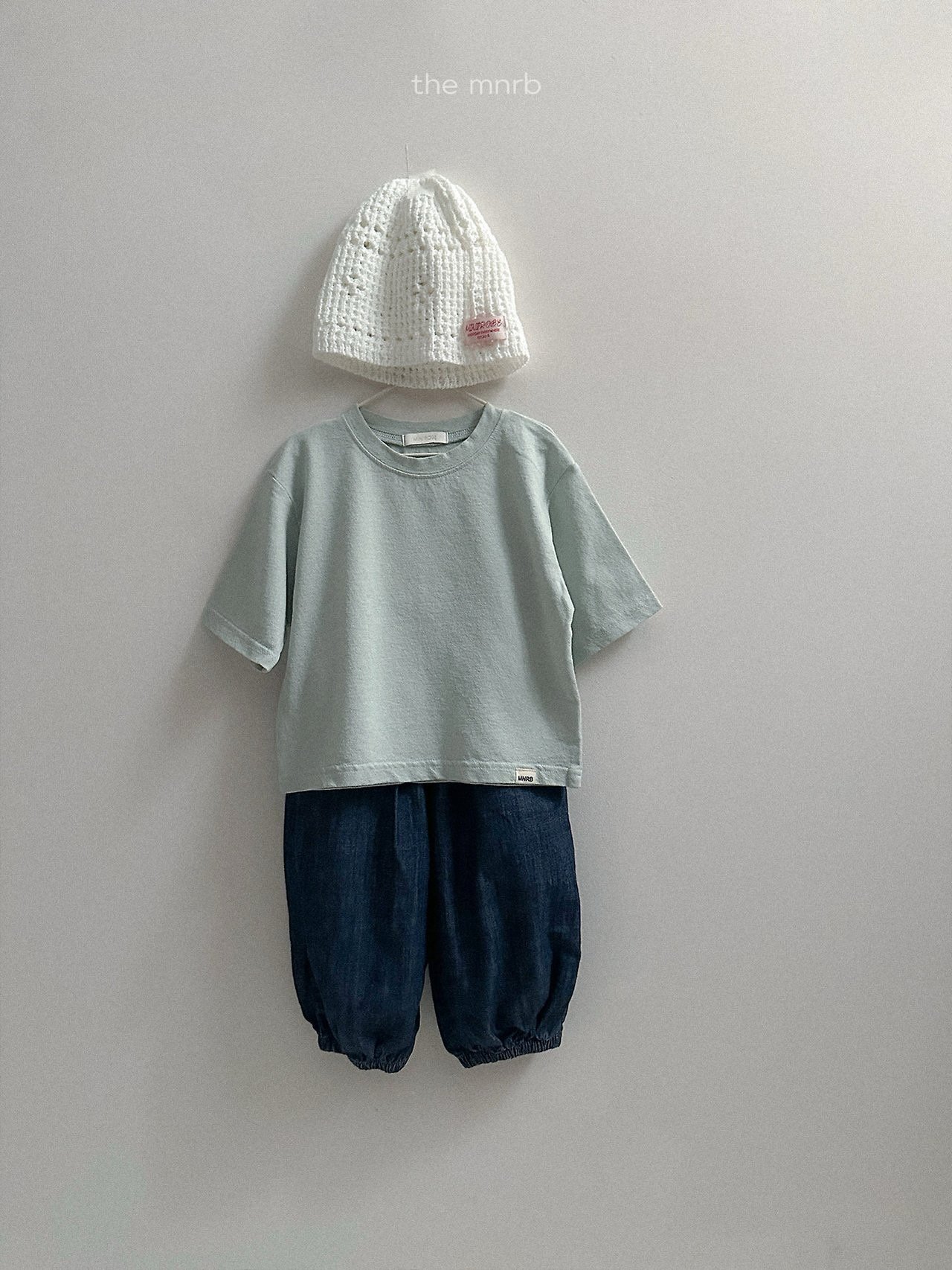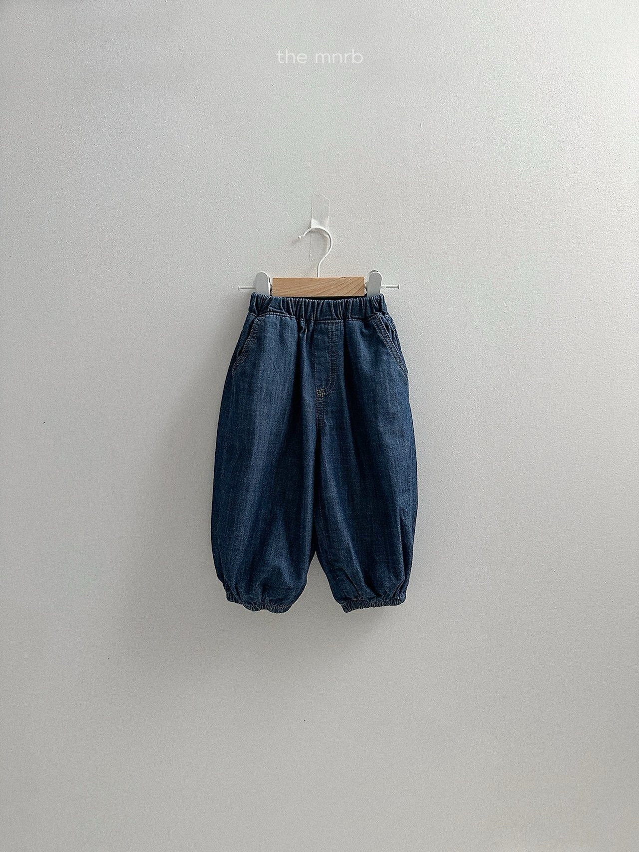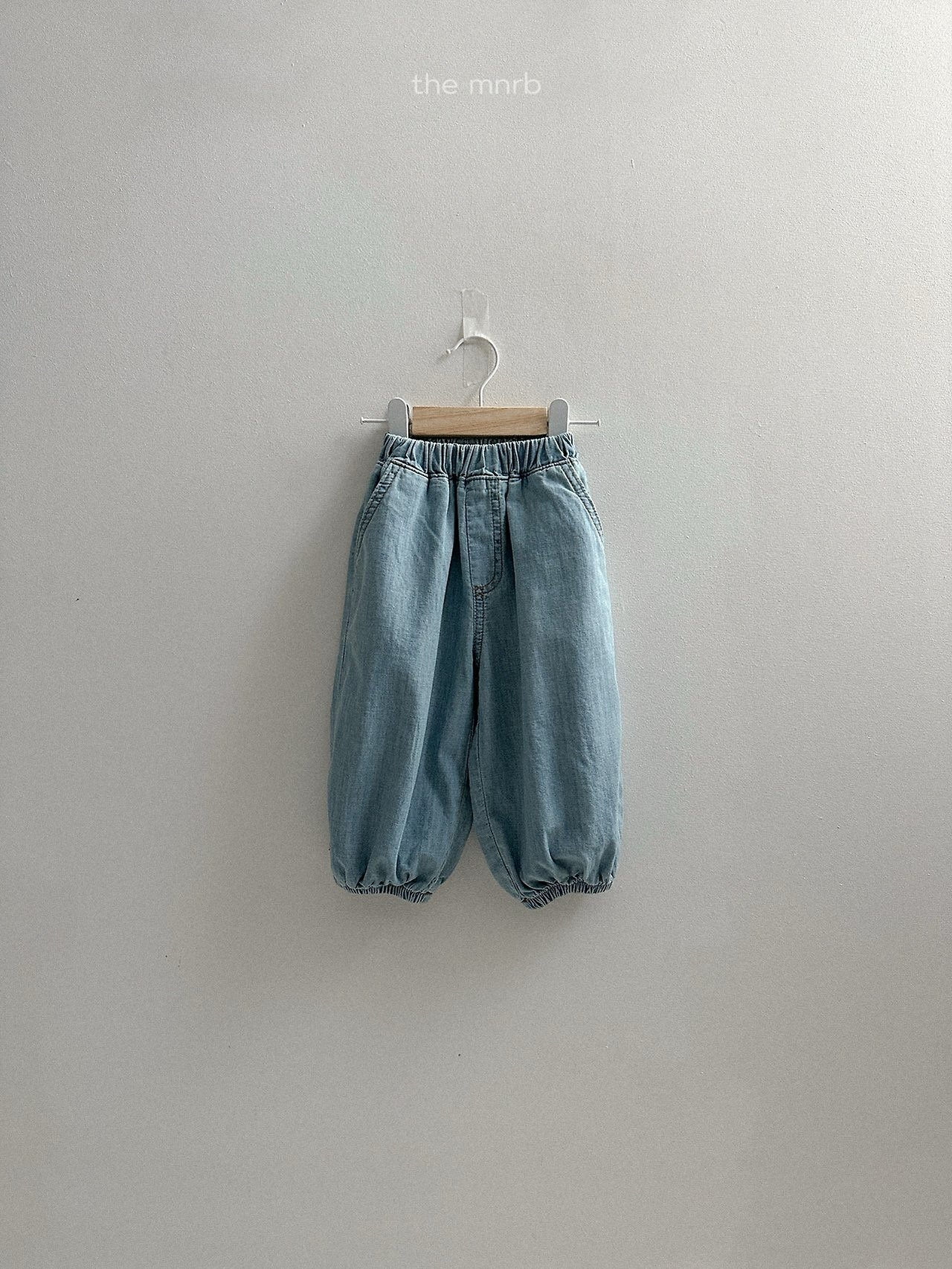 版型寬鬆,褲腳以鬆緊收口設計自然聚攏,呈現圓潤可愛的輪廓