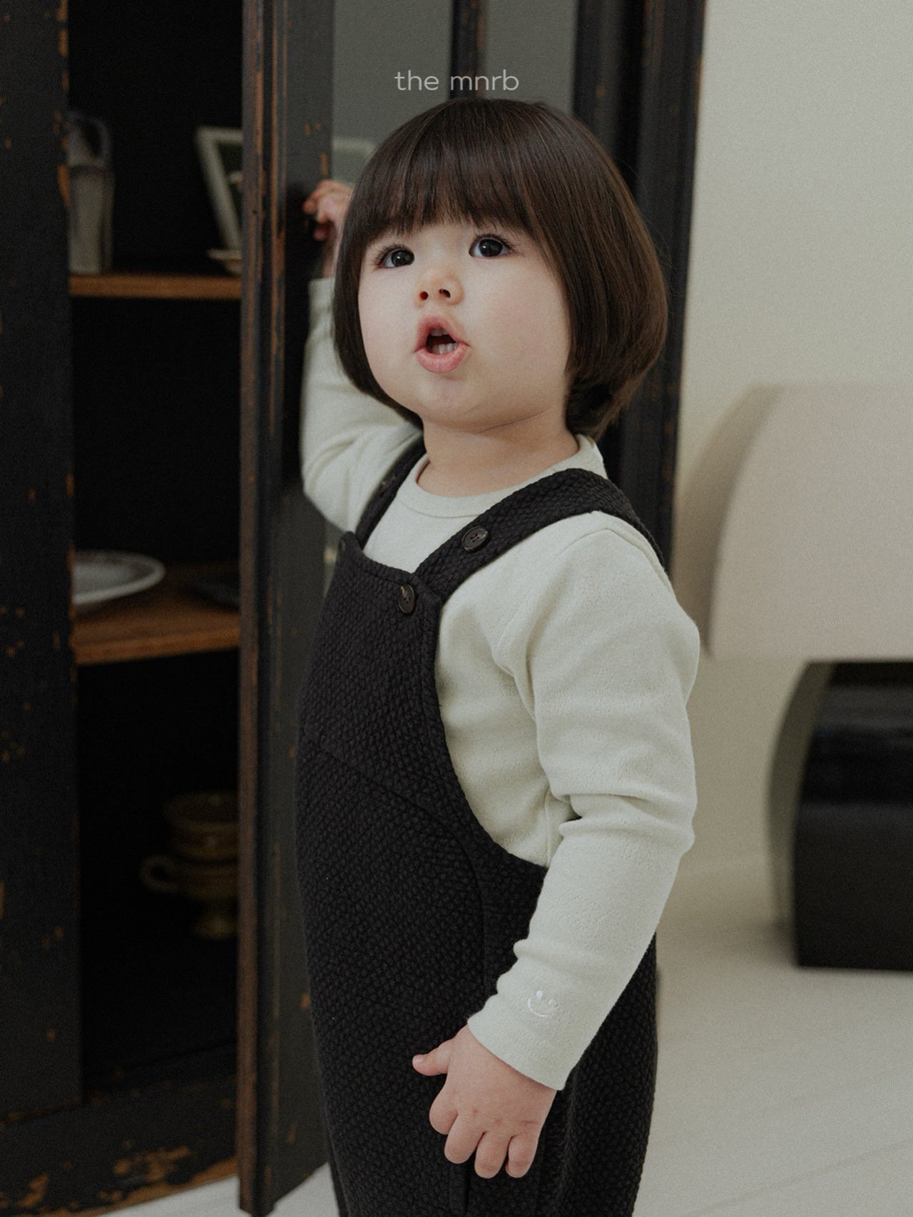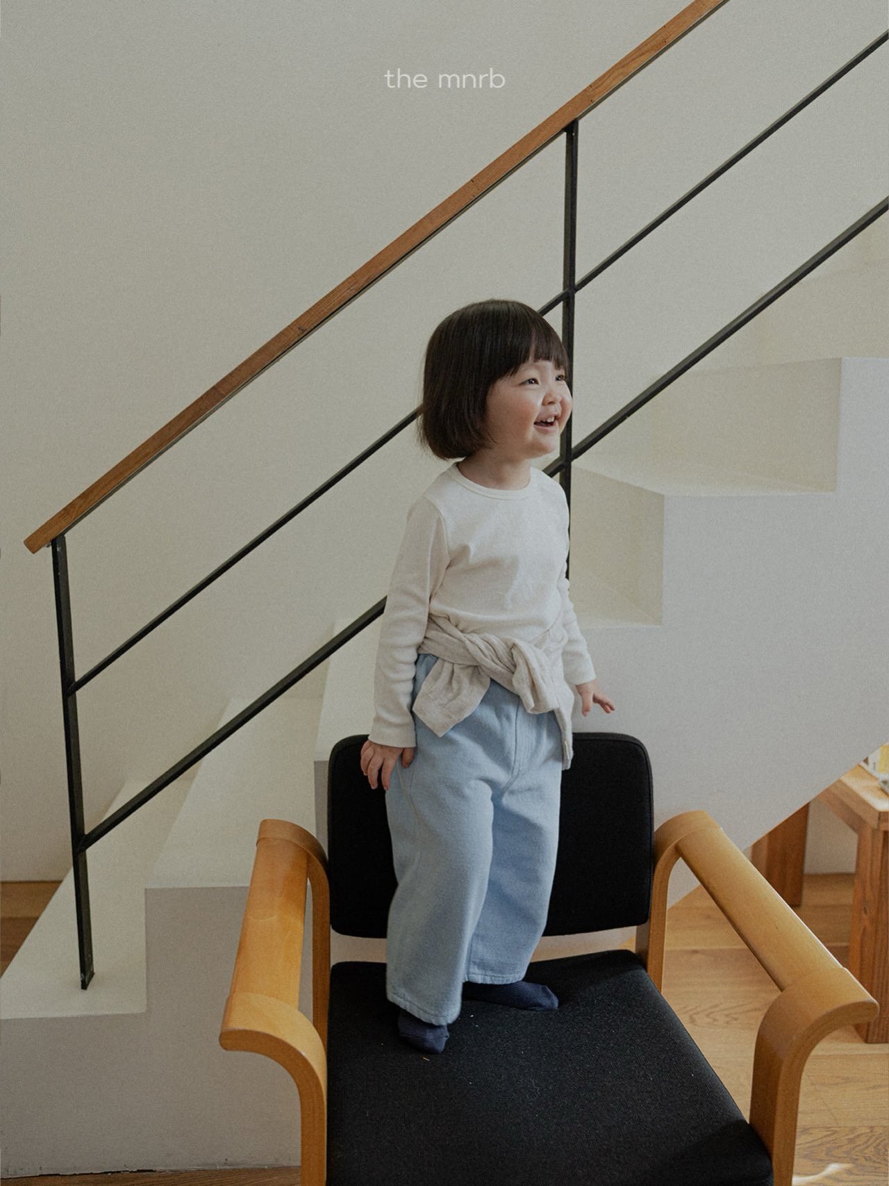左側袖子加上小巧的微笑刺繡,為孩子的穿搭增添一點可愛的小細節