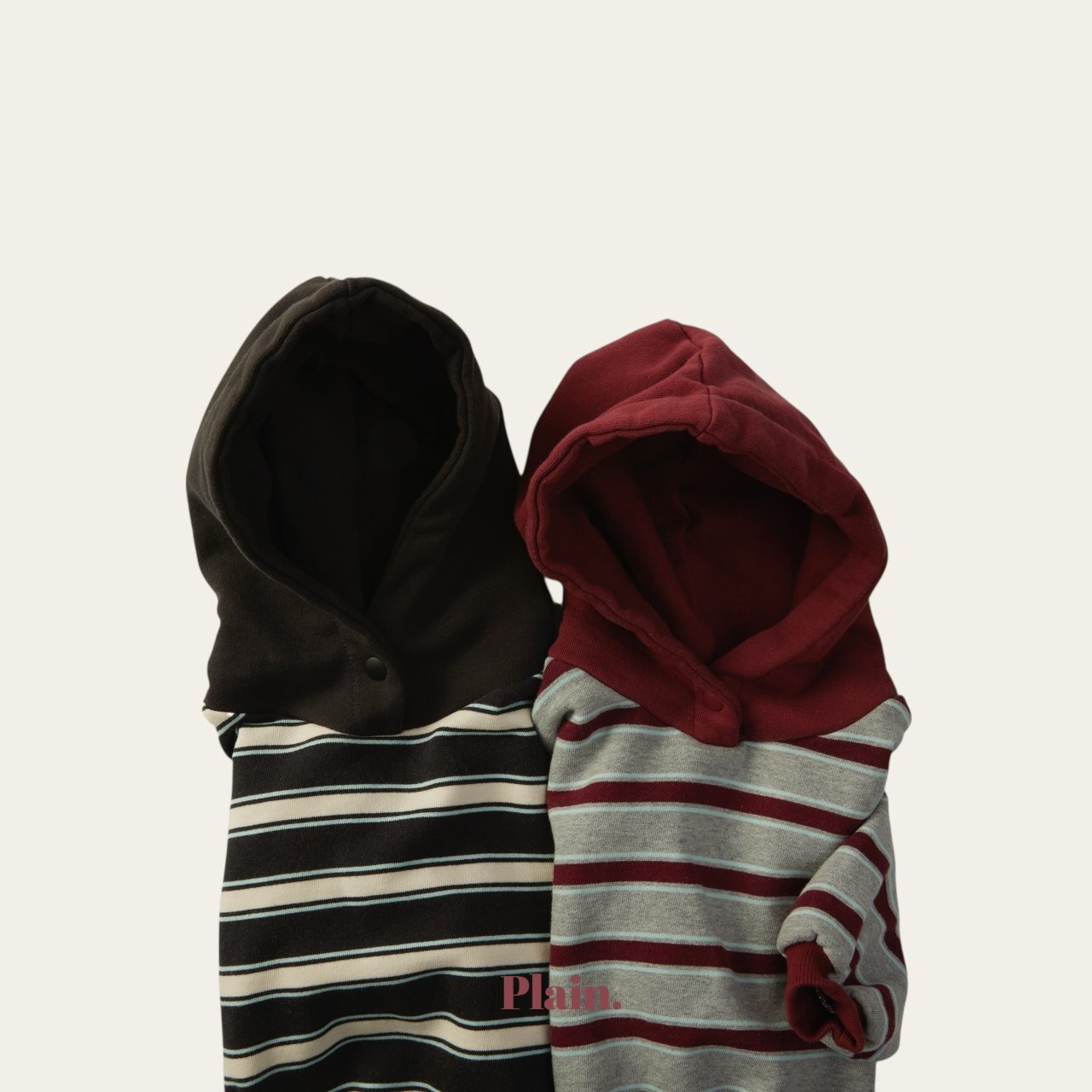 因為發現了一款非常漂亮的條紋布料,一看到就覺得「這款一定要做!」於是誕生了這件連帽T恤