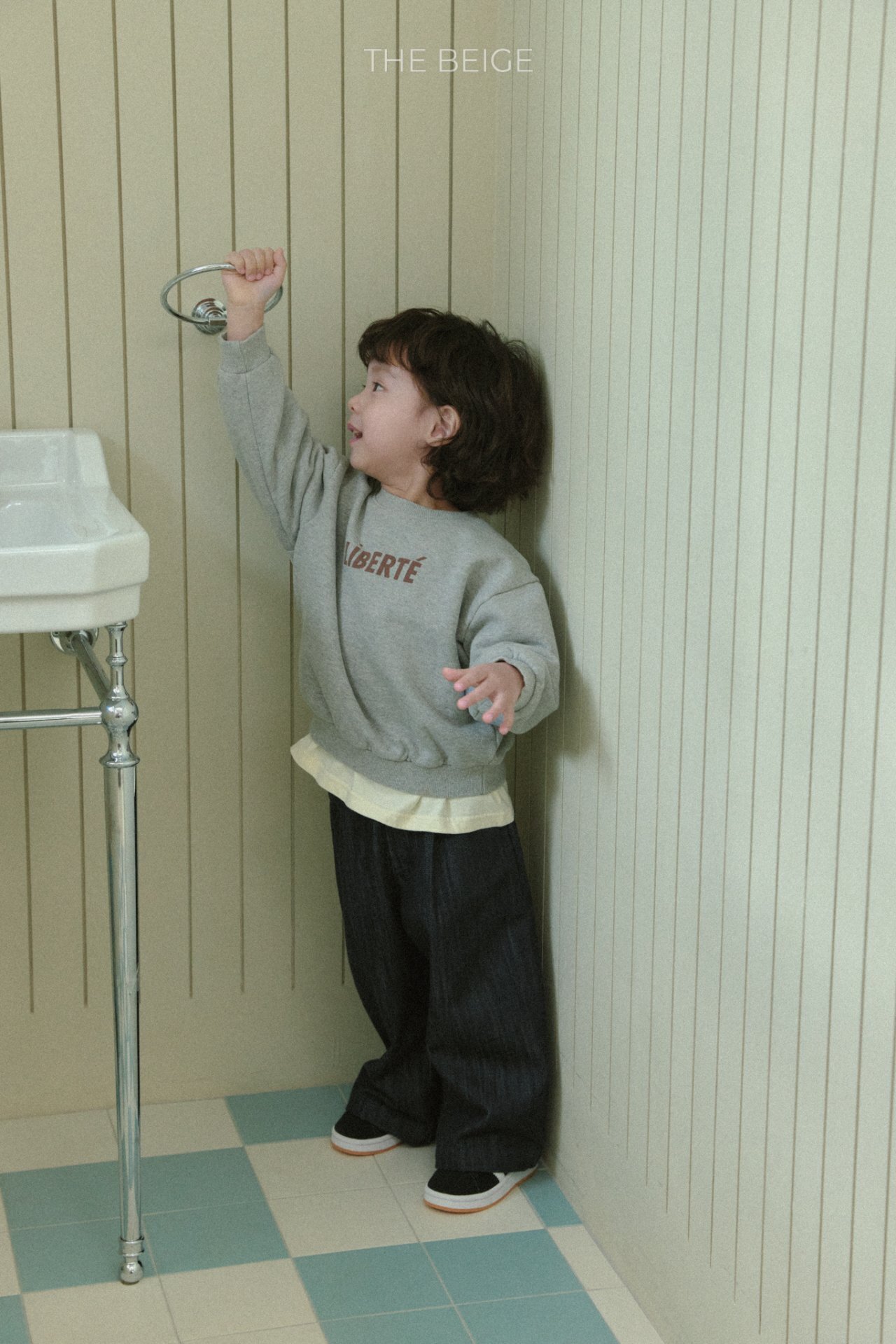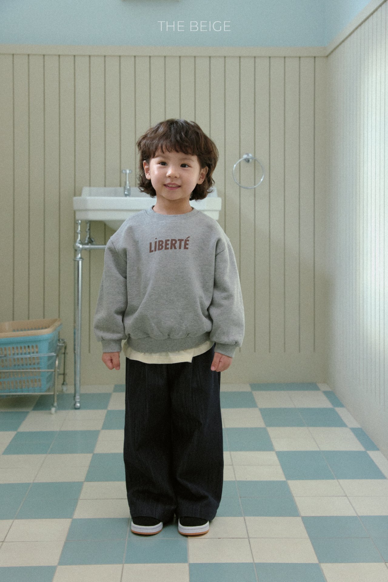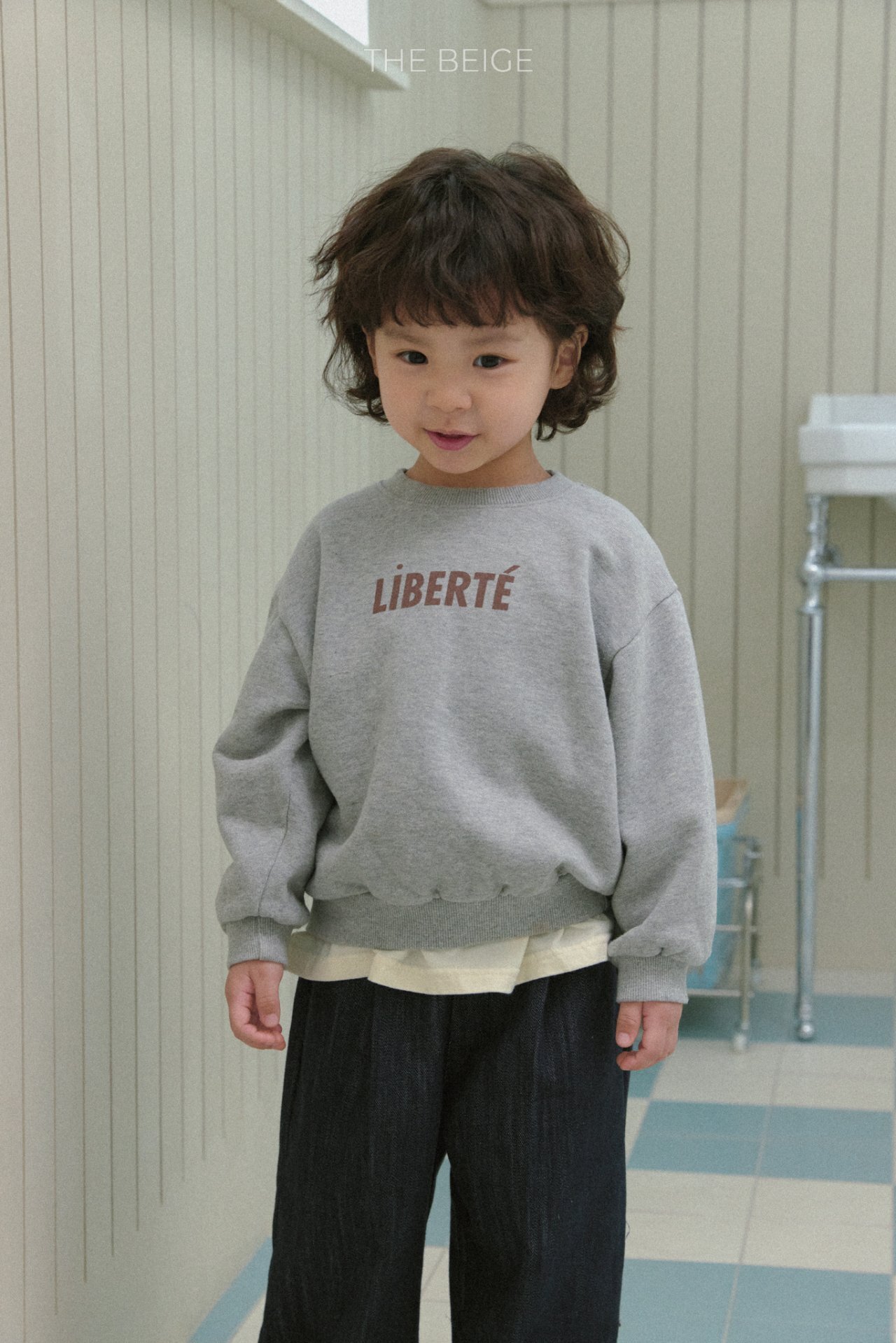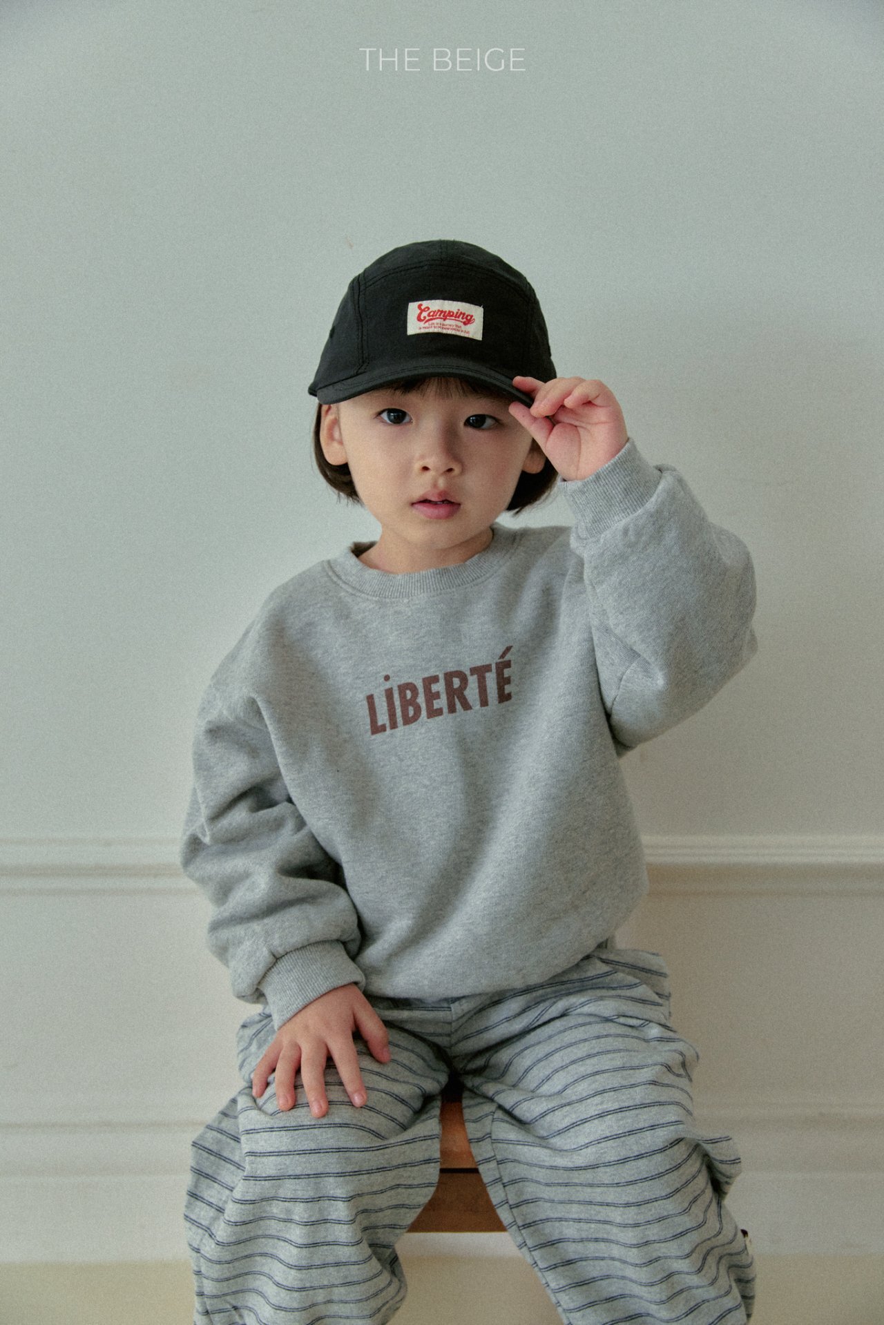 簡約而不繁複的文字大學T為這款基本單品,增添了一抹特色