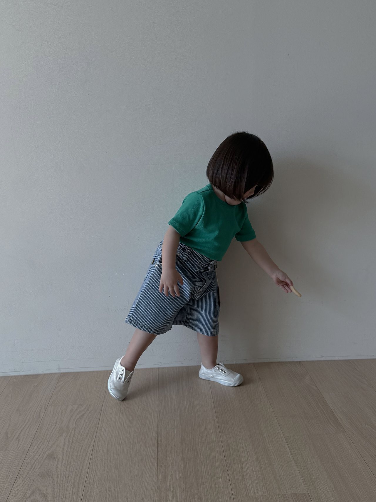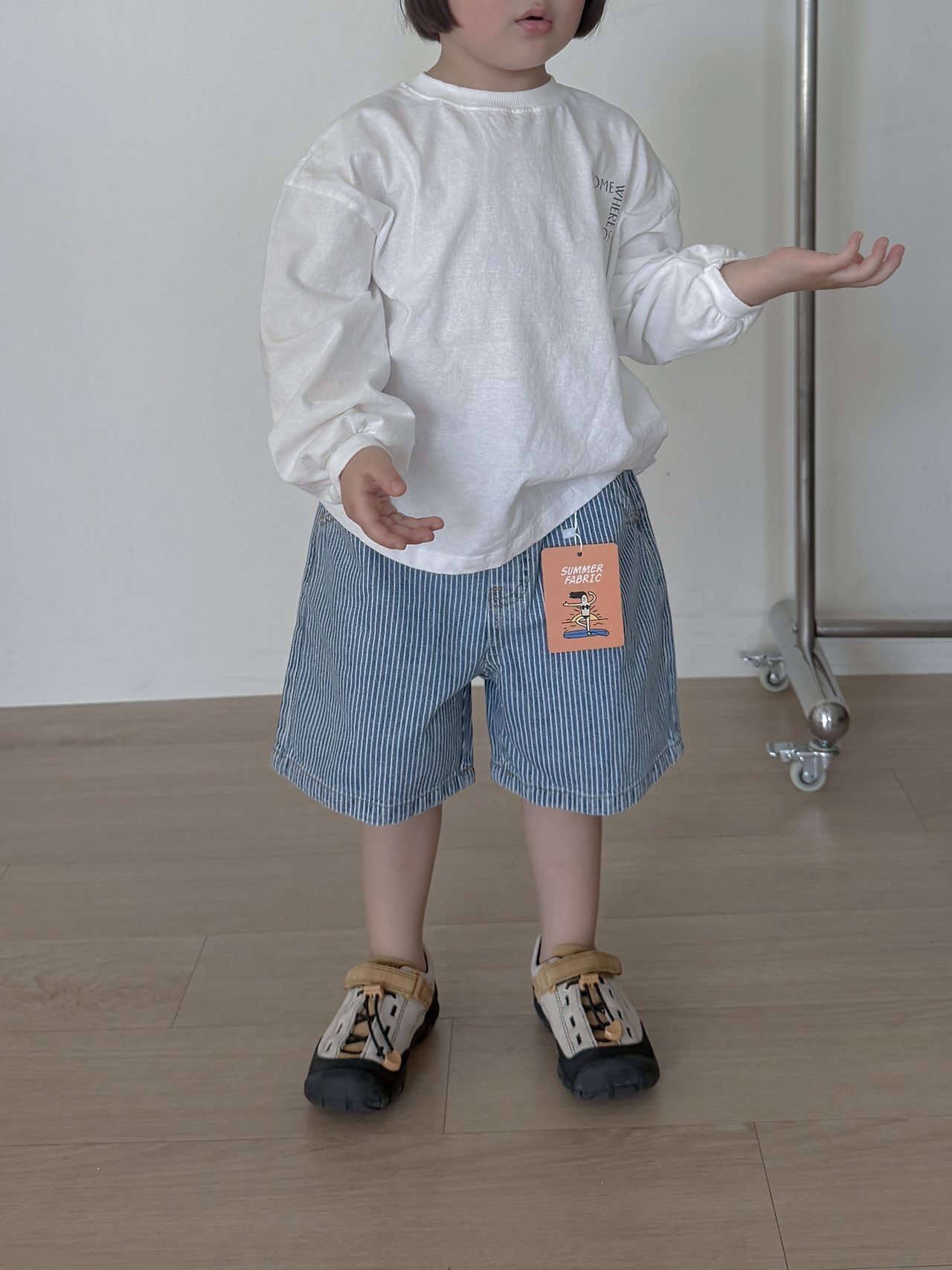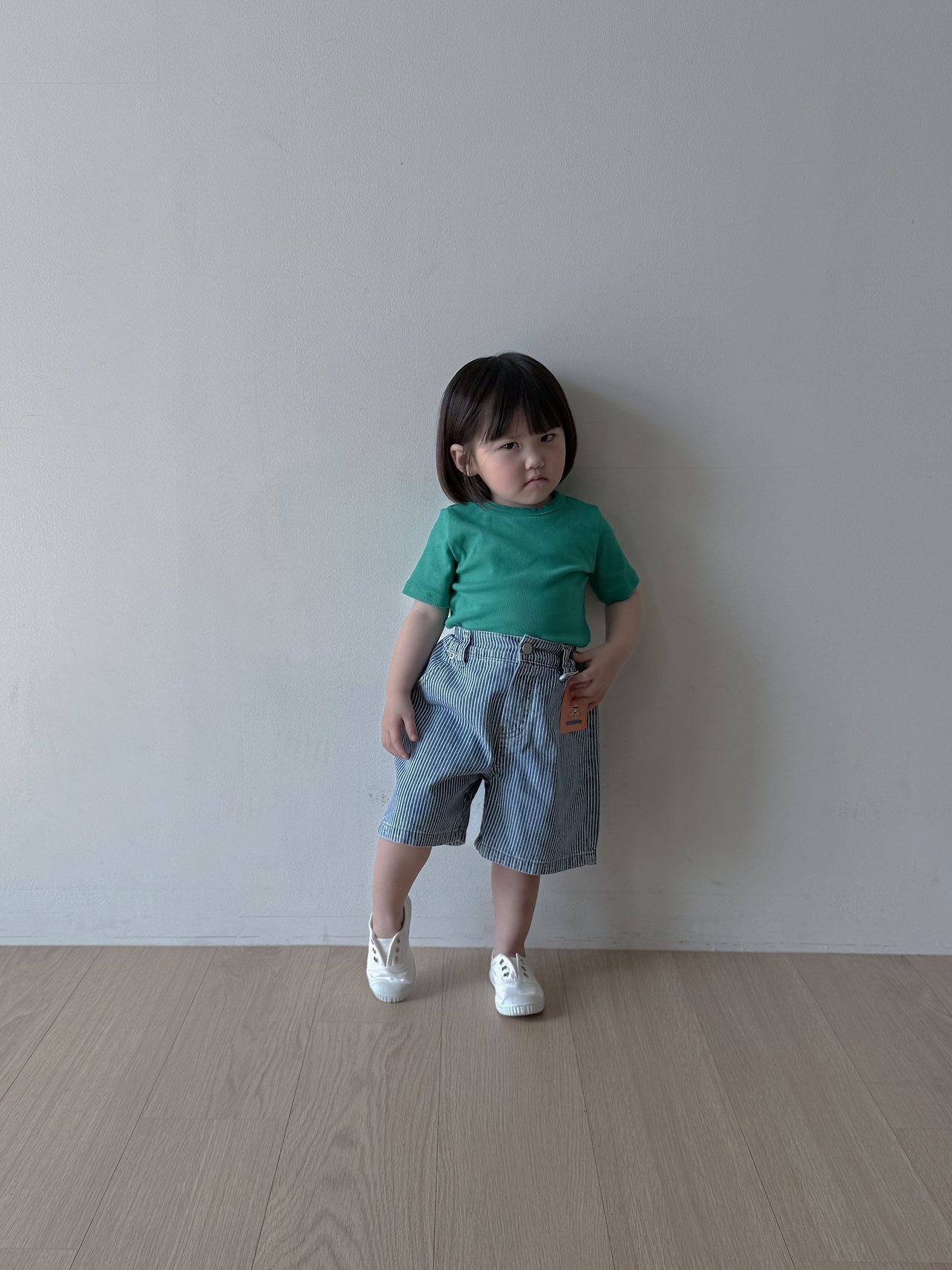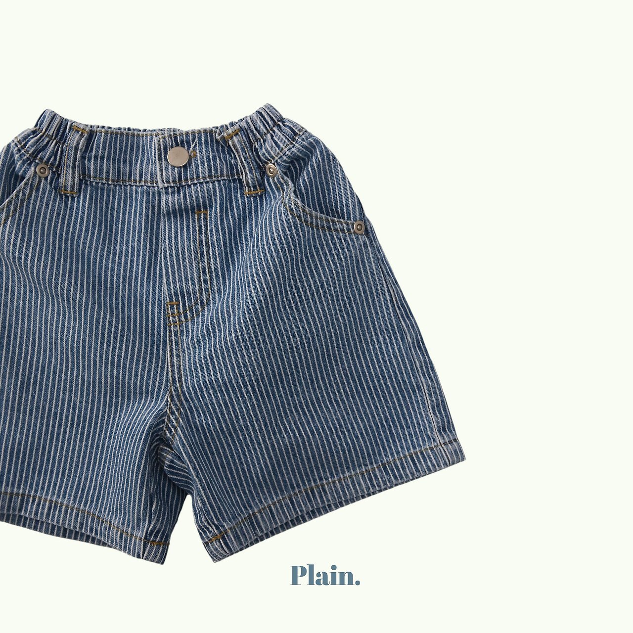 以扎實牛仔布料製作,搭配條紋圖案設計的牛仔短褲