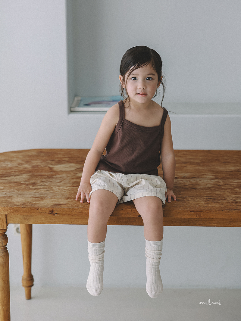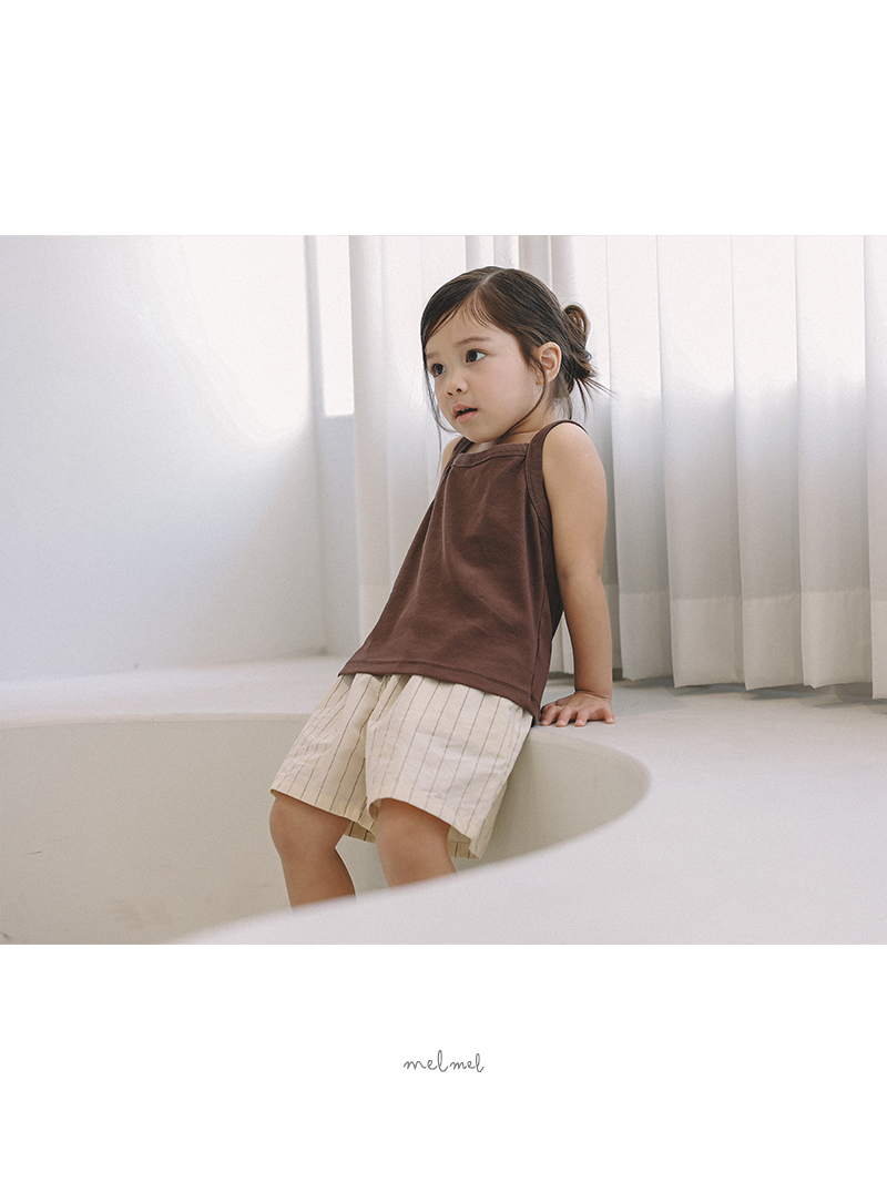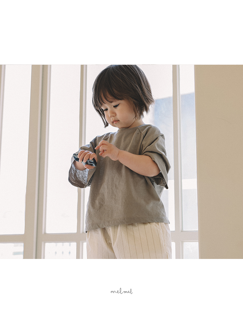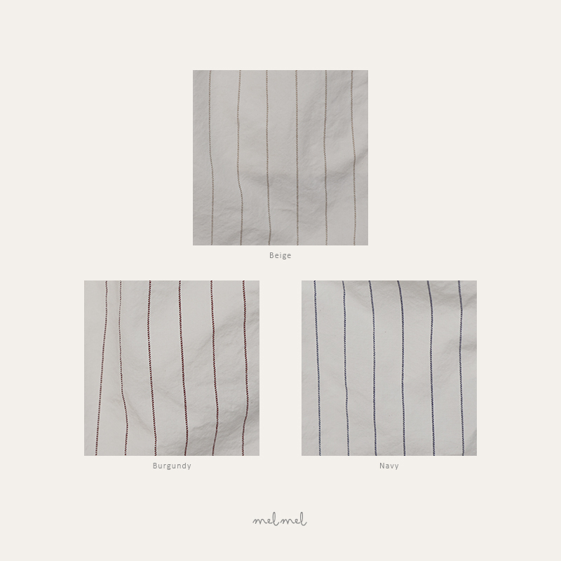 細緻的直條紋設計,搭配寬鬆自然的版型,不張揚卻帶有質感,呈現 melmel 一貫的簡約自然風格